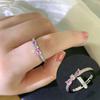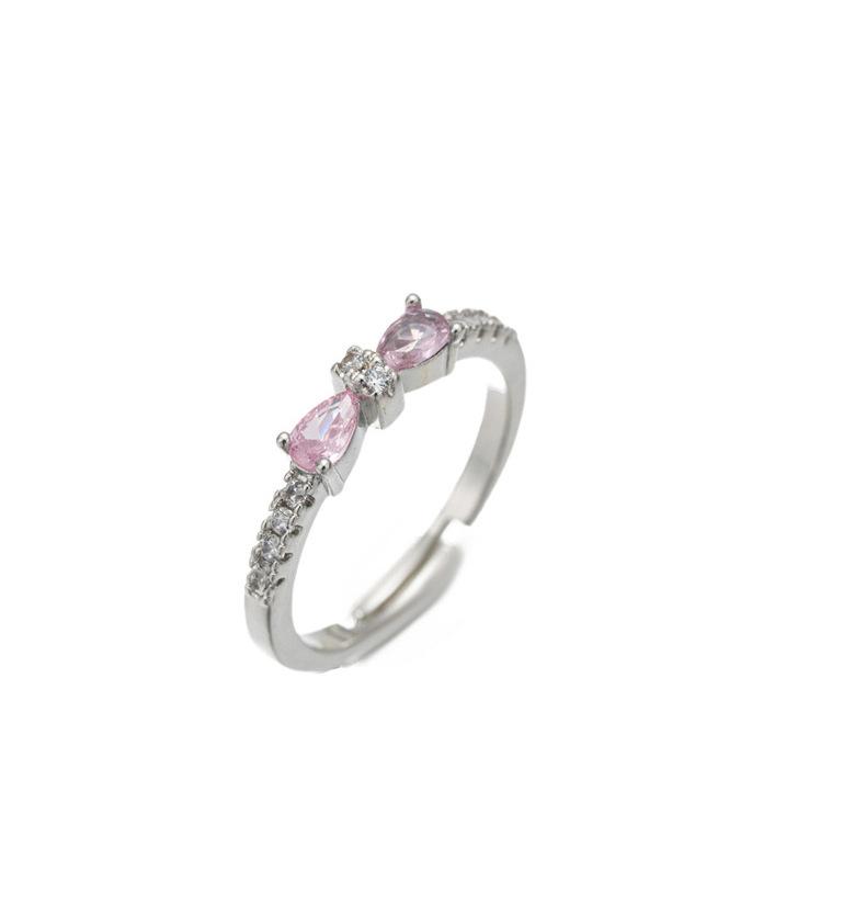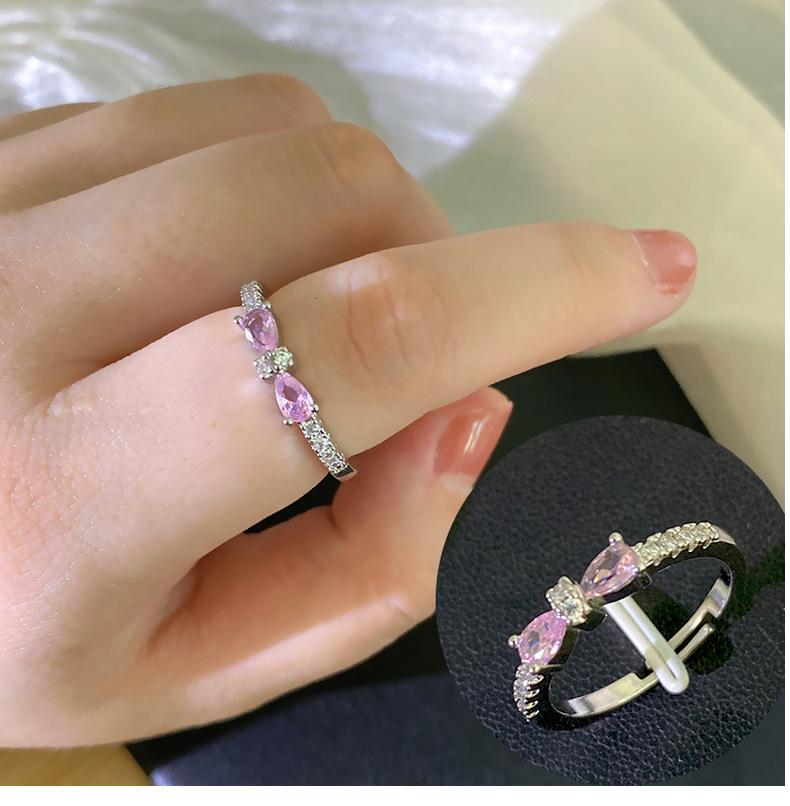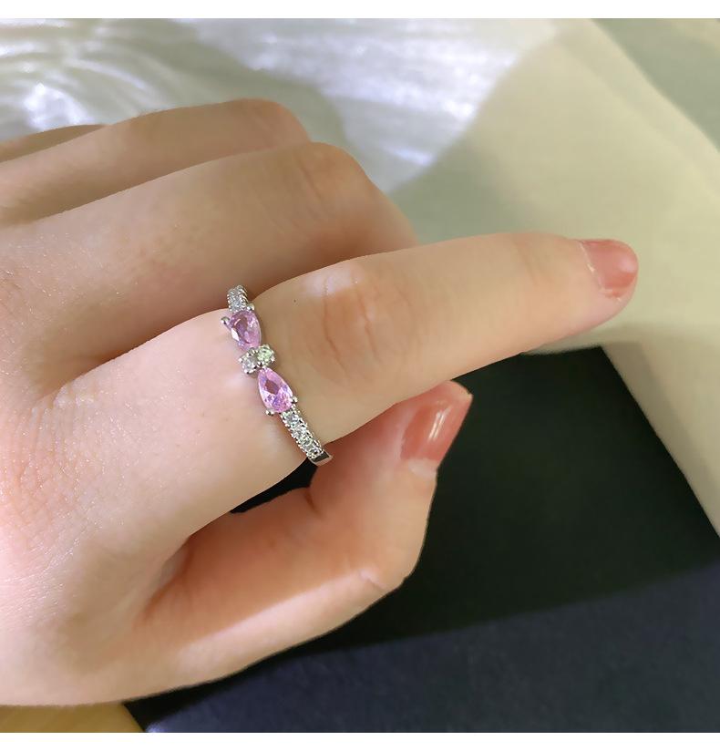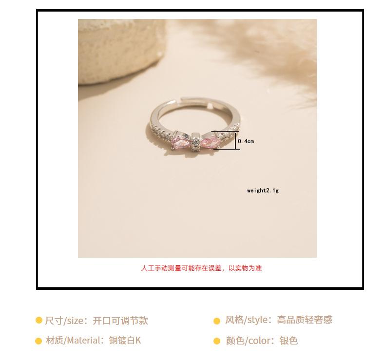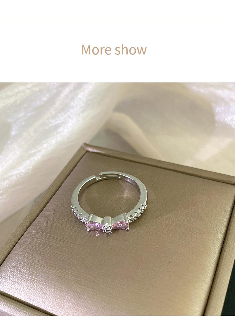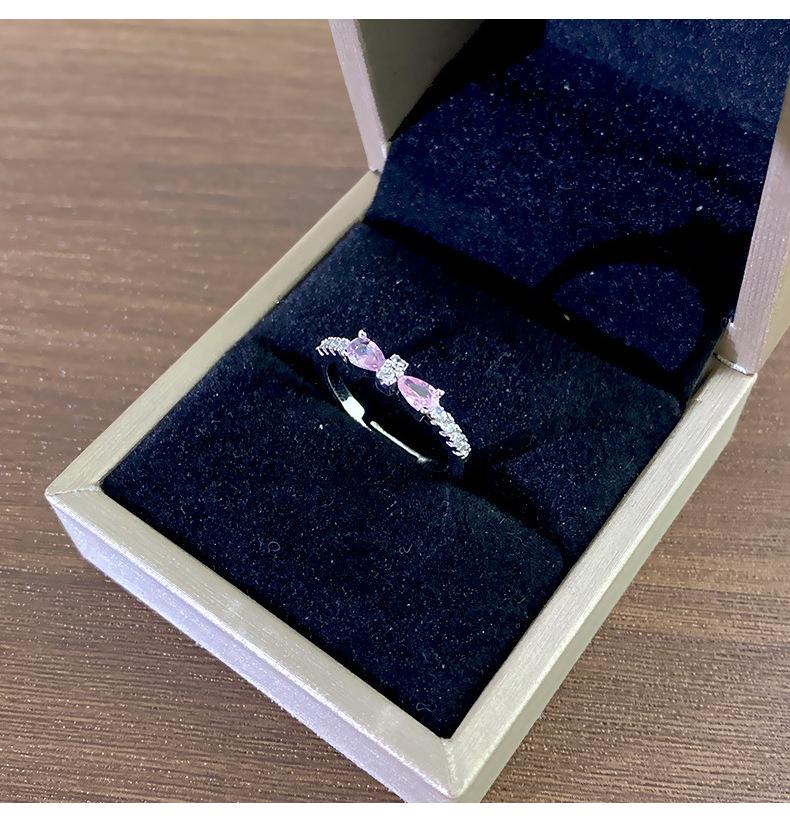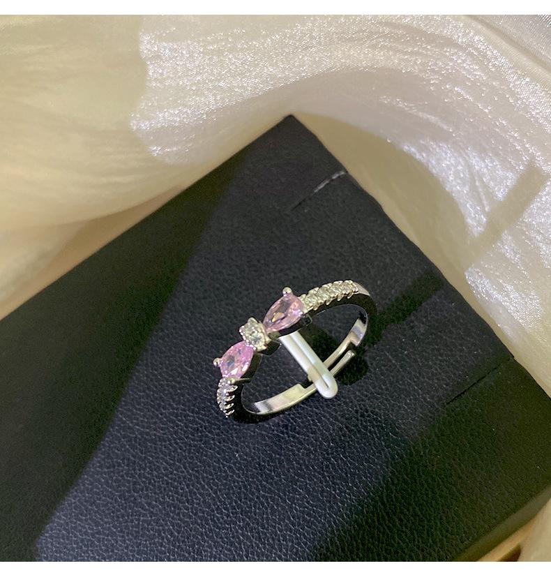 J146 silver pink full diamond bow ring