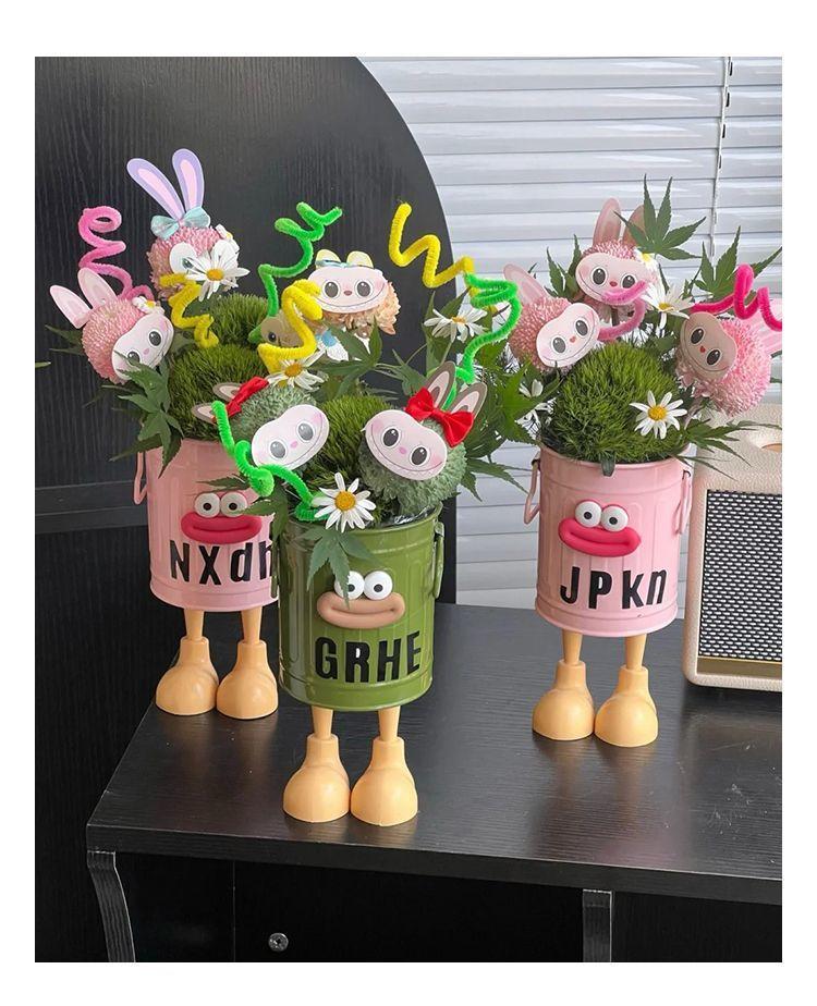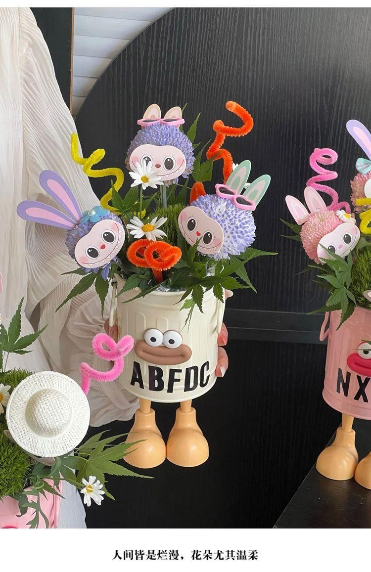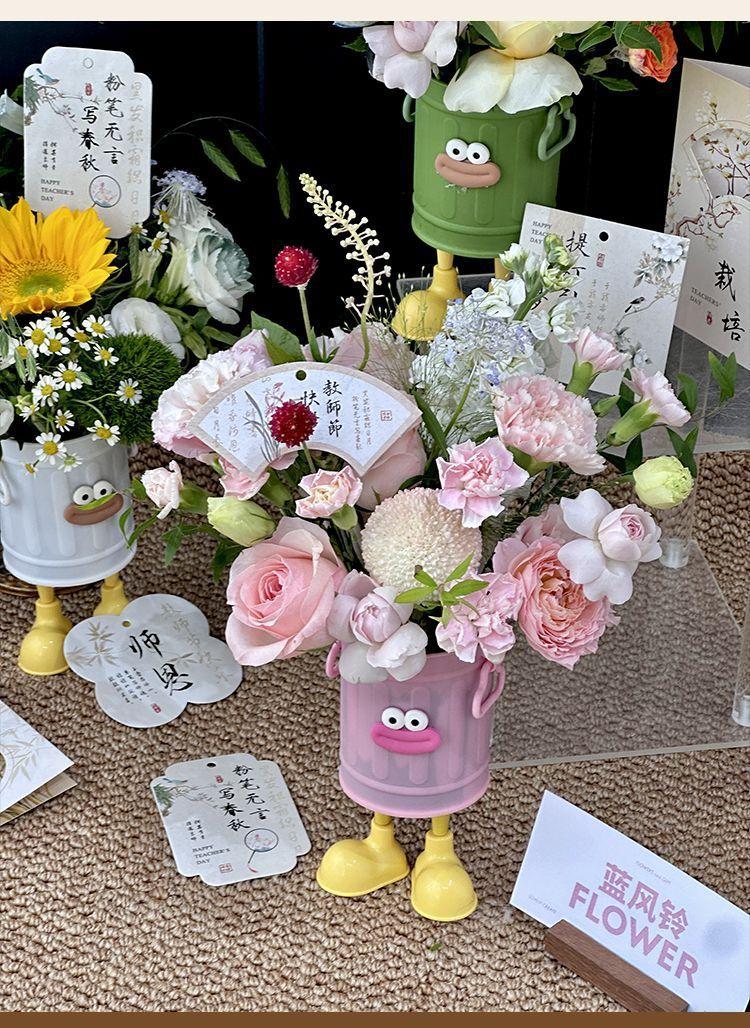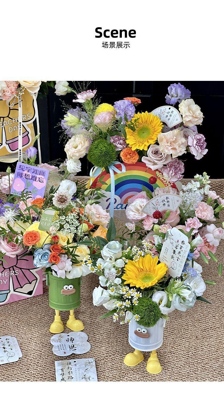 Día del Maestro Arreglo Floral Ramo DIY Hecho a Mano Materiales para Ramo Materiales de Empaque Cubeta Avanzada para Ramo Nuevo Soporte para Lápices Goofy