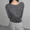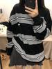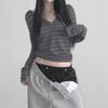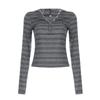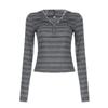 Ins Camiseta de manga larga con capucha y bloques de color a rayas retro europeo y americano para mujer Y2K chica hot cuello en V básica versátil top tendencia transfronterizo
