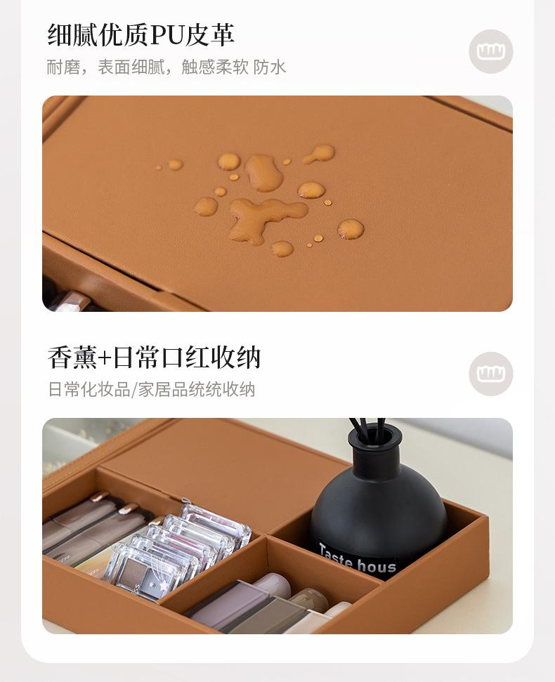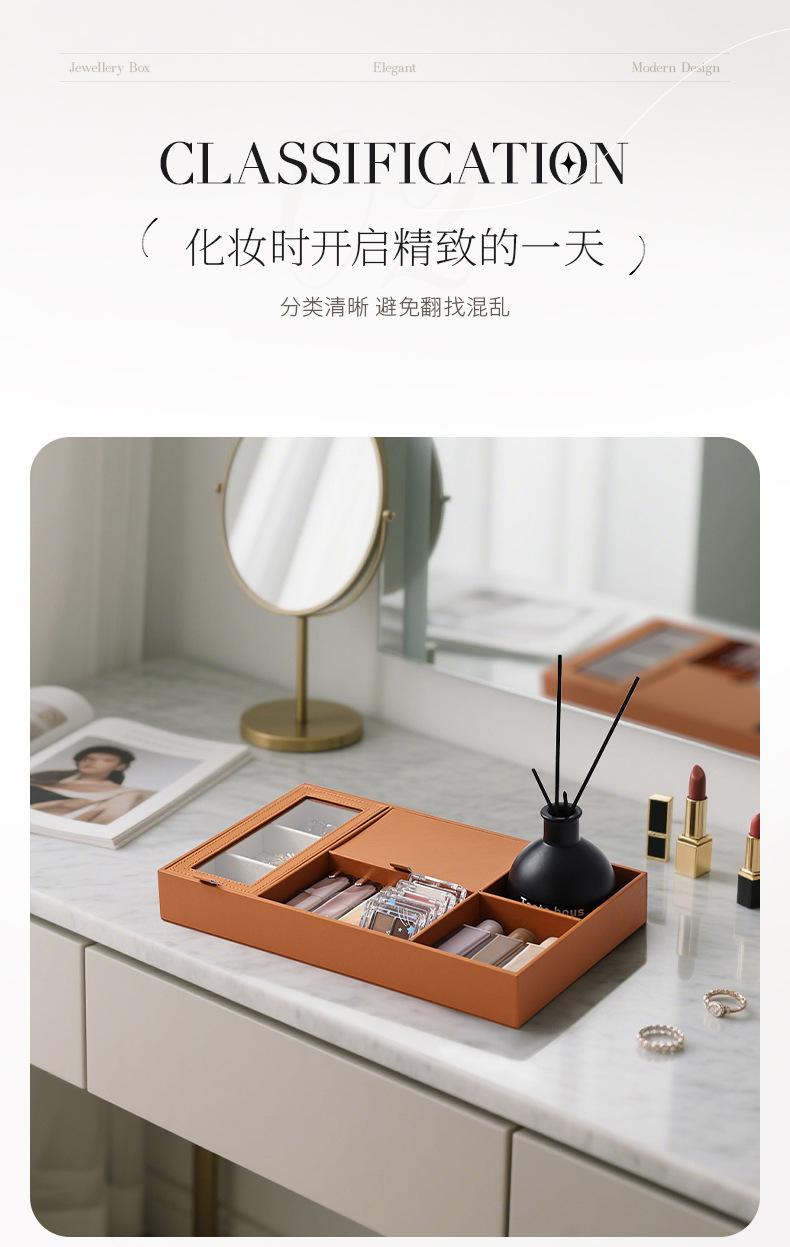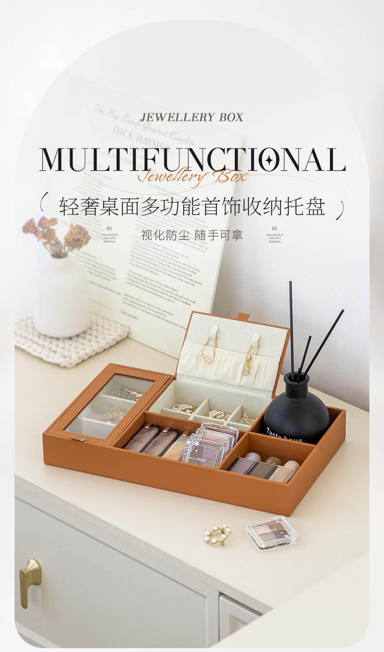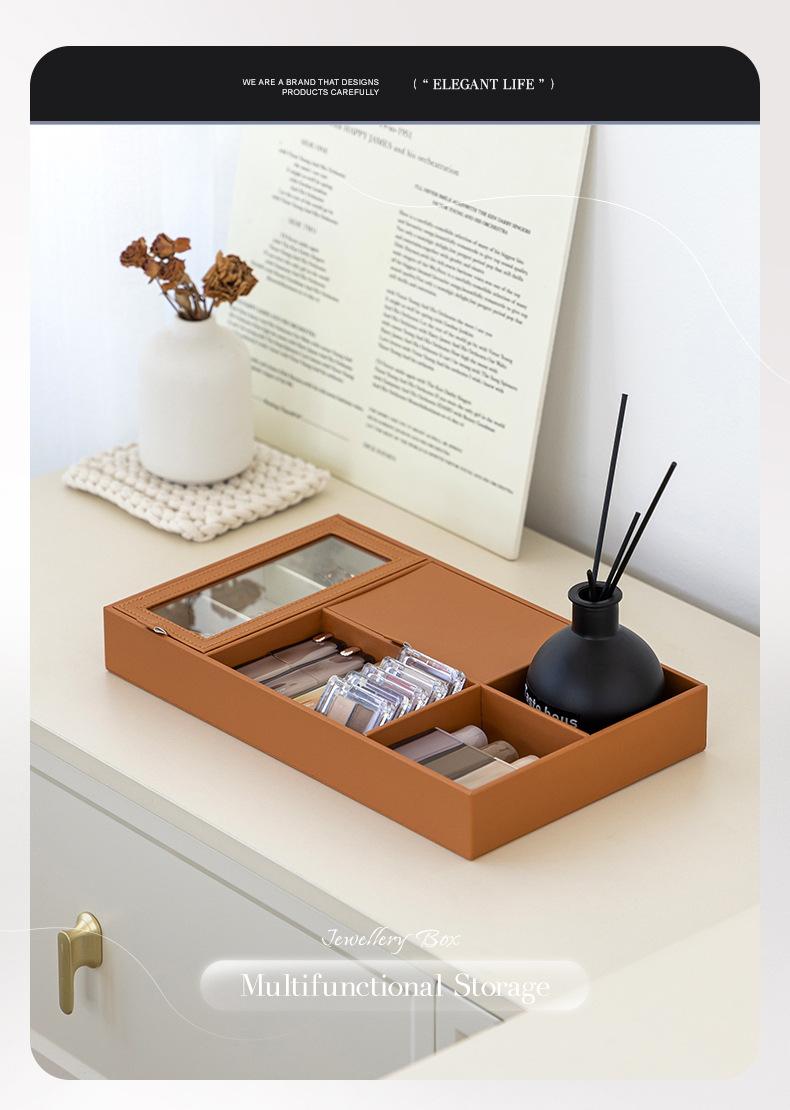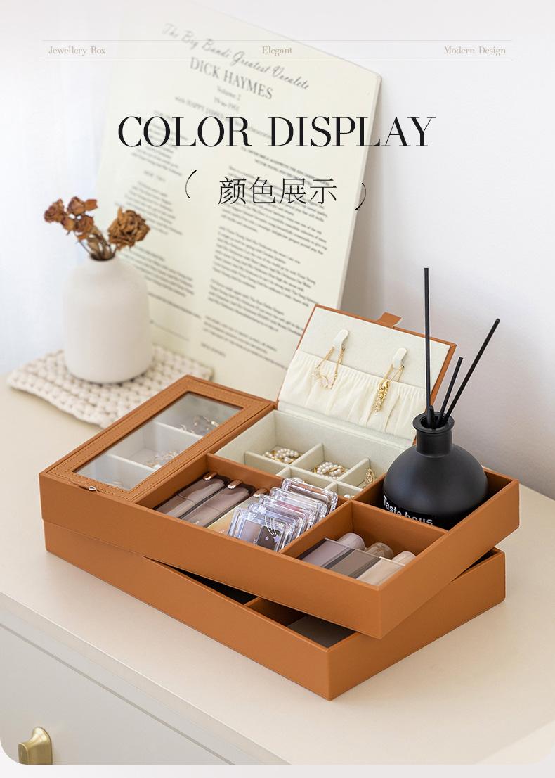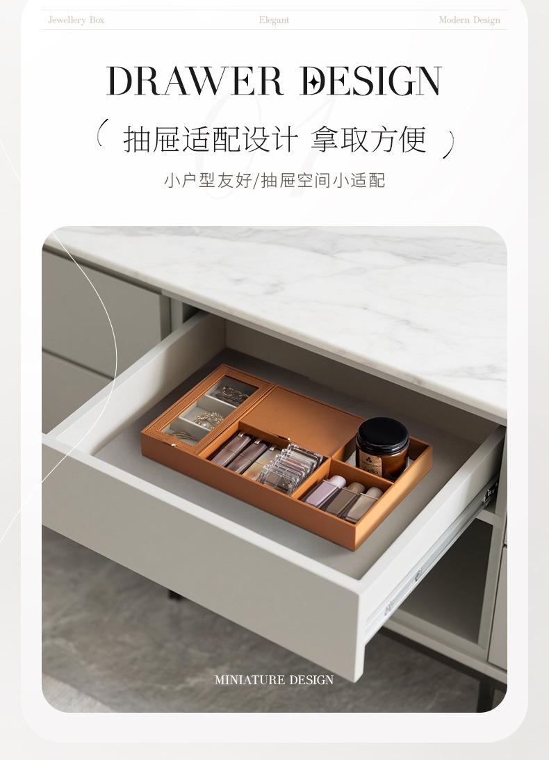 Bandeja de Almacenamiento de Escritorio de Cuero Transfronteriza Europea y Americana de Alta Gama Caja de Exhibición con Cajón para Escritorio Cosméticos Joyero Bandeja de Almacenamiento