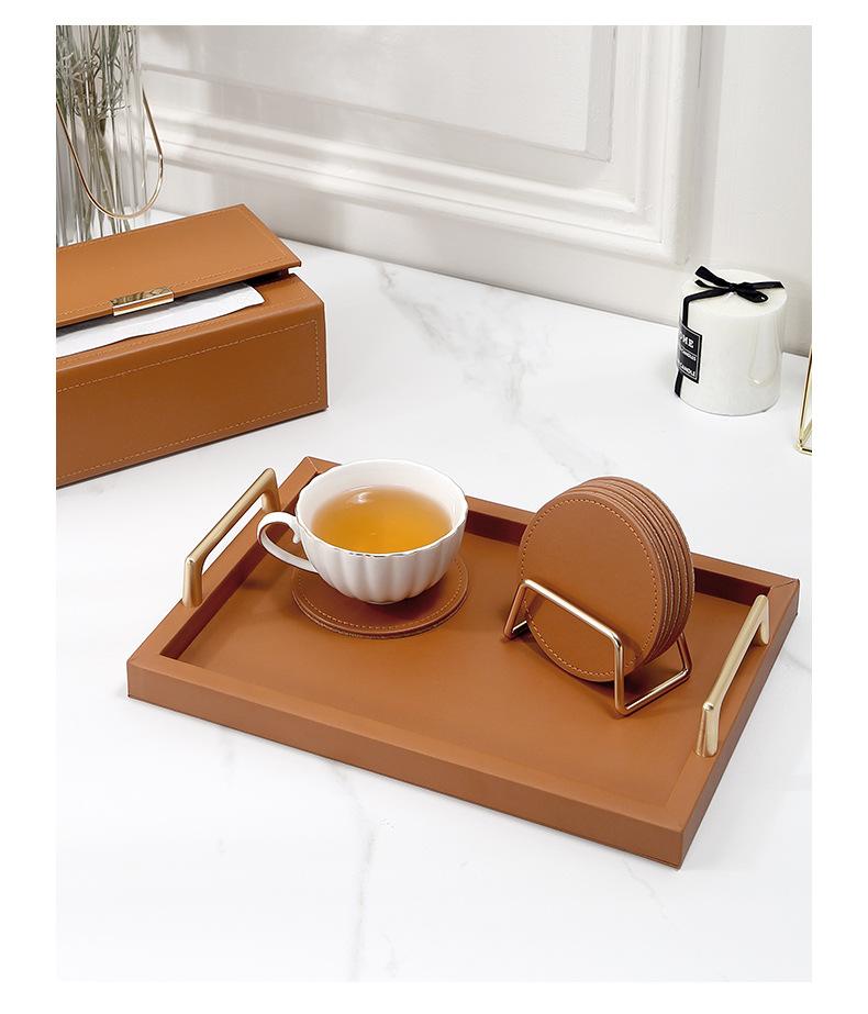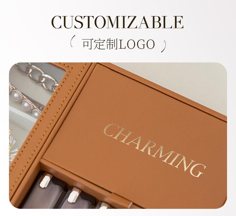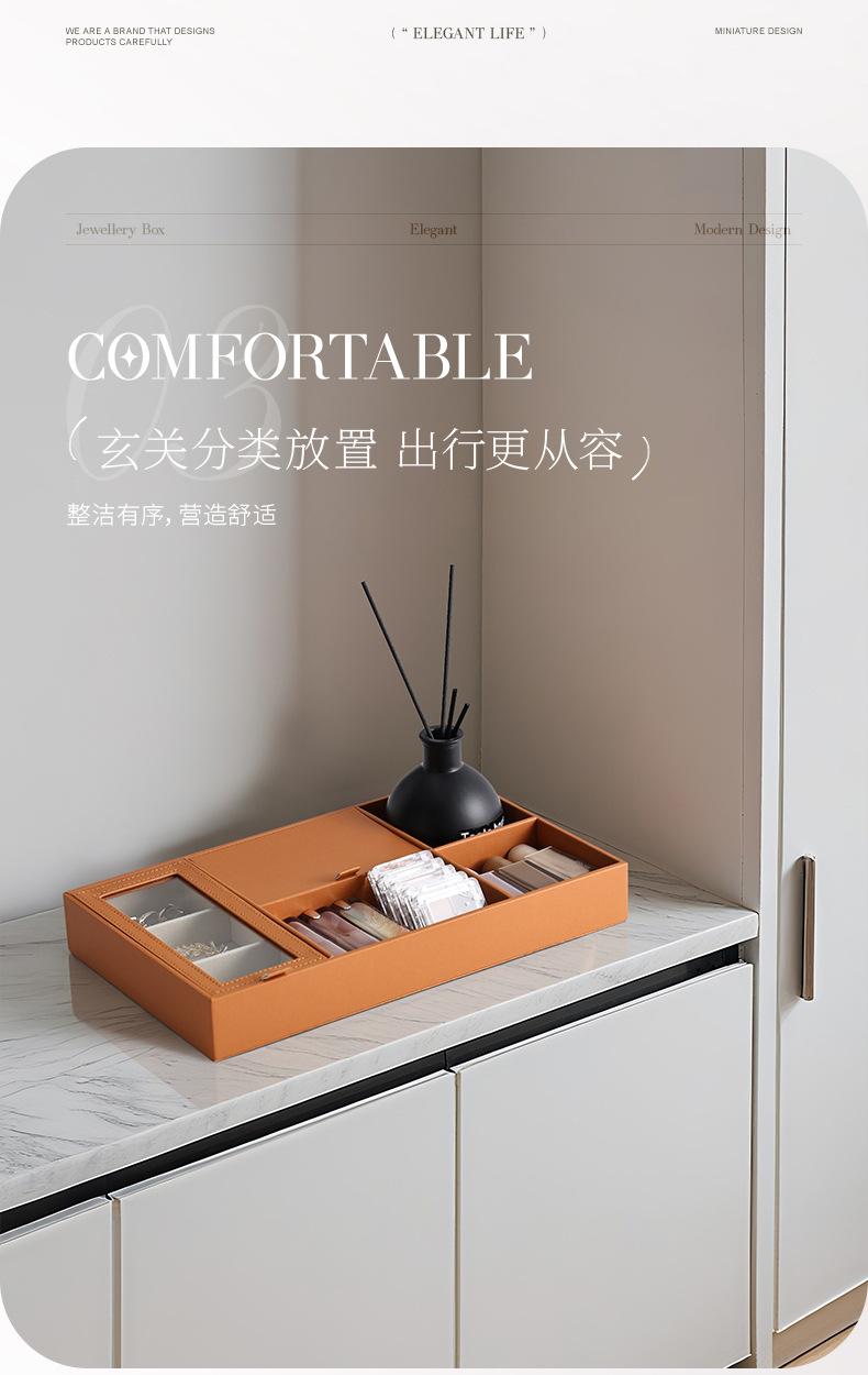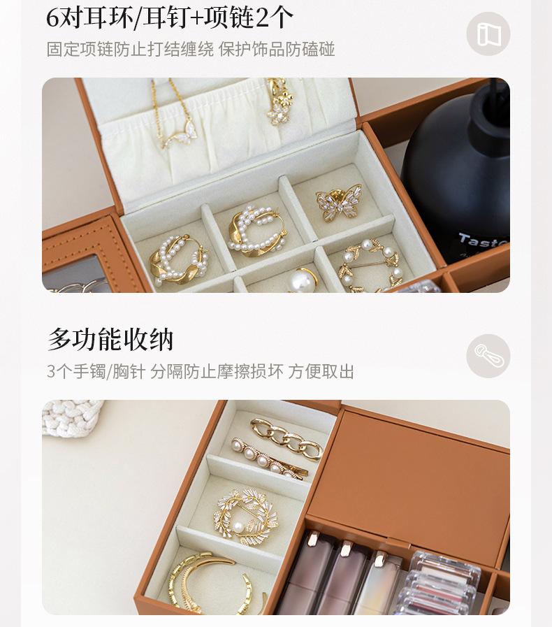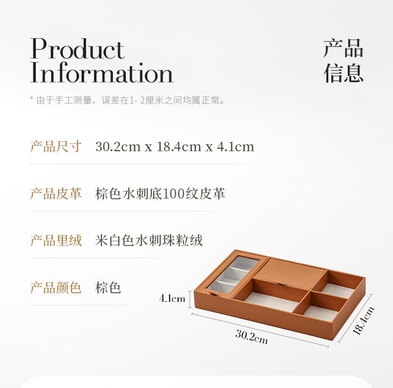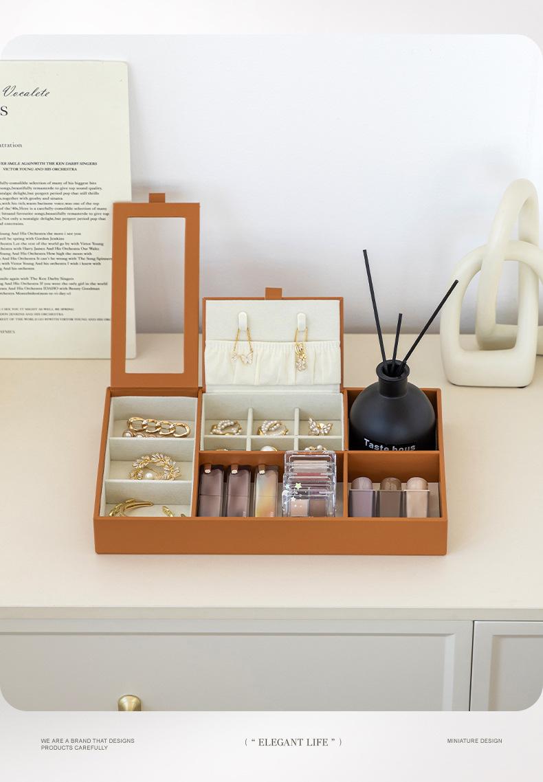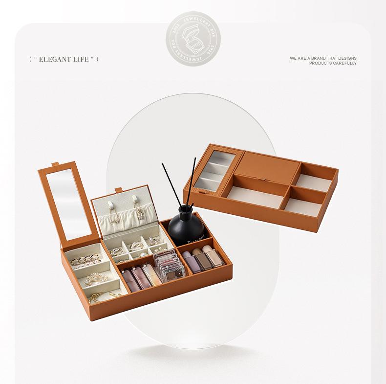 Bandeja de Almacenamiento de Escritorio de Cuero Transfronteriza Europea y Americana de Alta Gama Caja de Exhibición con Cajón para Escritorio Cosméticos Joyero Bandeja de Almacenamiento