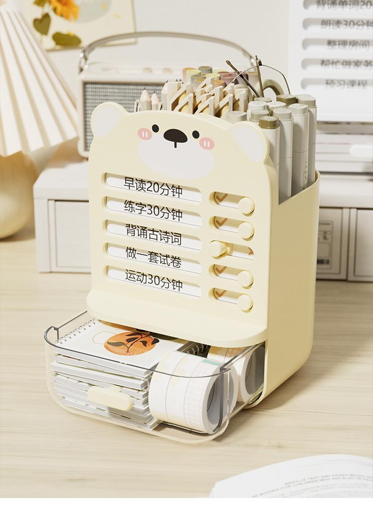 Caja de almacenamiento de escritorio tipo cajón, soporte para bolígrafos para estudiantes, estante de almacenamiento para estación de oficina, caja organizadora de papelería de escritorio de acrílico