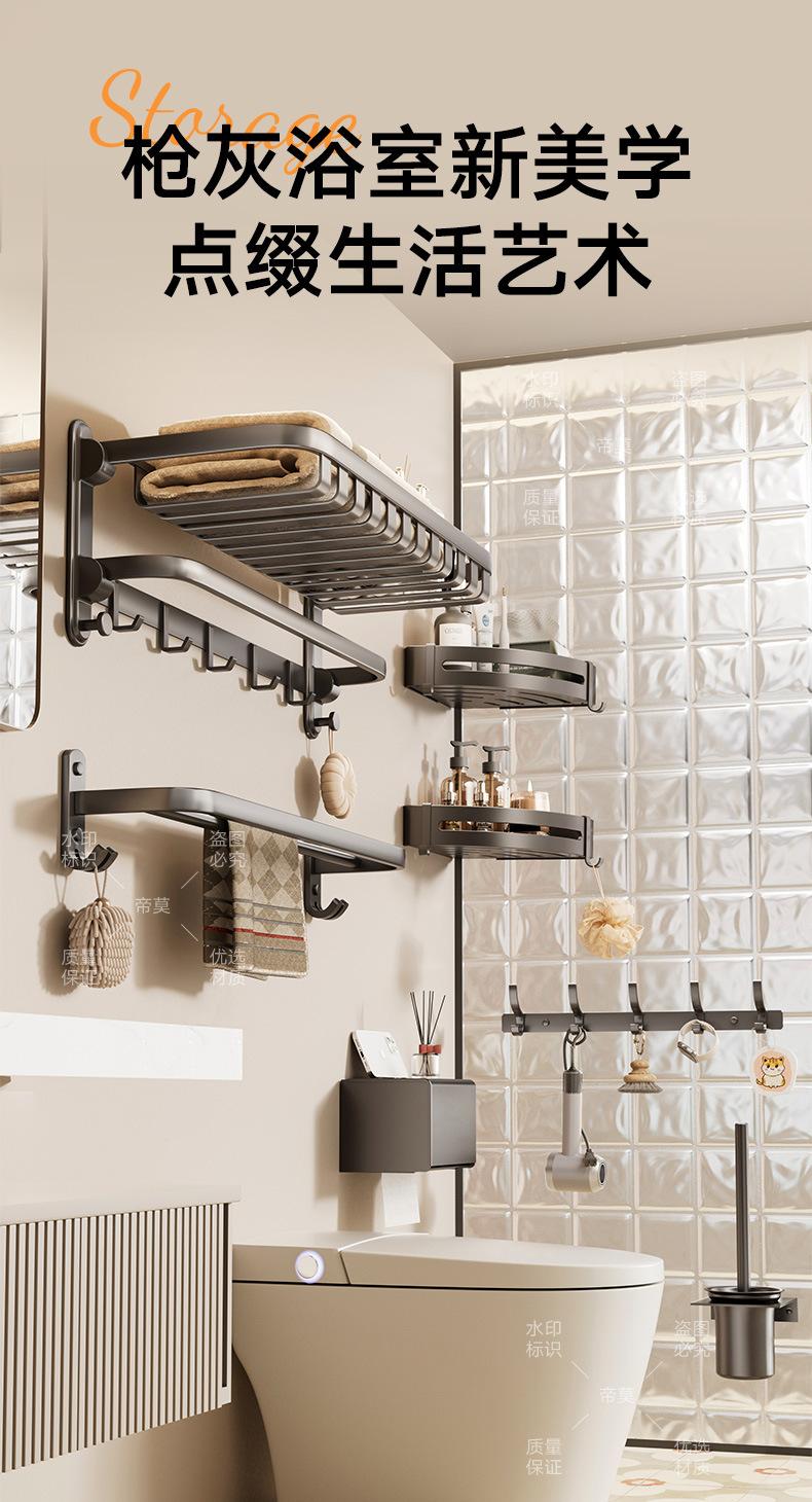 Toallero Gunmetal Estante de Baño Perchero Sin Perforación Juego de Accesorios Específicos para Baño Toallero de Baño para Inodoro