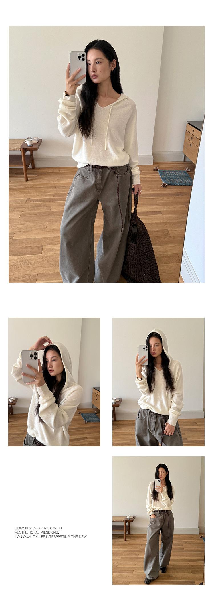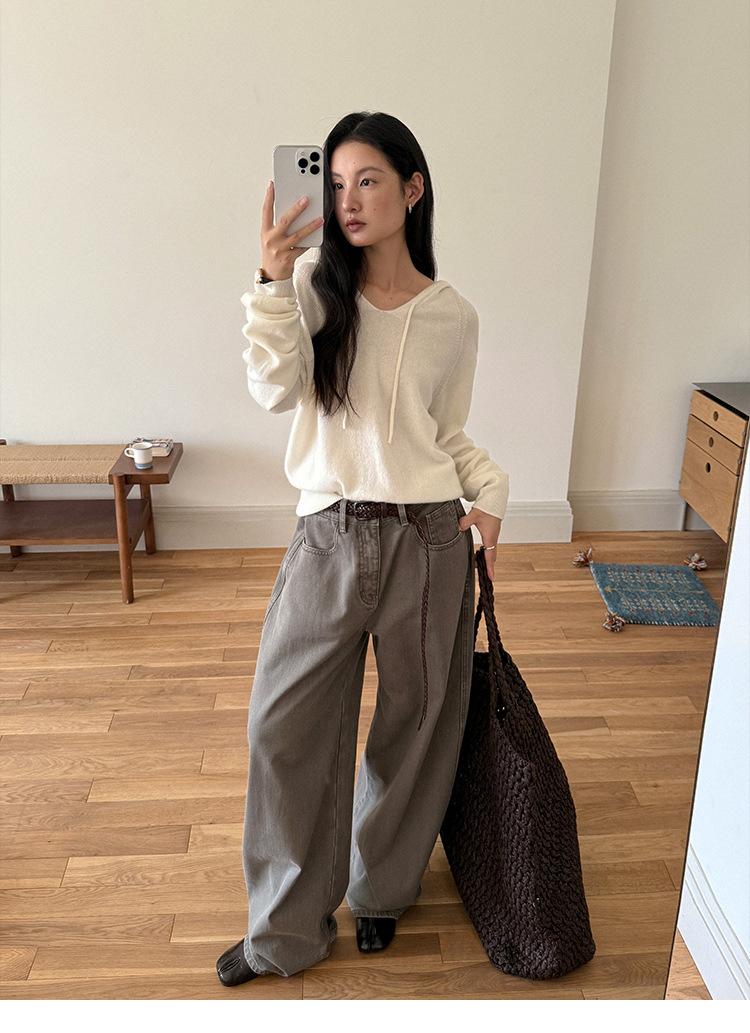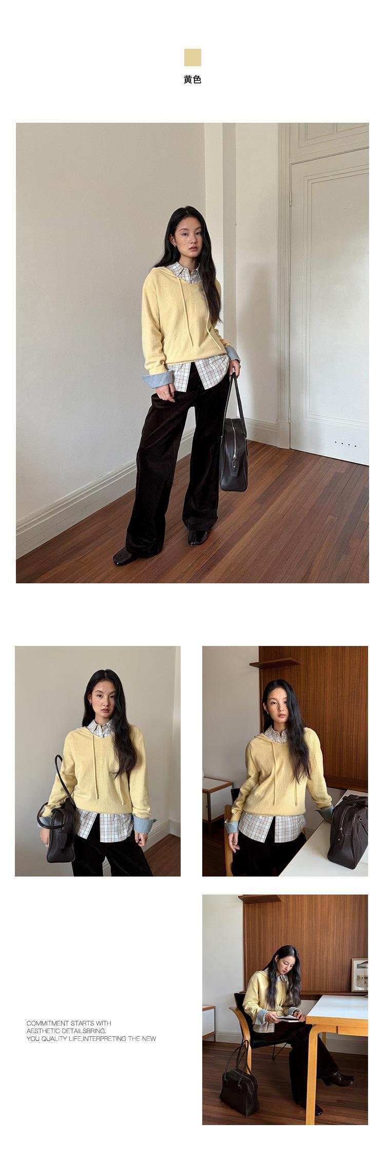 Cárdigan de Lana Texturizada Minimalista Magnolia 2025 Shisanhang Otoño Nuevo Estilo Coreano Top de Punto con Capucha 57909
