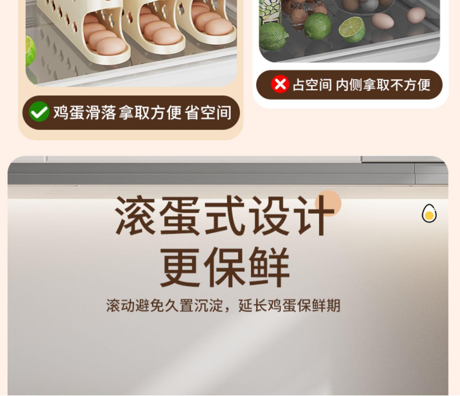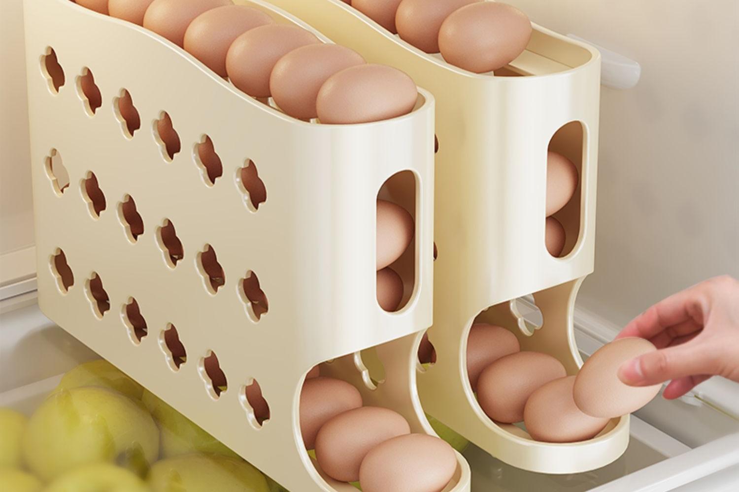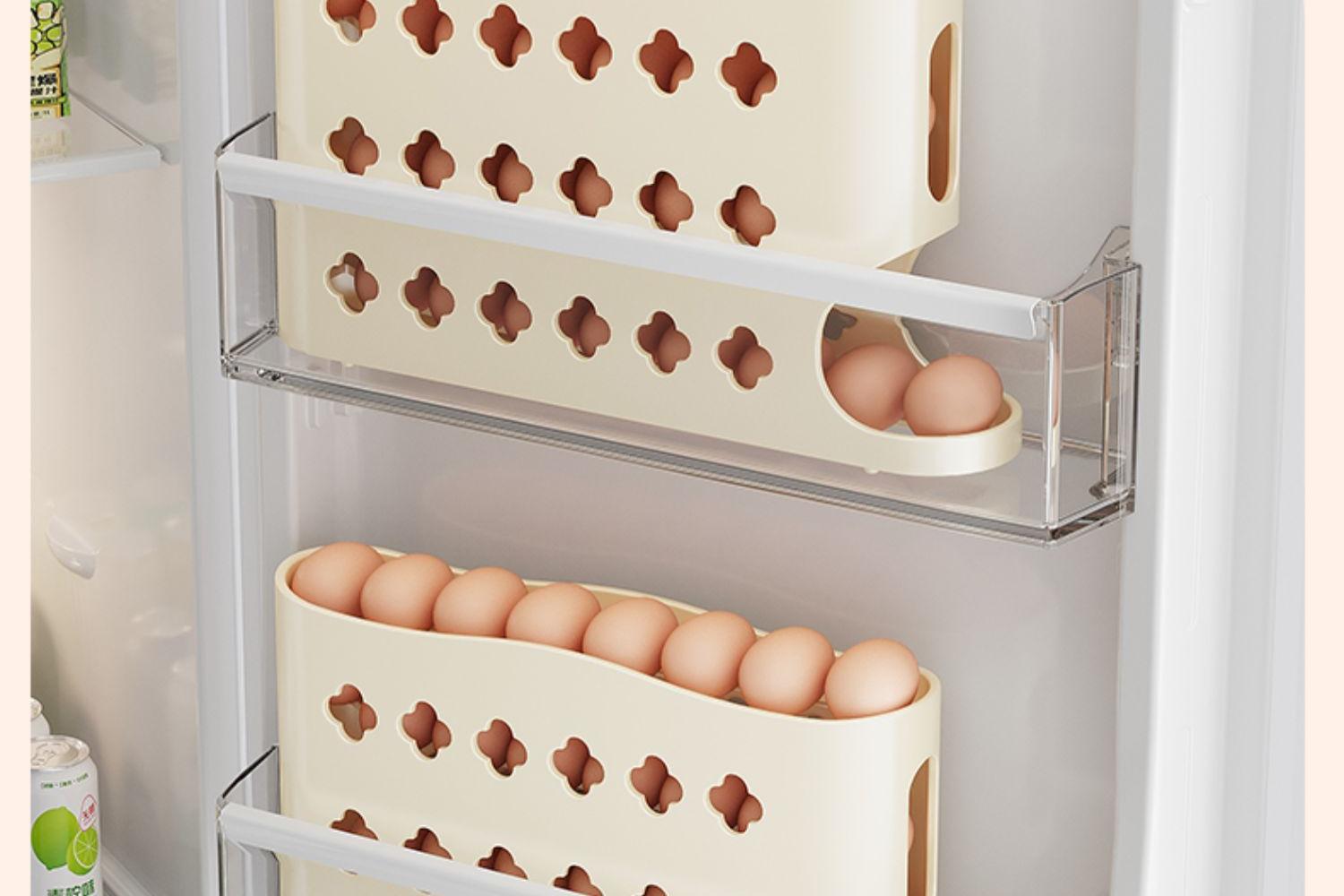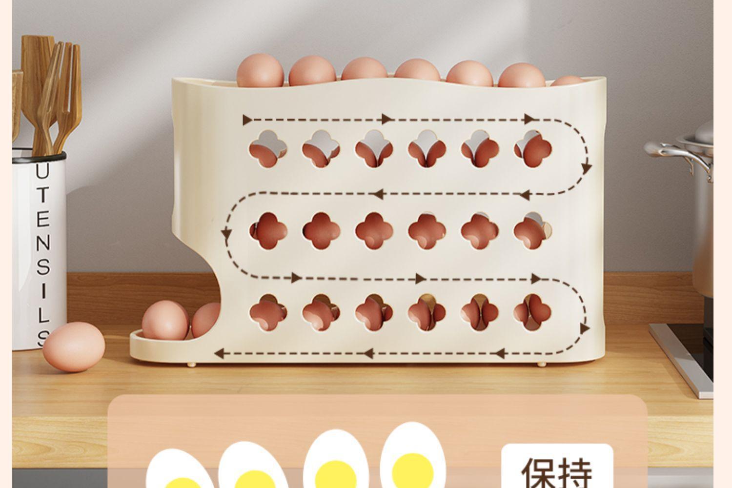 Caja de Almacenamiento de Huevos Rodante Lista para Usar Cocina Multicapa Dispositivo Rodante para Huevos Doméstico Refrigerador Bandeja de Plástico para Huevos Crisper al por Mayor