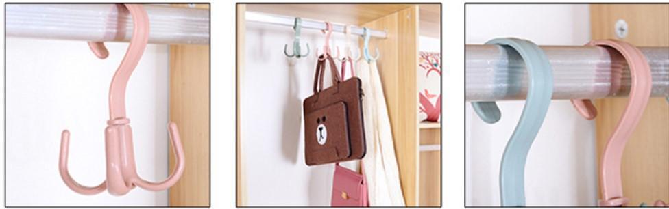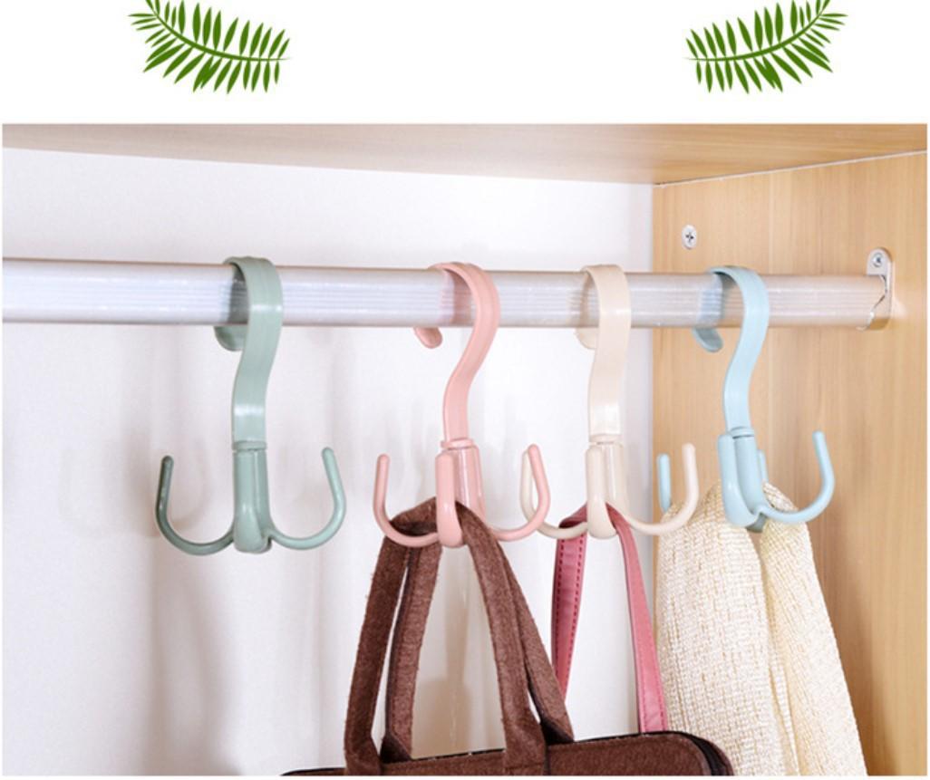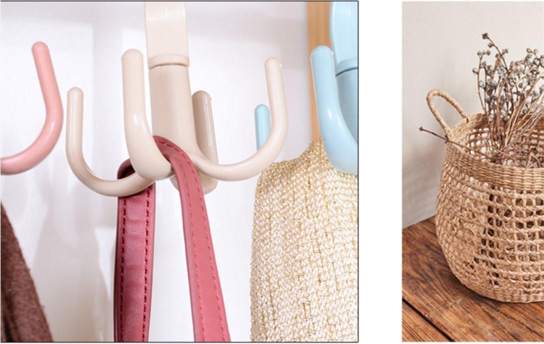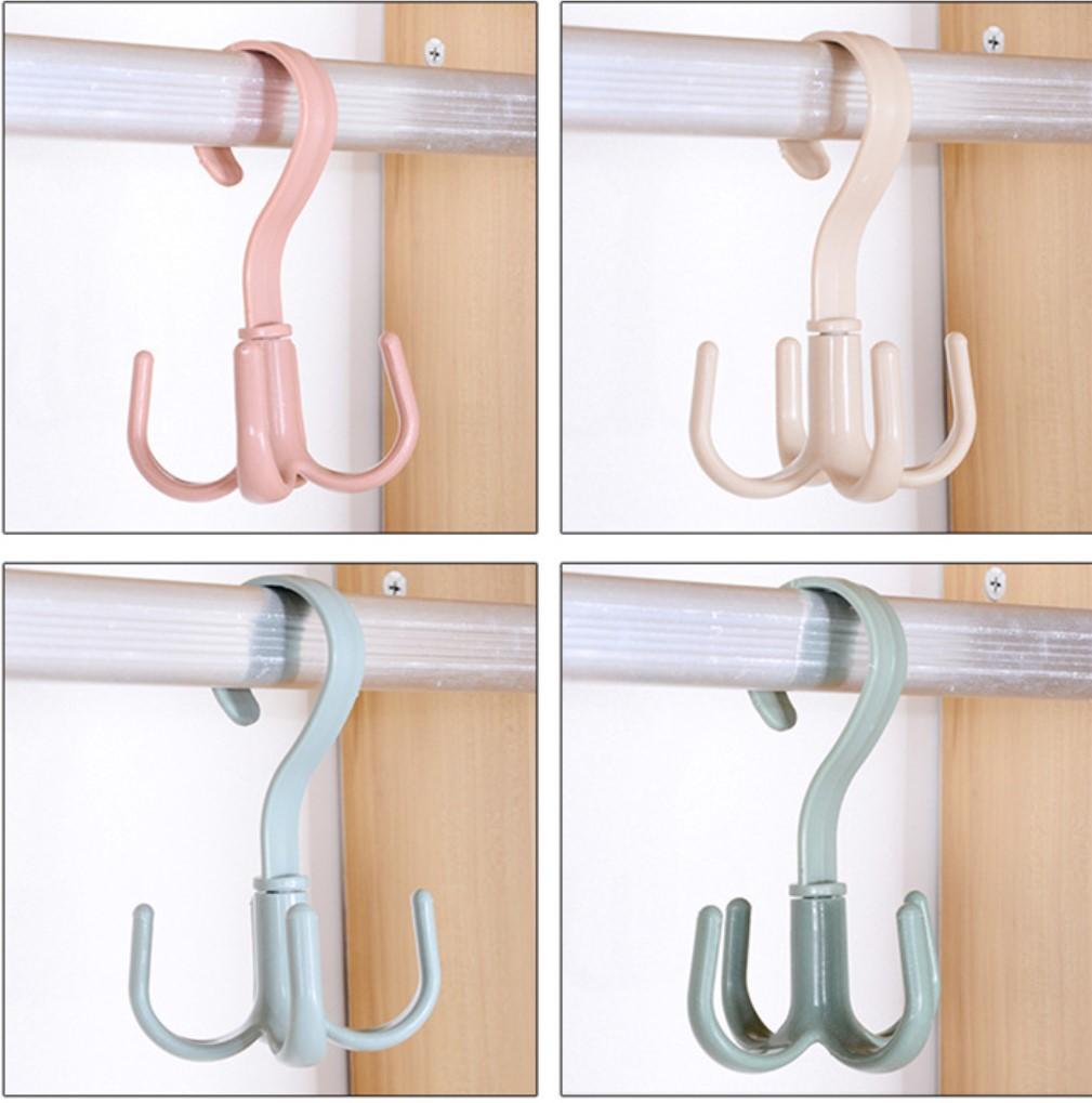Gancho de cuatro garras multifuncional para abrigos, gancho para pared doméstico, organizador de bolsos, corbatero, estante para bufandas sin perforación, giratorio