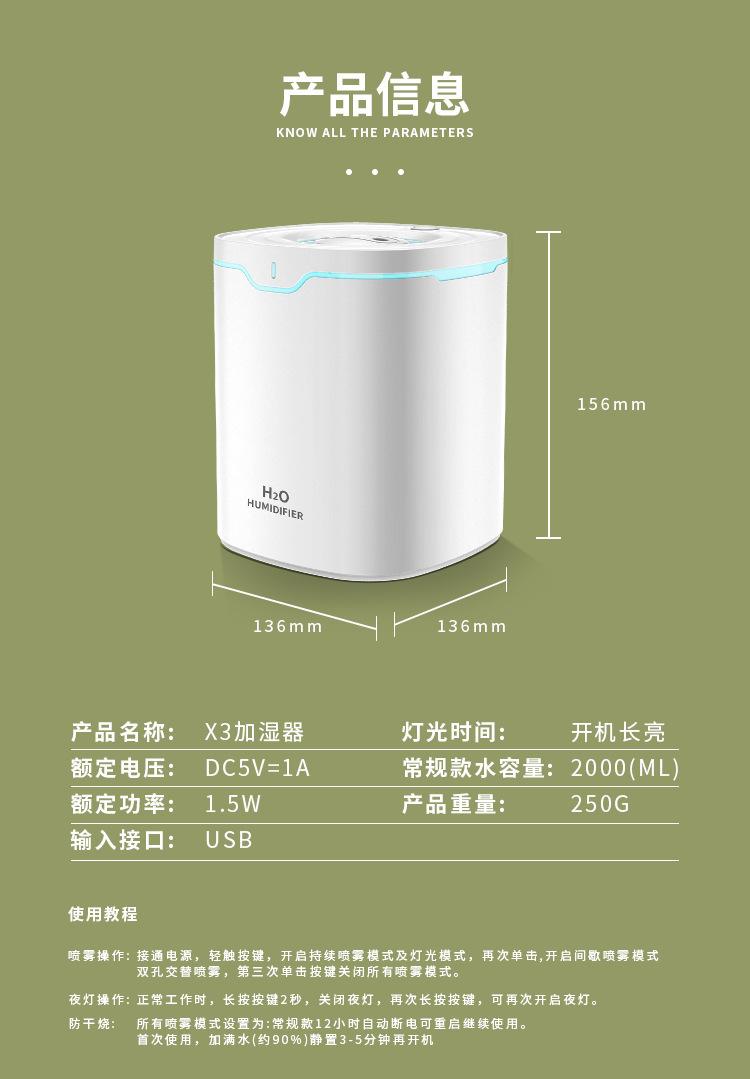 Nombre del producto: Humidificador X3 (Doble pulverización)
