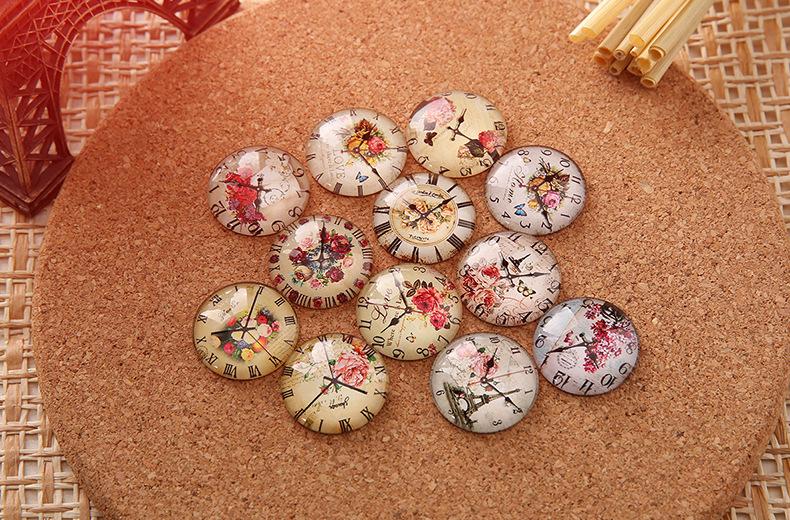Nuevos accesorios de joyería DIY patrón clásico redondo Gema del Tiempo parche de vidrio directo de fábrica DIY