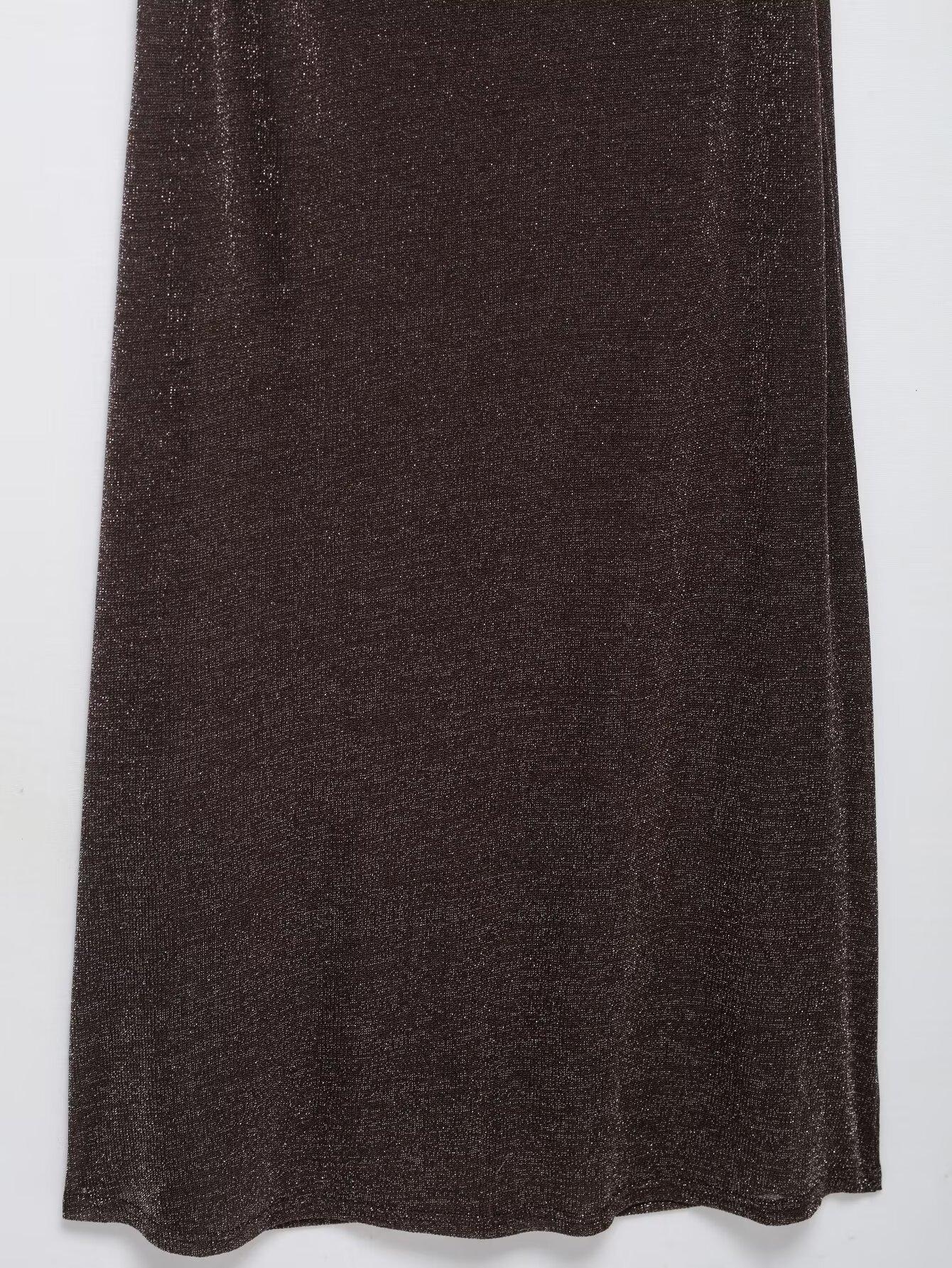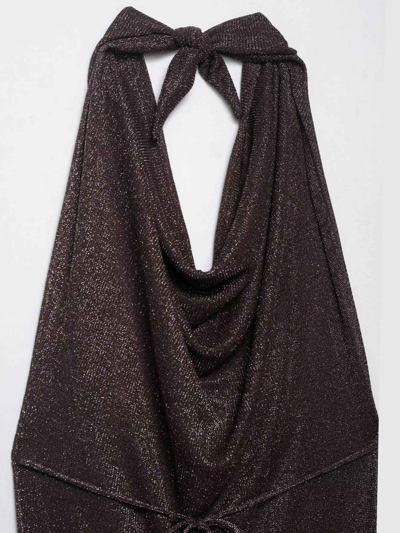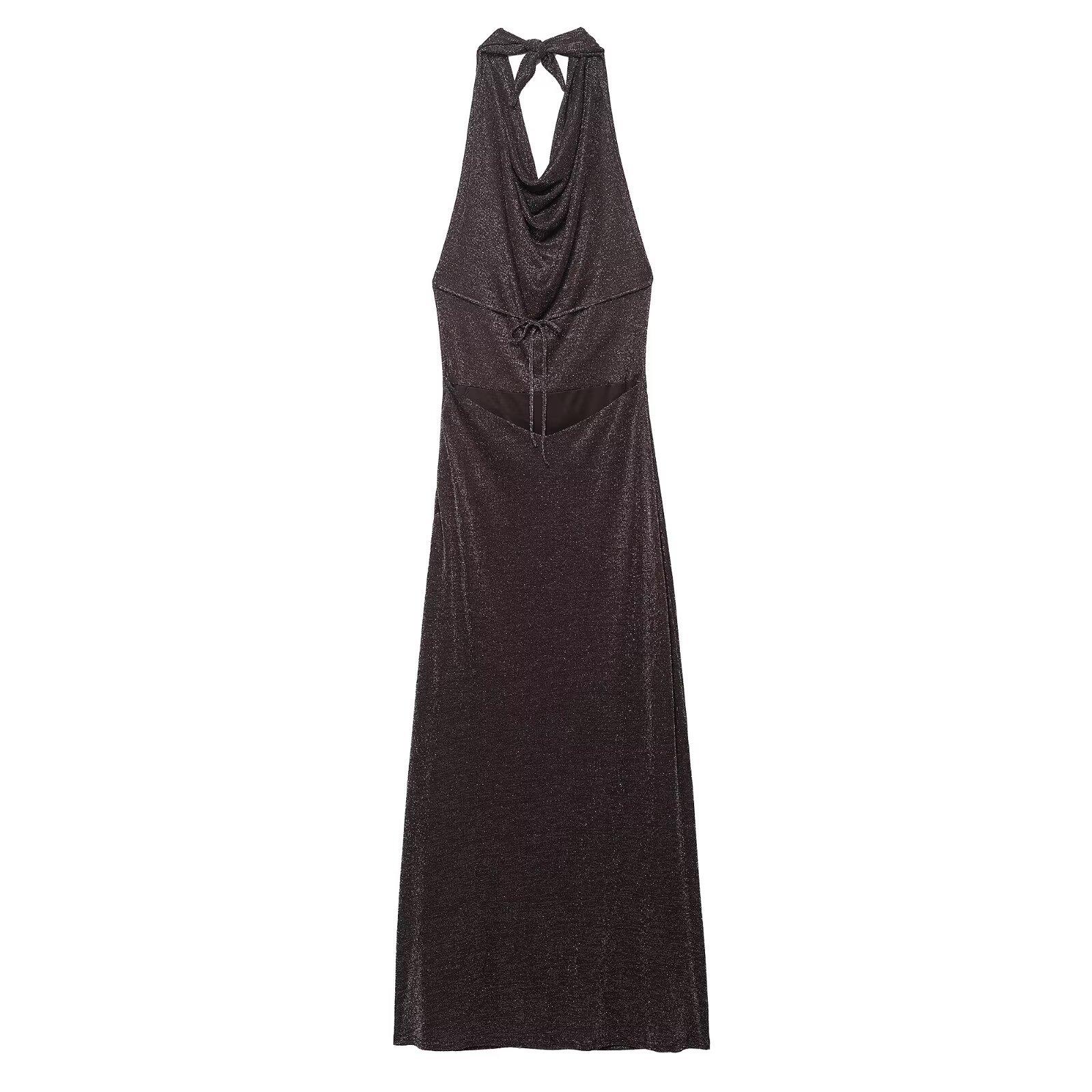 Vestido Largo de Verano para Mujer Estilo Europeo y Americano 2025 Sin Espalda Hilo Metálico Vestido Midi Empalmado Color de la Imagen 6718