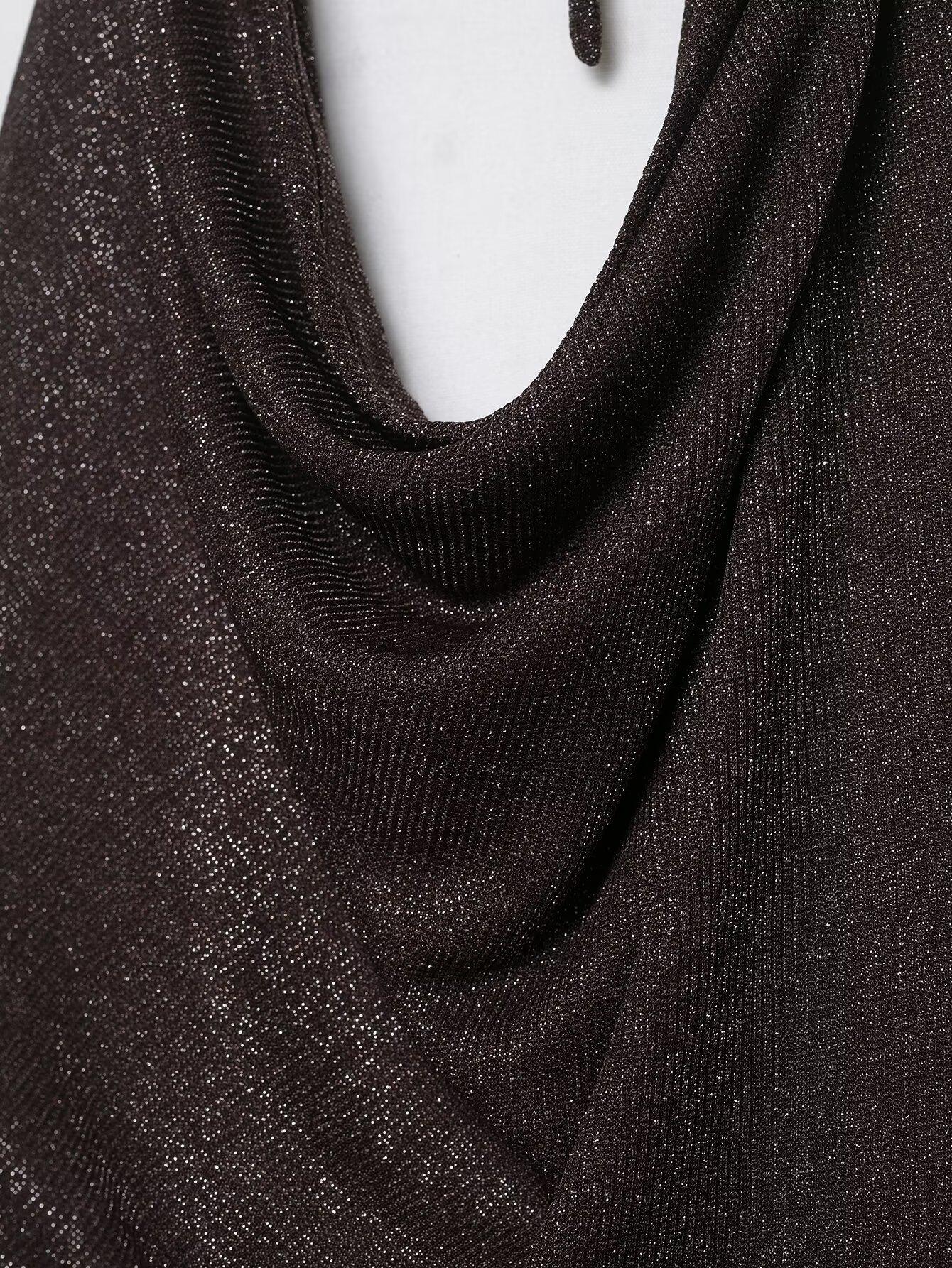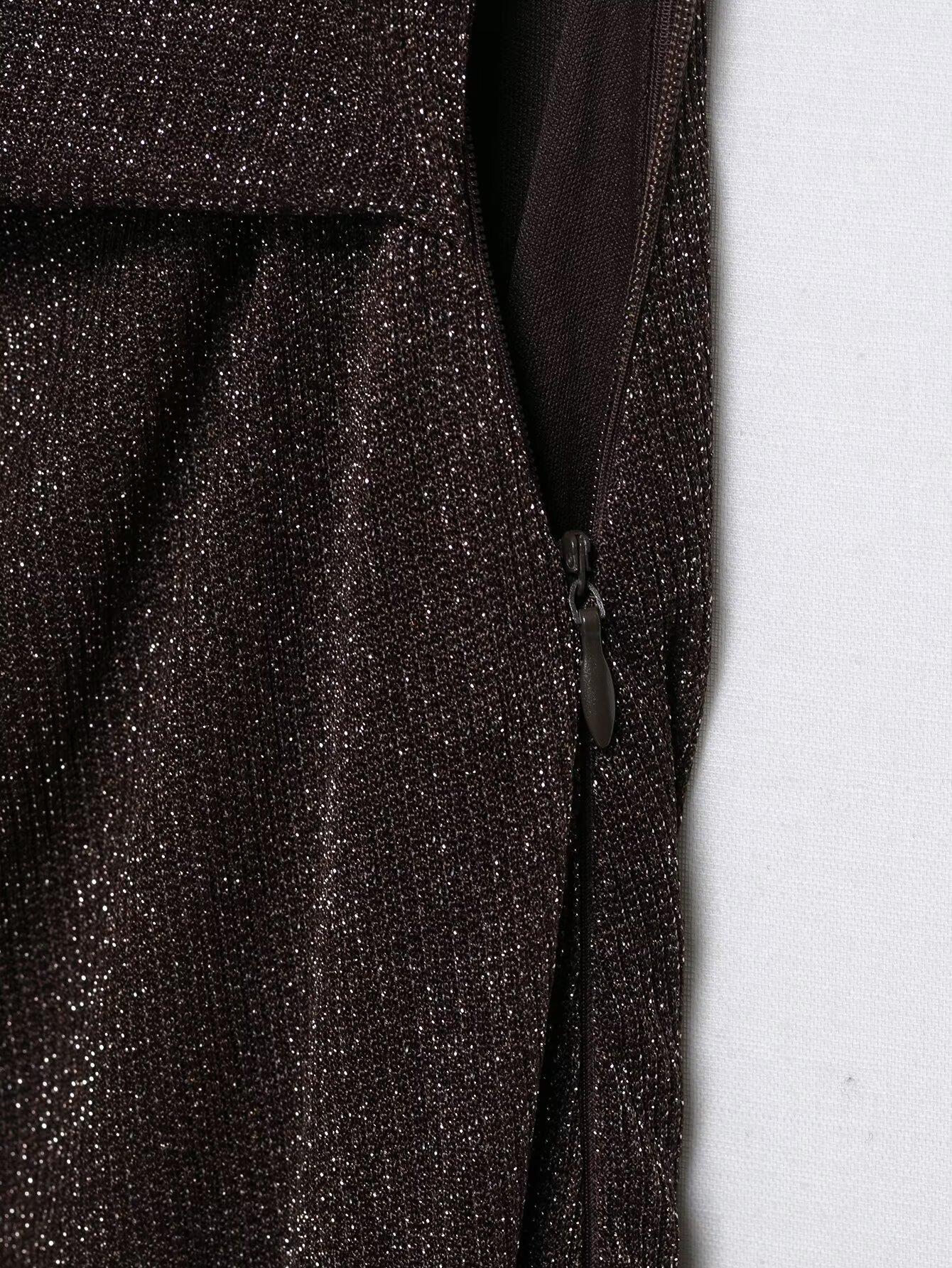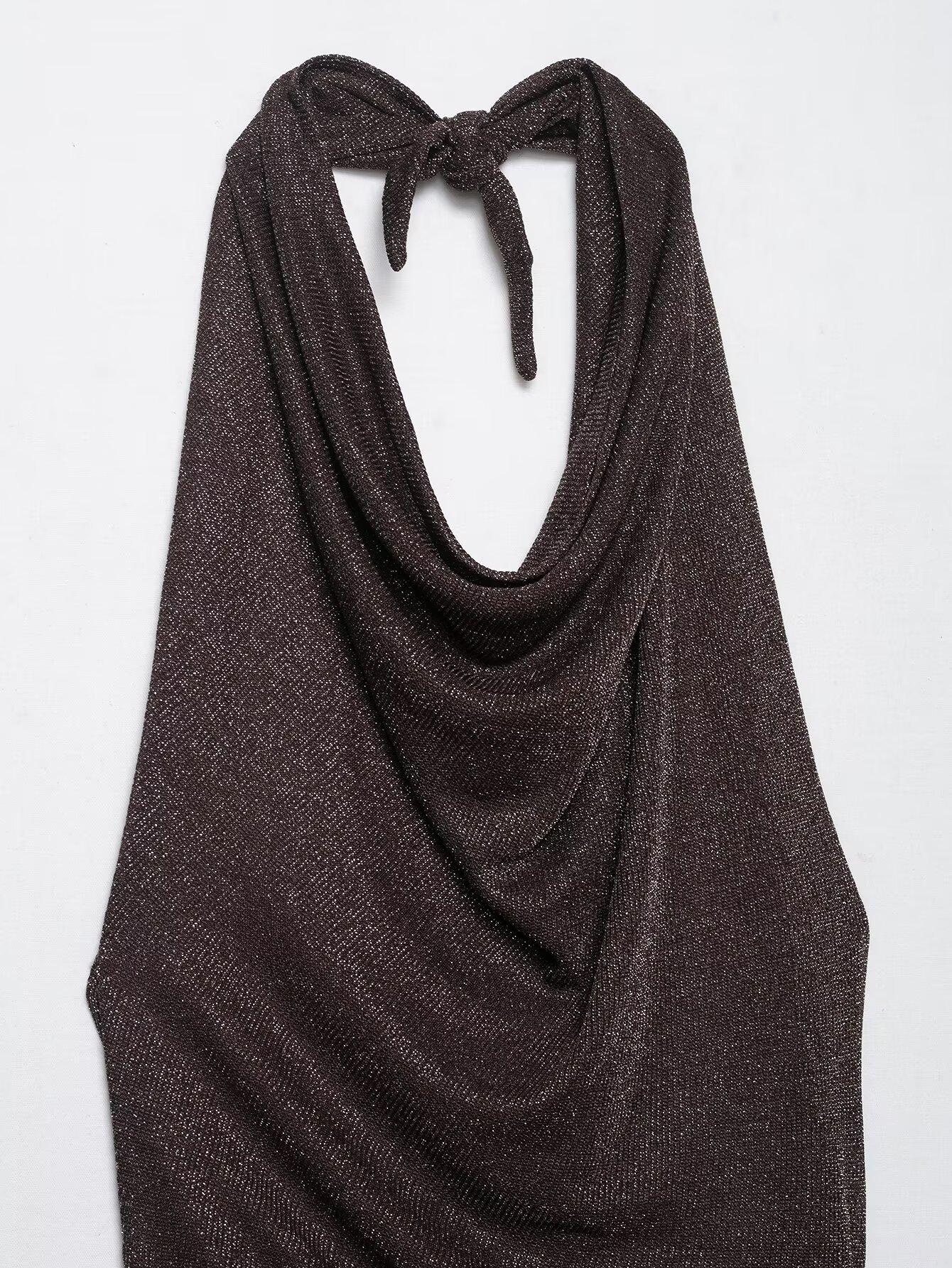 Vestido Largo de Verano para Mujer Estilo Europeo y Americano 2025 Sin Espalda Hilo Metálico Vestido Midi Empalmado Color de la Imagen 6718