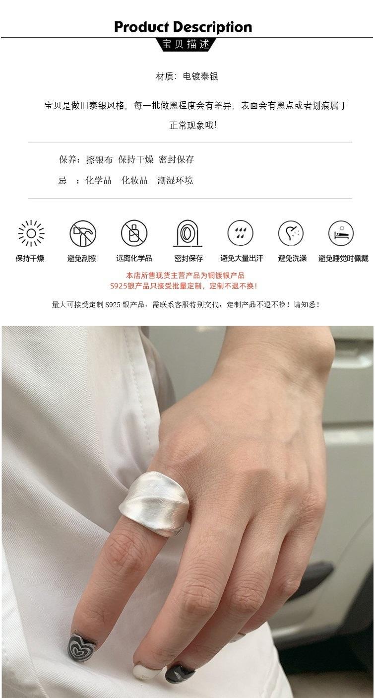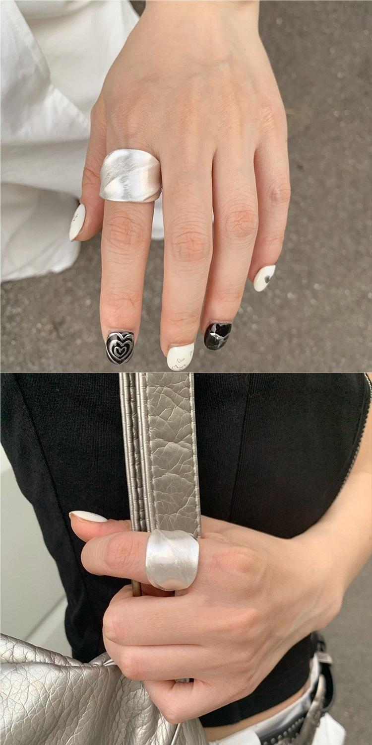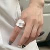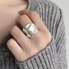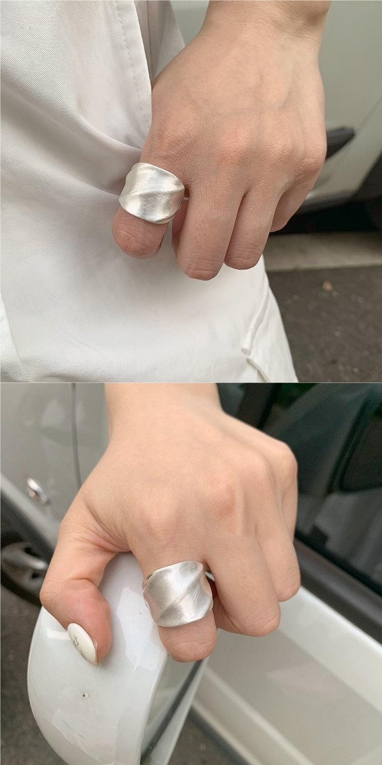 Anillo de Banda Ancha Cepillada de Industria Pesada con Pliegues Moda Mujer Personalidad Versátil Apilable Temperamento Anillo Elástico para Dedo Índice Tendencia