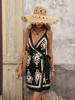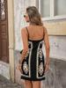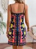Vestido Mini de Verano para Mujer con Estampado Bohemio, Cuello en V Profundo, Tirantes Espagueti, Cintura Ceñida, Una Pieza, Cami Vestido Envolvente con Lazo