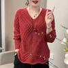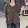 Cuello Jacquard Holgado Perezoso Coreano Color Calado Camisa Tejida Ropa Exterior Suéter para Mujer Primavera y Otoño Combinación Total Nueva Llegada