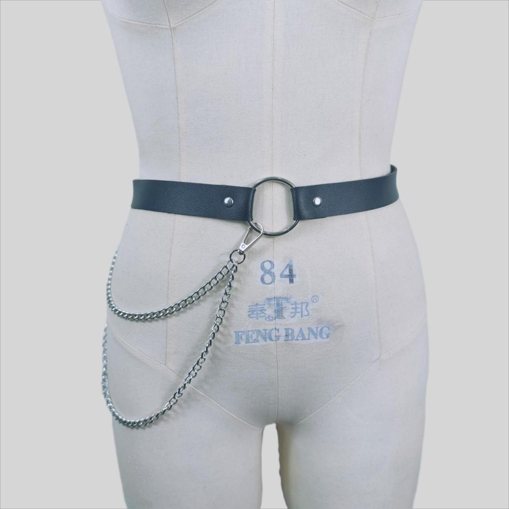 Europeo y Americano Nuevo Punk Decoración de Cadena Oscura Accesorios de Cinturón de Cuero Moda Cintura Ceñida Abdomen Moldeado Moldeado de Cuerpo Cadena de Cintura Circular