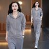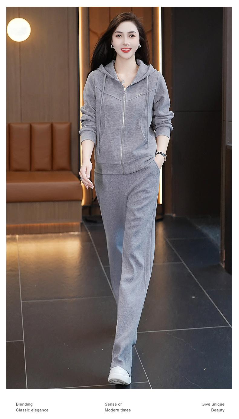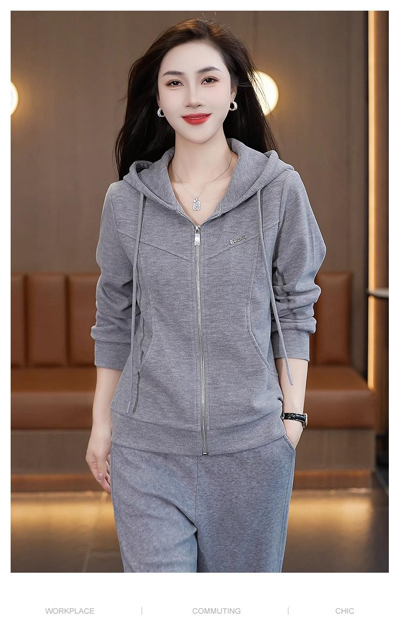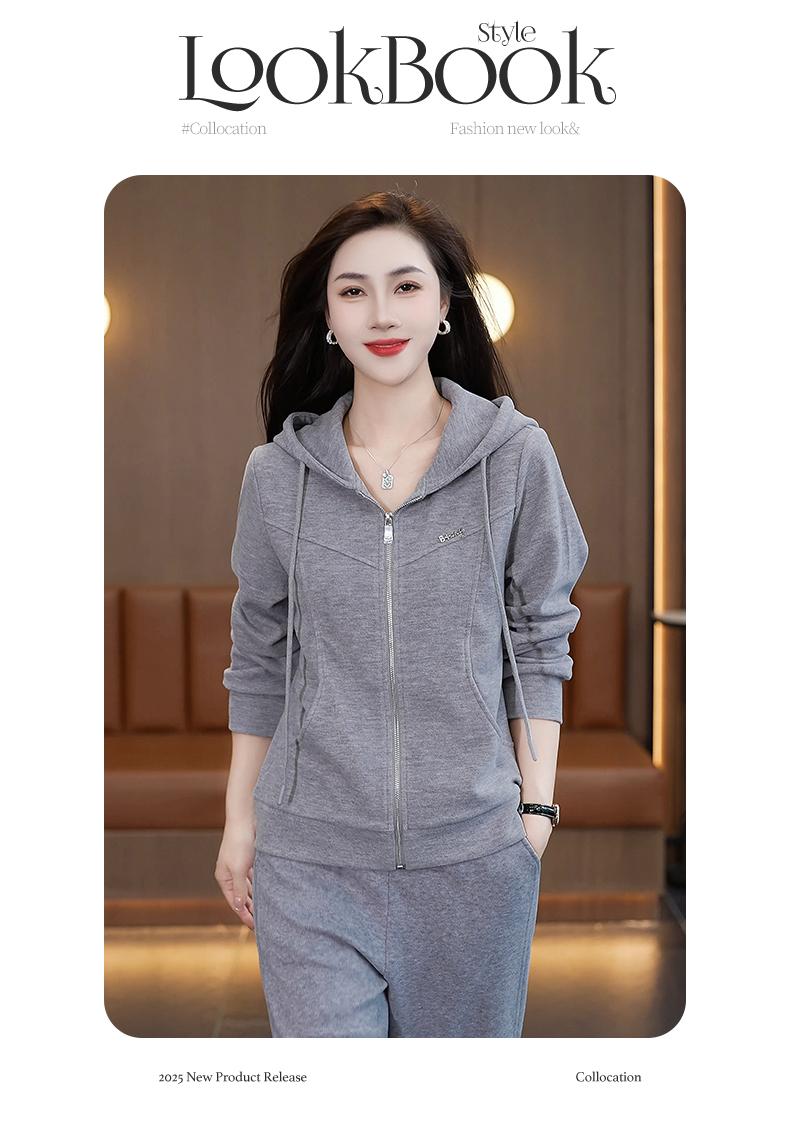 Conjunto de dos piezas para mujer, primavera y otoño 2025, nuevo, moderno y elegante, con cuello alto, sudadera casual tipo cárdigan, traje para correr