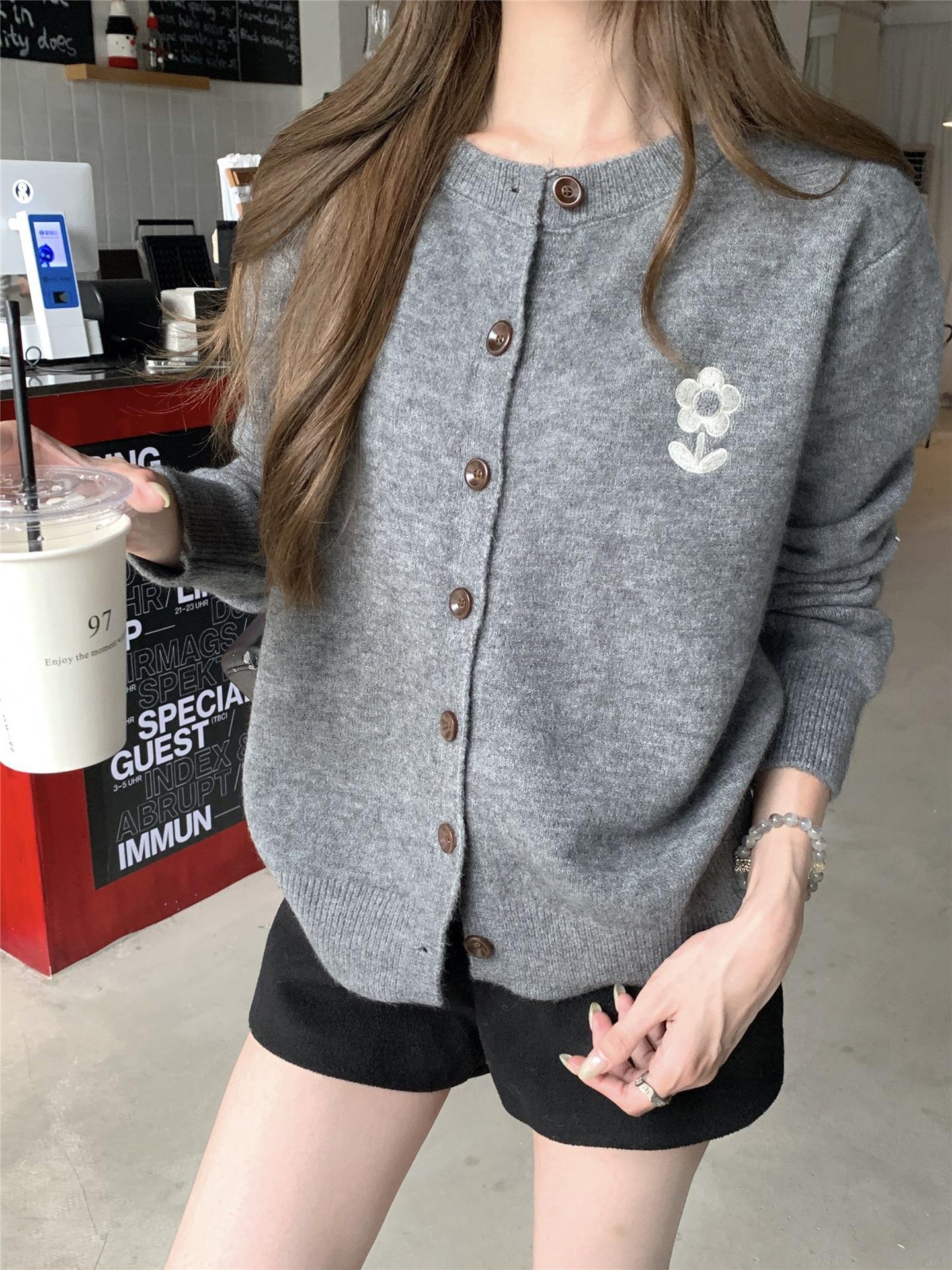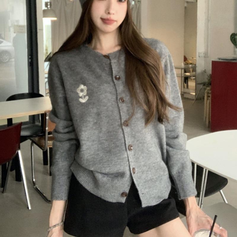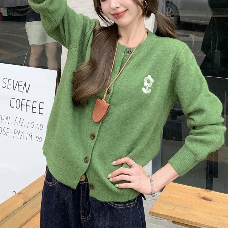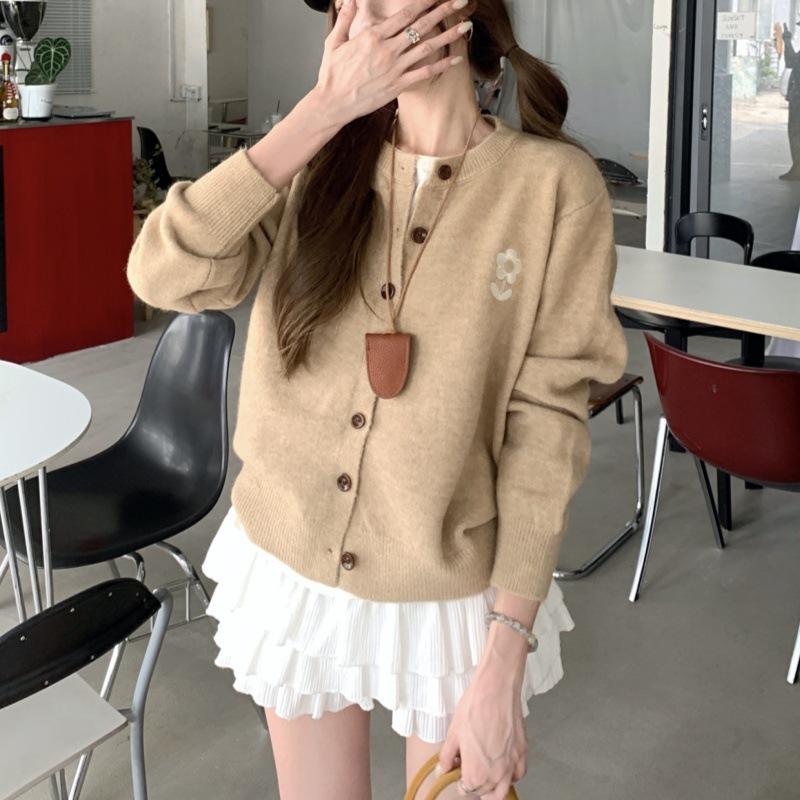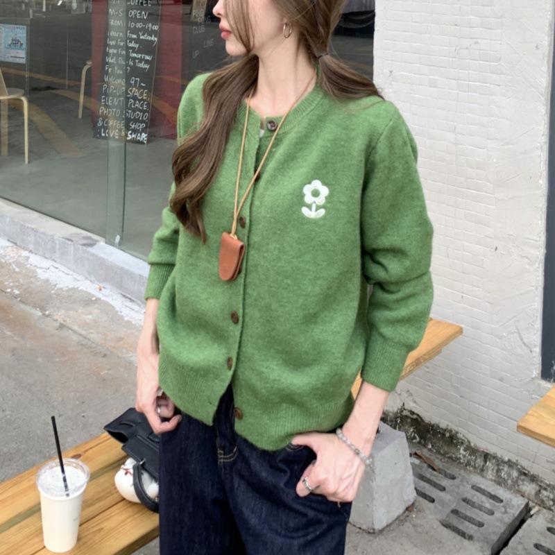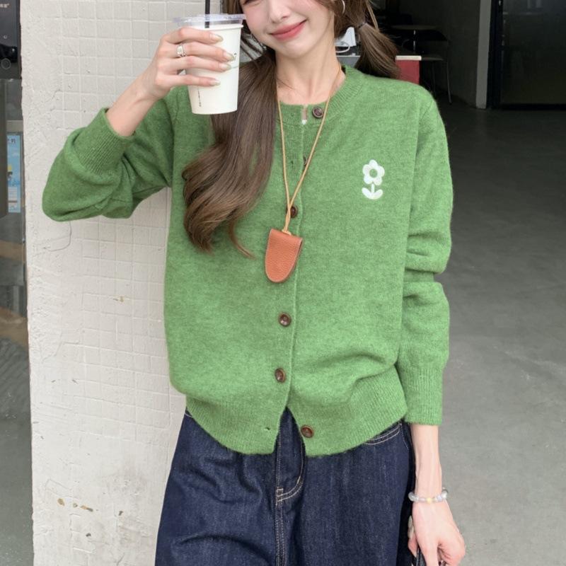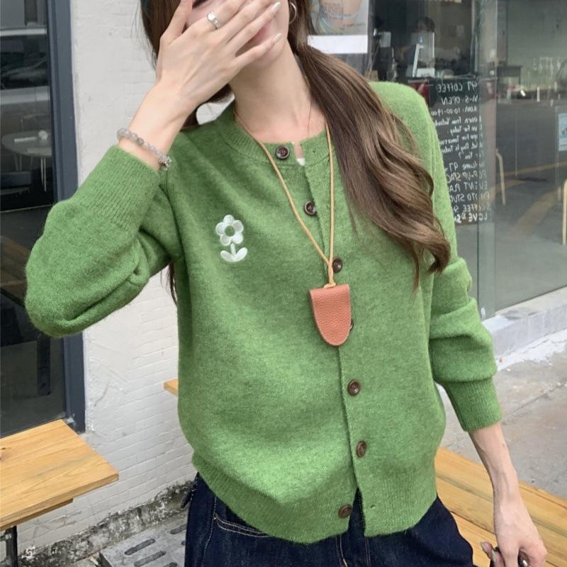 2025 Nueva Moda Otoño/Invierno Estilo Coreano Suéter de Cuello Redondo para Mujer Abrigo de Manga Larga de Gama Alta Bordado Cárdigan de Punto para Mujer