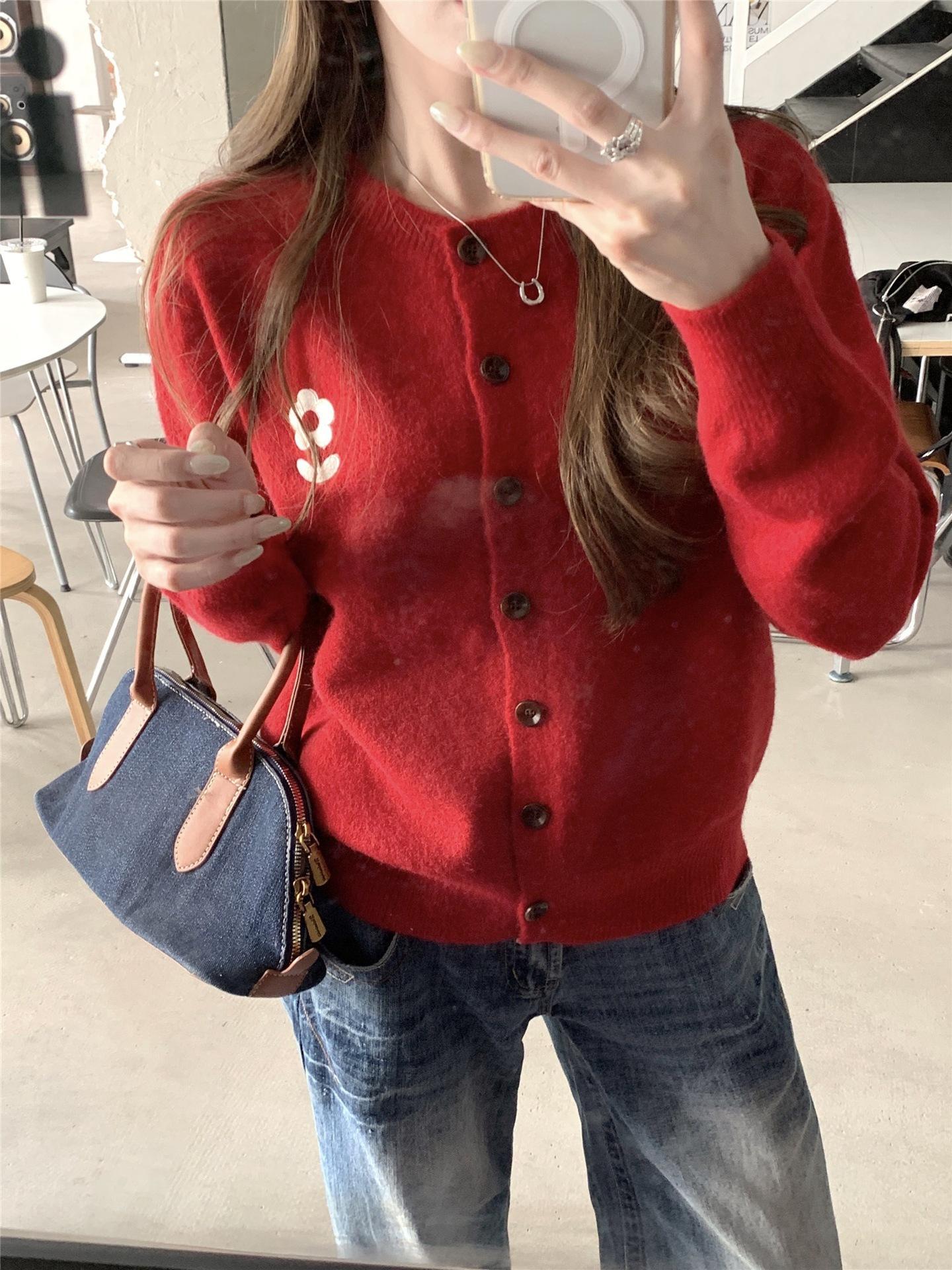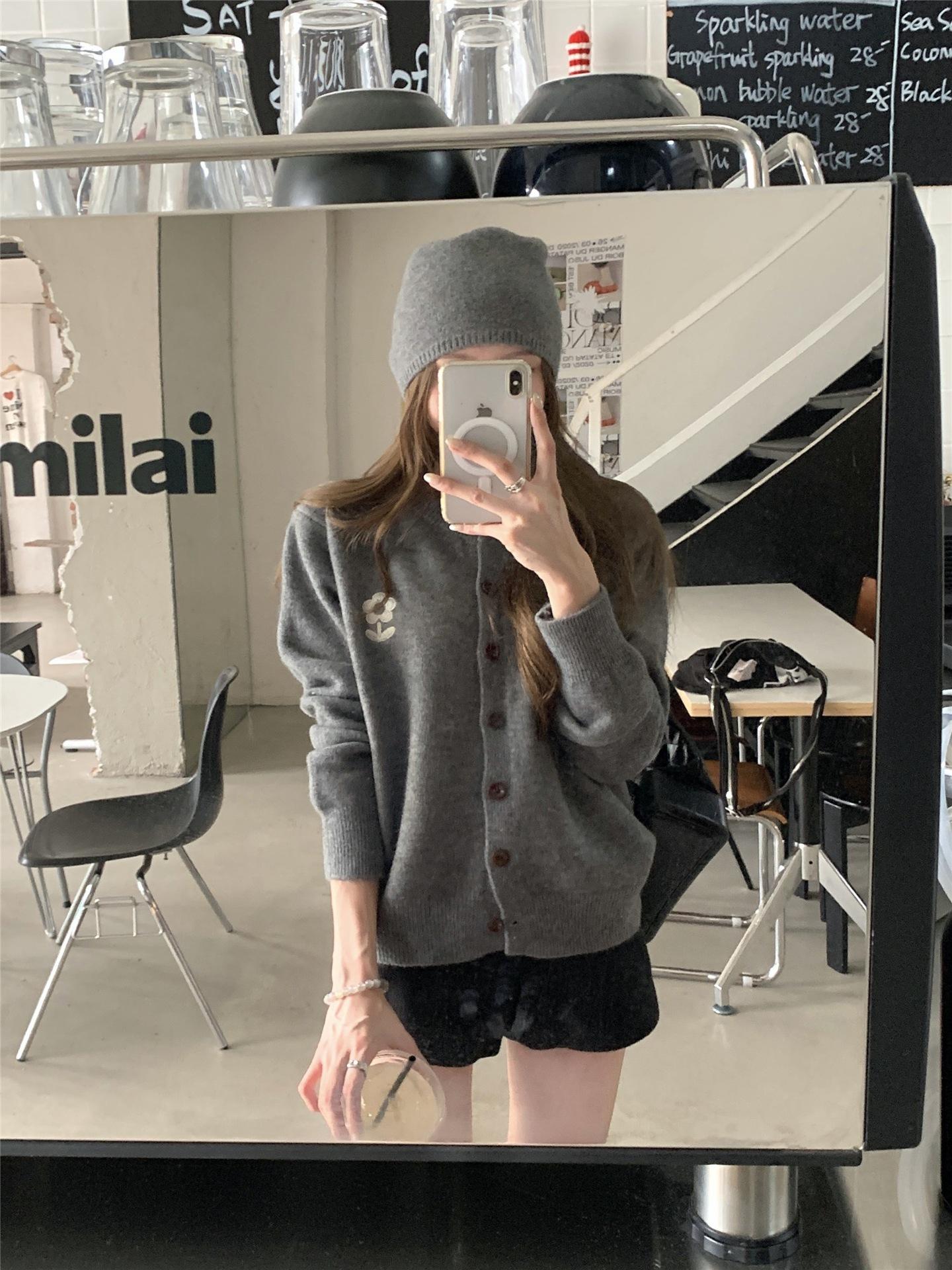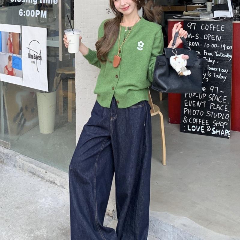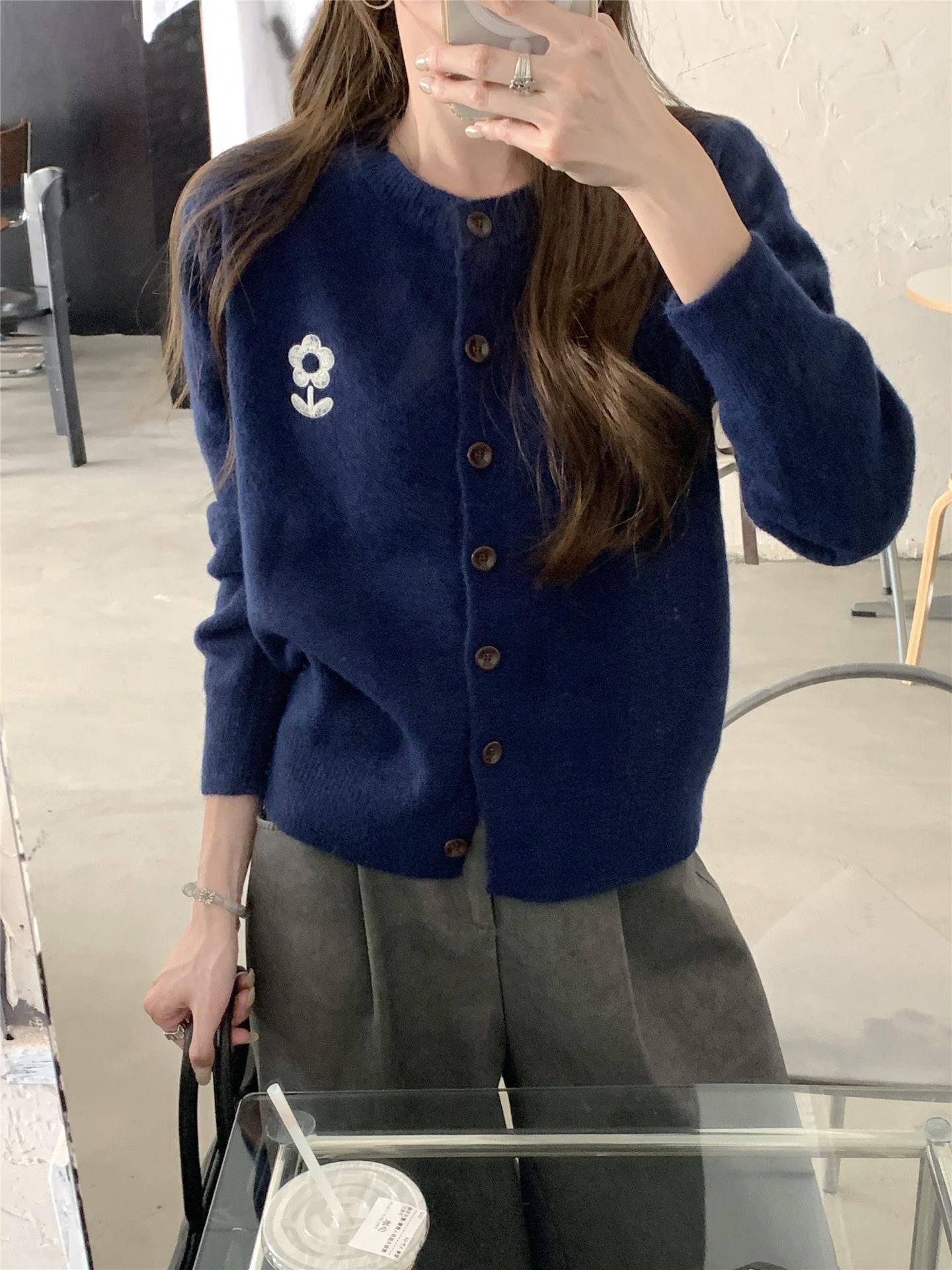 2025 Nueva Moda Otoño/Invierno Estilo Coreano Suéter de Cuello Redondo para Mujer Abrigo de Manga Larga de Gama Alta Bordado Cárdigan de Punto para Mujer