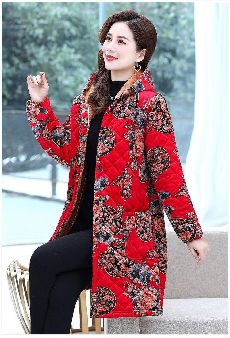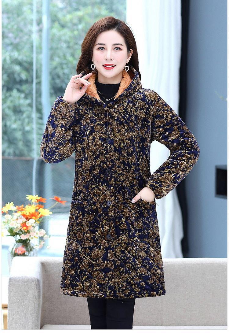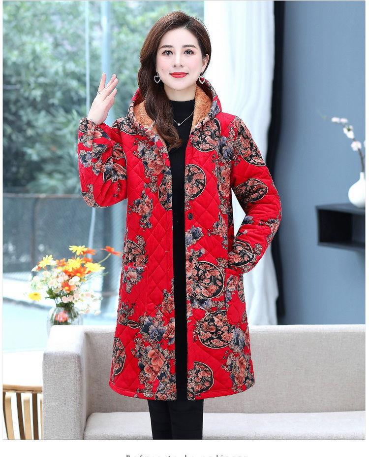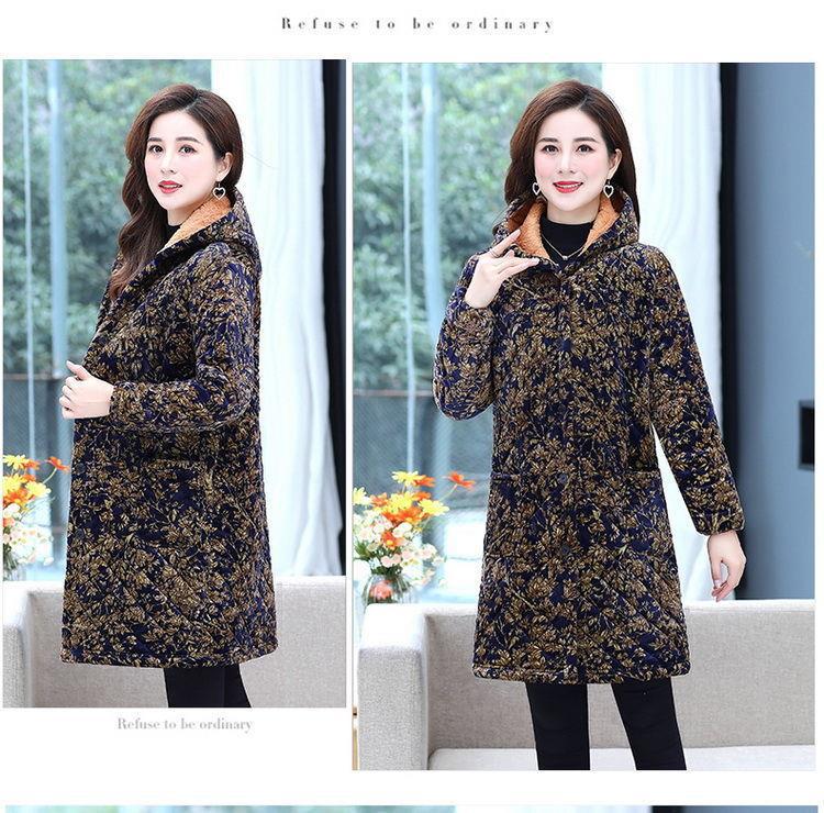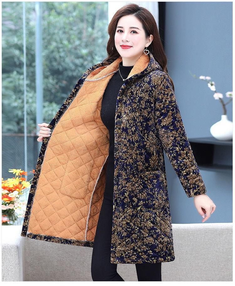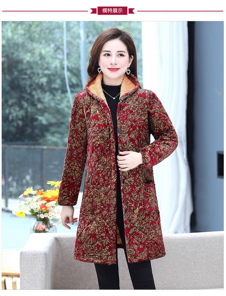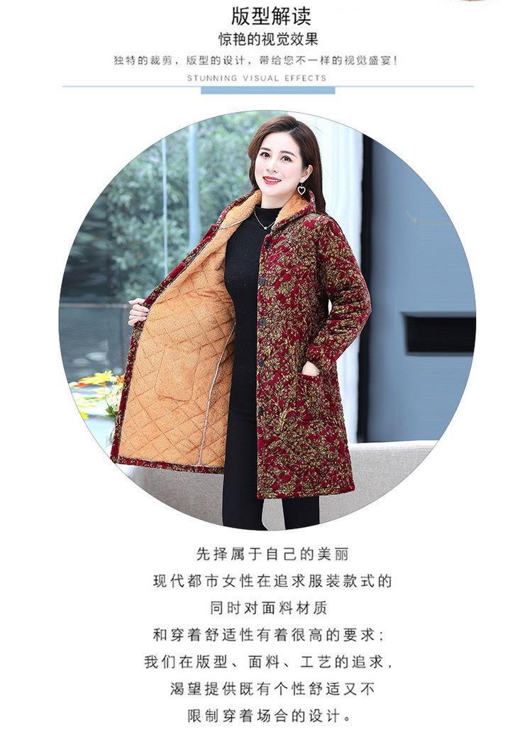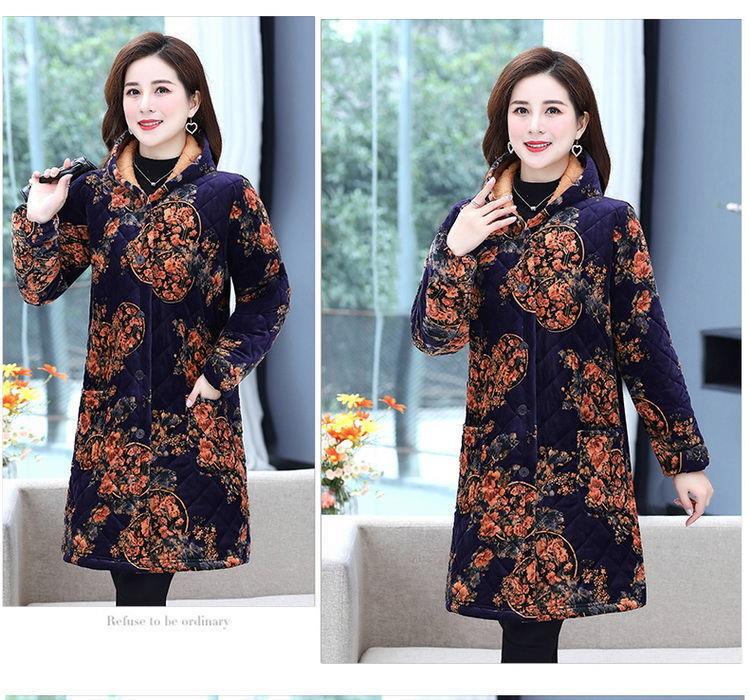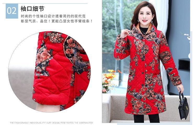 Ropa de otoño e invierno para mamá Chaqueta acolchada de algodón grueso con forro polar para mujer Chaqueta acolchada de algodón de longitud media para mujer de mediana edad y anciana de talla grande