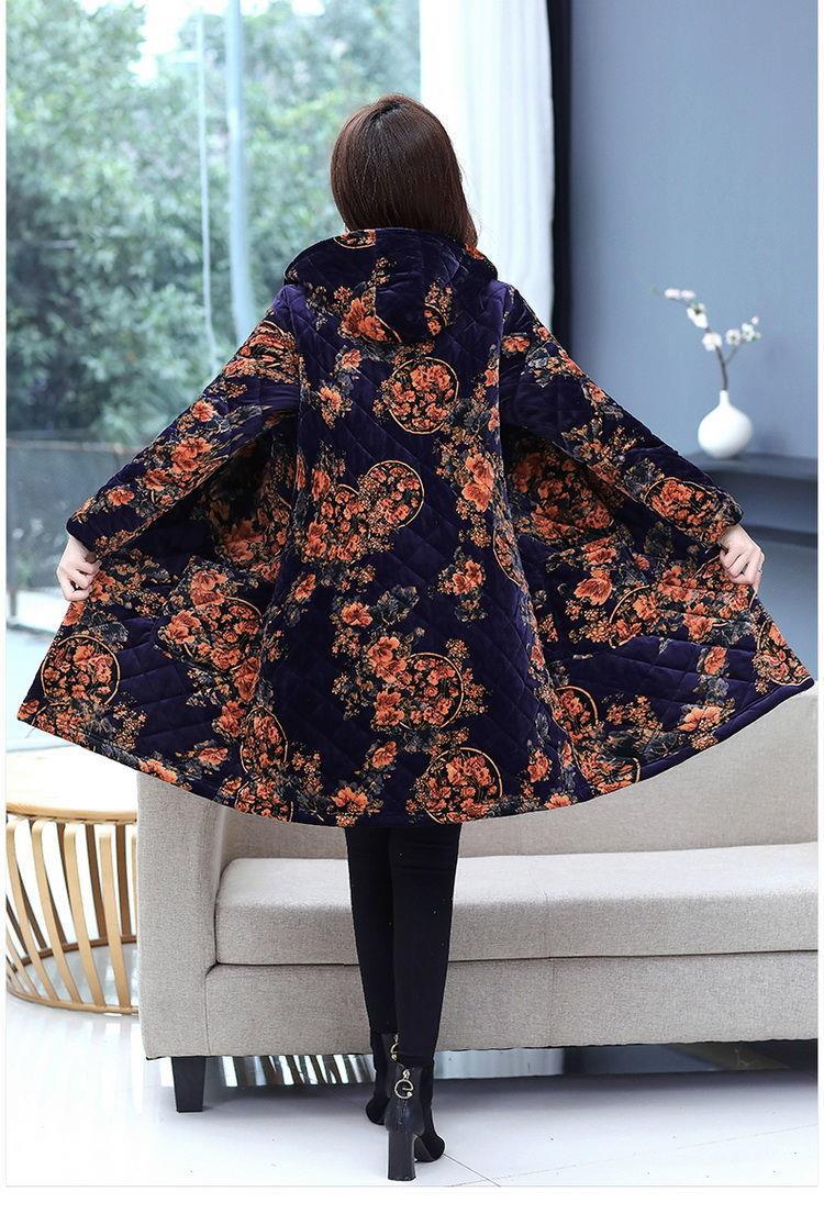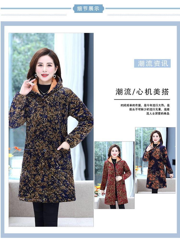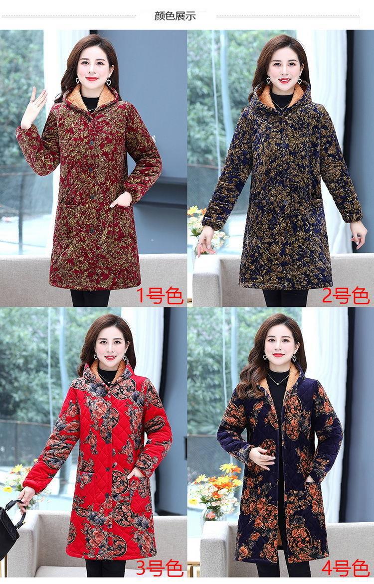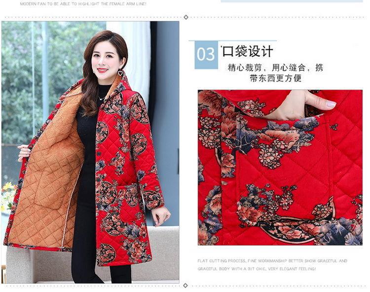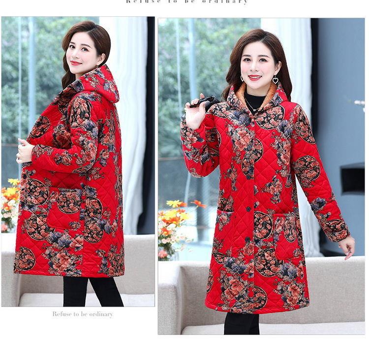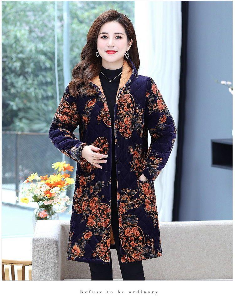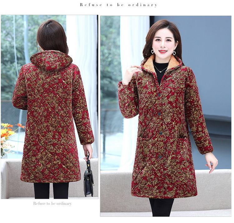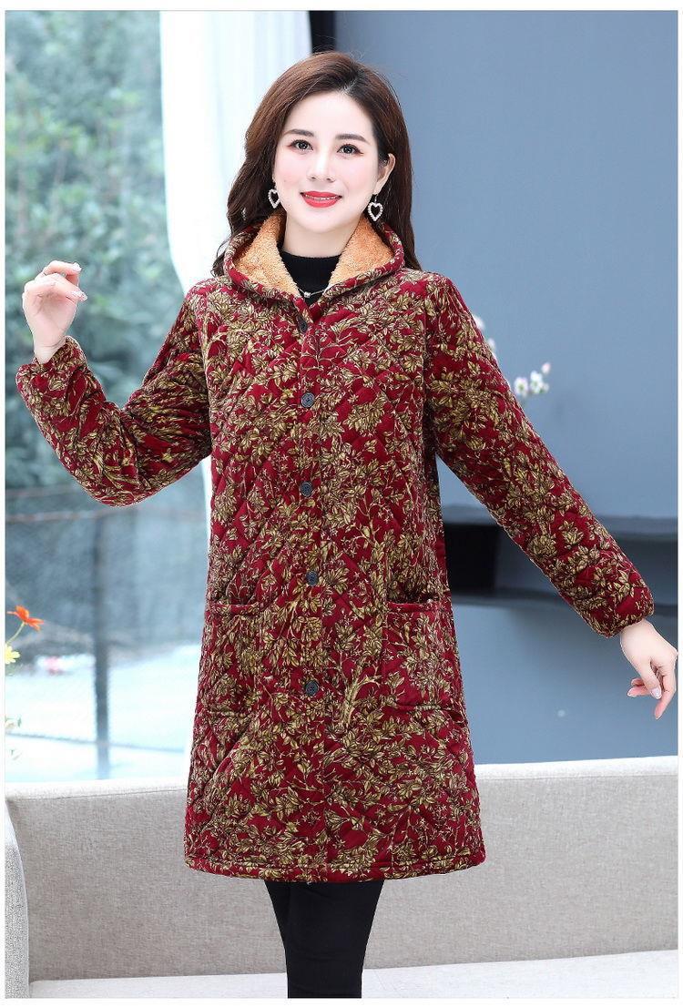 Ropa de otoño e invierno para mamá Chaqueta acolchada de algodón grueso con forro polar para mujer Chaqueta acolchada de algodón de longitud media para mujer de mediana edad y anciana de talla grande