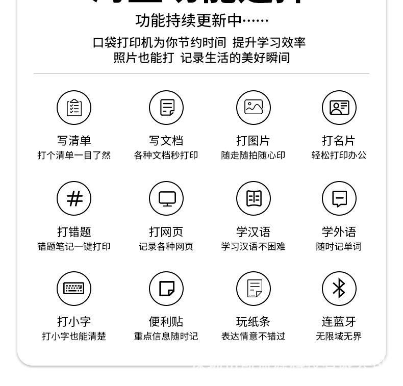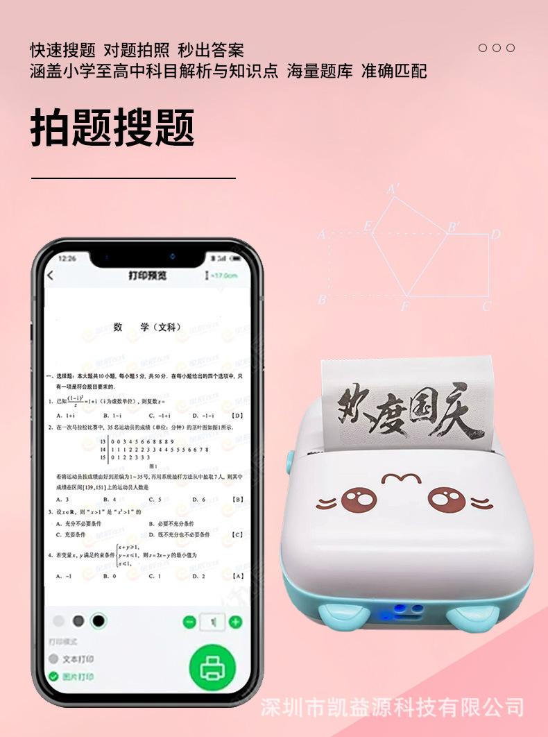 Mini Impresora de Bolsillo para Estudiantes Etiqueta de Pregunta Incorrecta Imagen Autoadhesiva Portátil Oficina Estudio Impresora Térmica