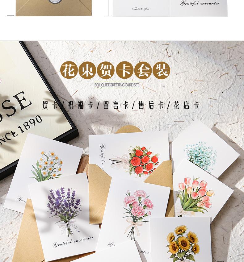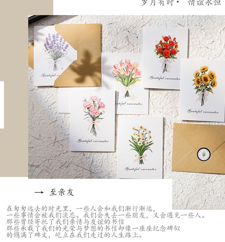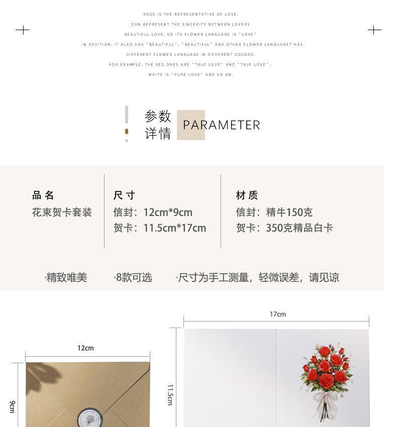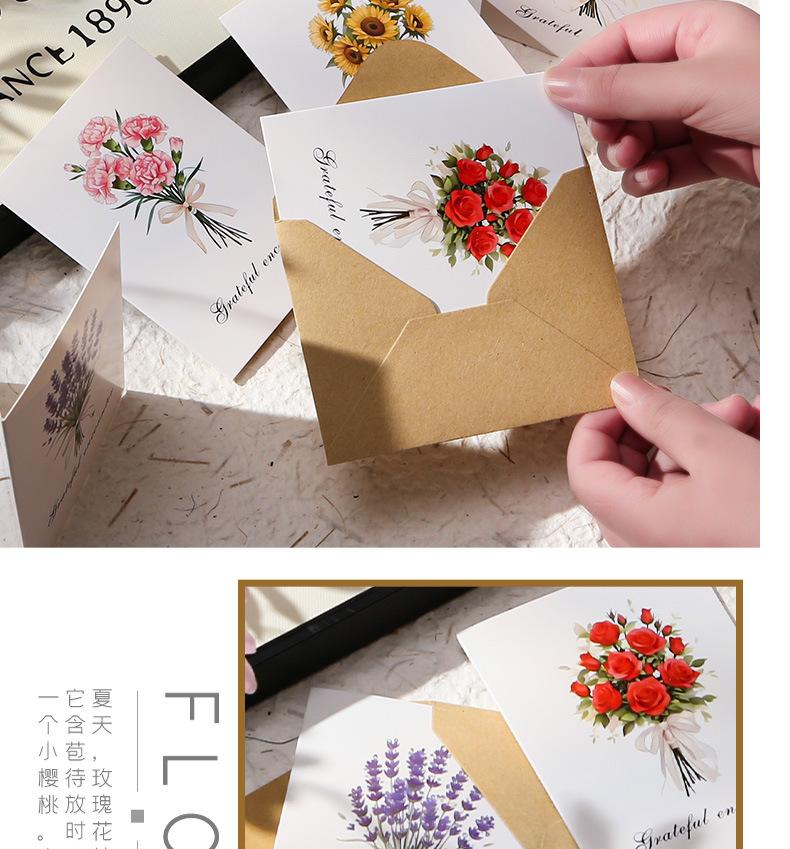 Nuevo Sobre de Tarjeta de Felicitación de Ramo de Flores de Alta Gama Bendición Gracias Madre Día de San Valentín Navidad Cumpleaños Tarjeta de Mensaje Plegada