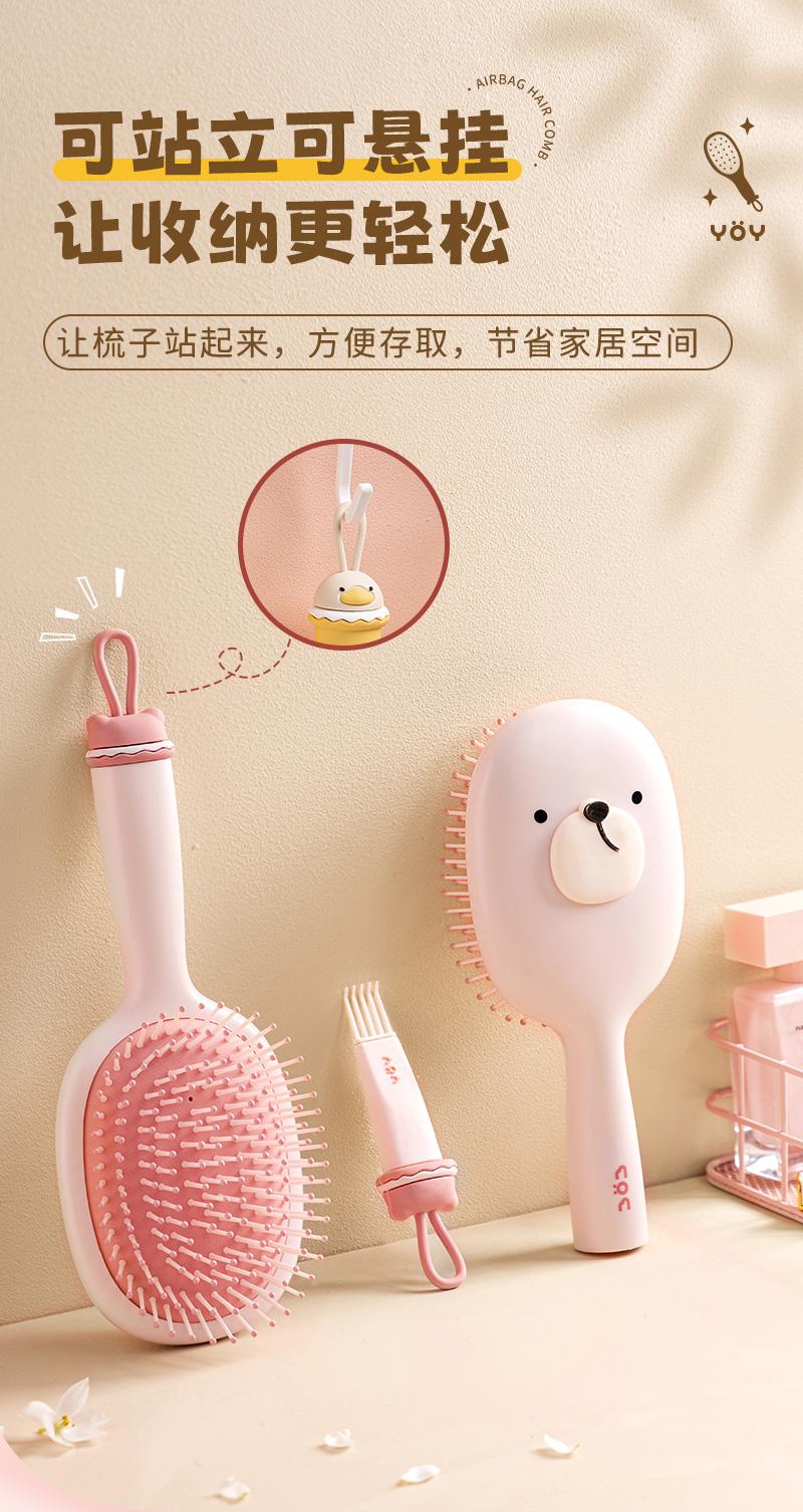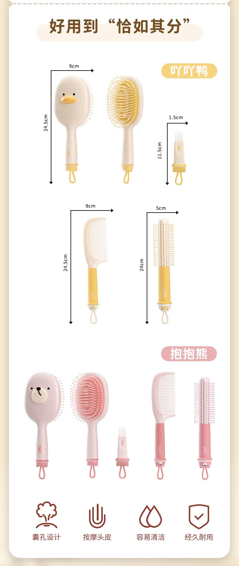 [acridine duck] yellow-air cushion comb with cleaning brush, [hug bear] pink-air cushion comb with cleaning br...
