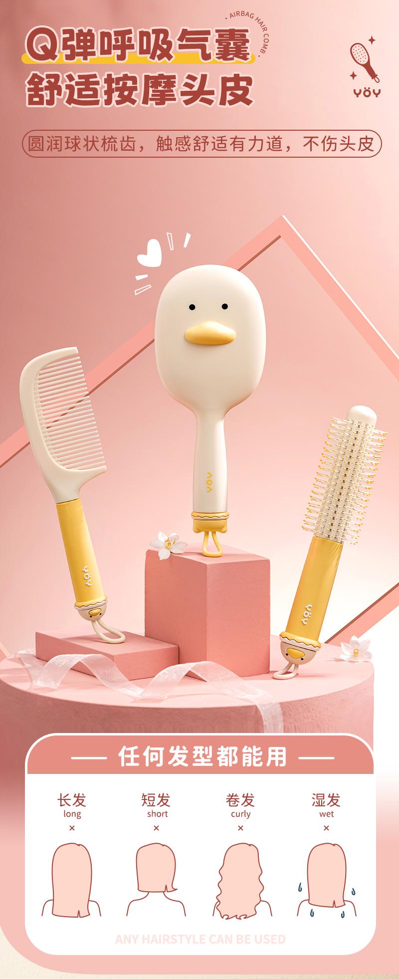 [acridine duck] yellow-air cushion comb with cleaning brush