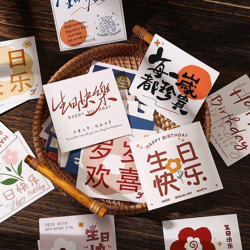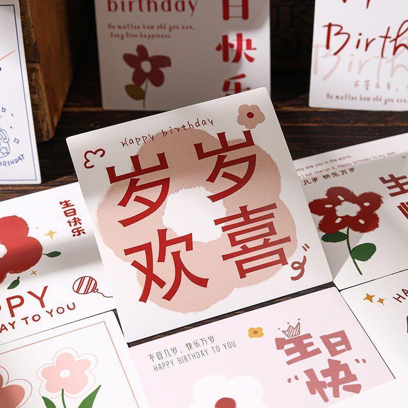Tarjeta de felicitación de cumpleaños cuadrada de alto sentido florería ramo pastel tarjeta pequeña simple regalo flores tarjeta escrita a mano