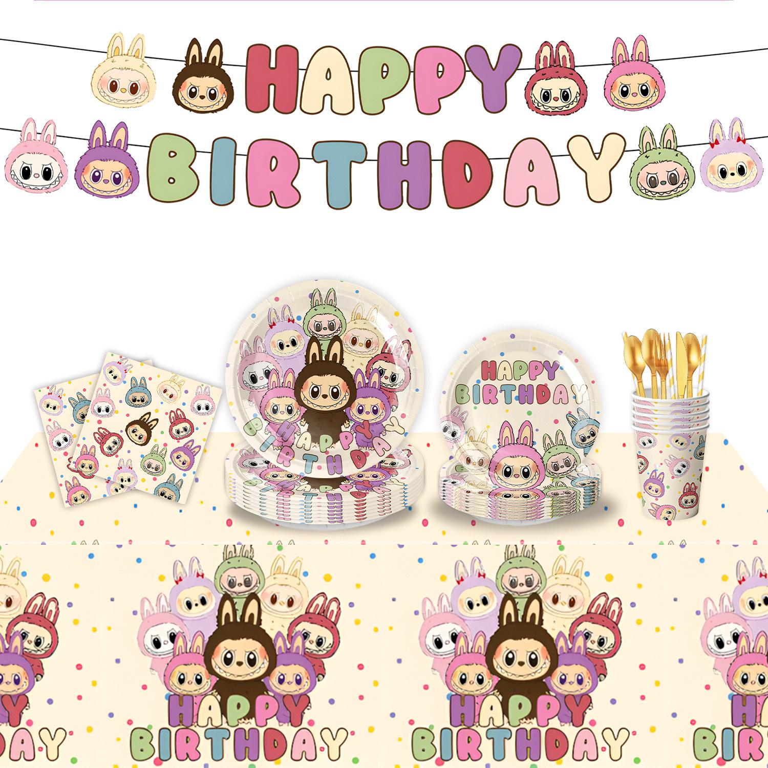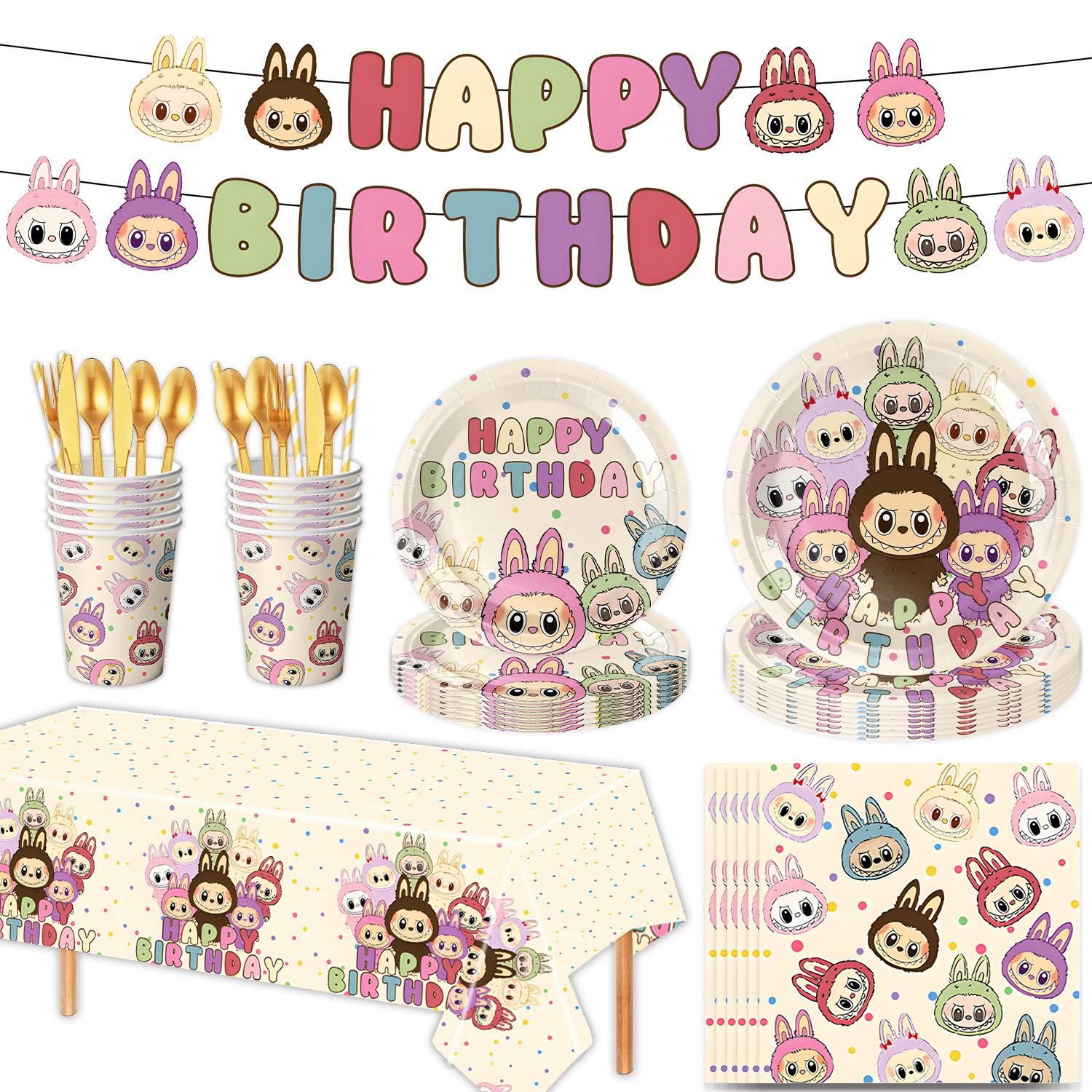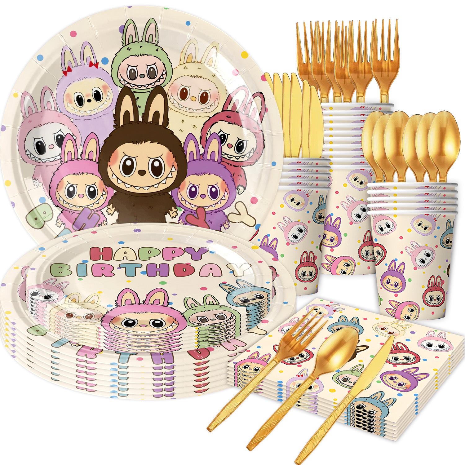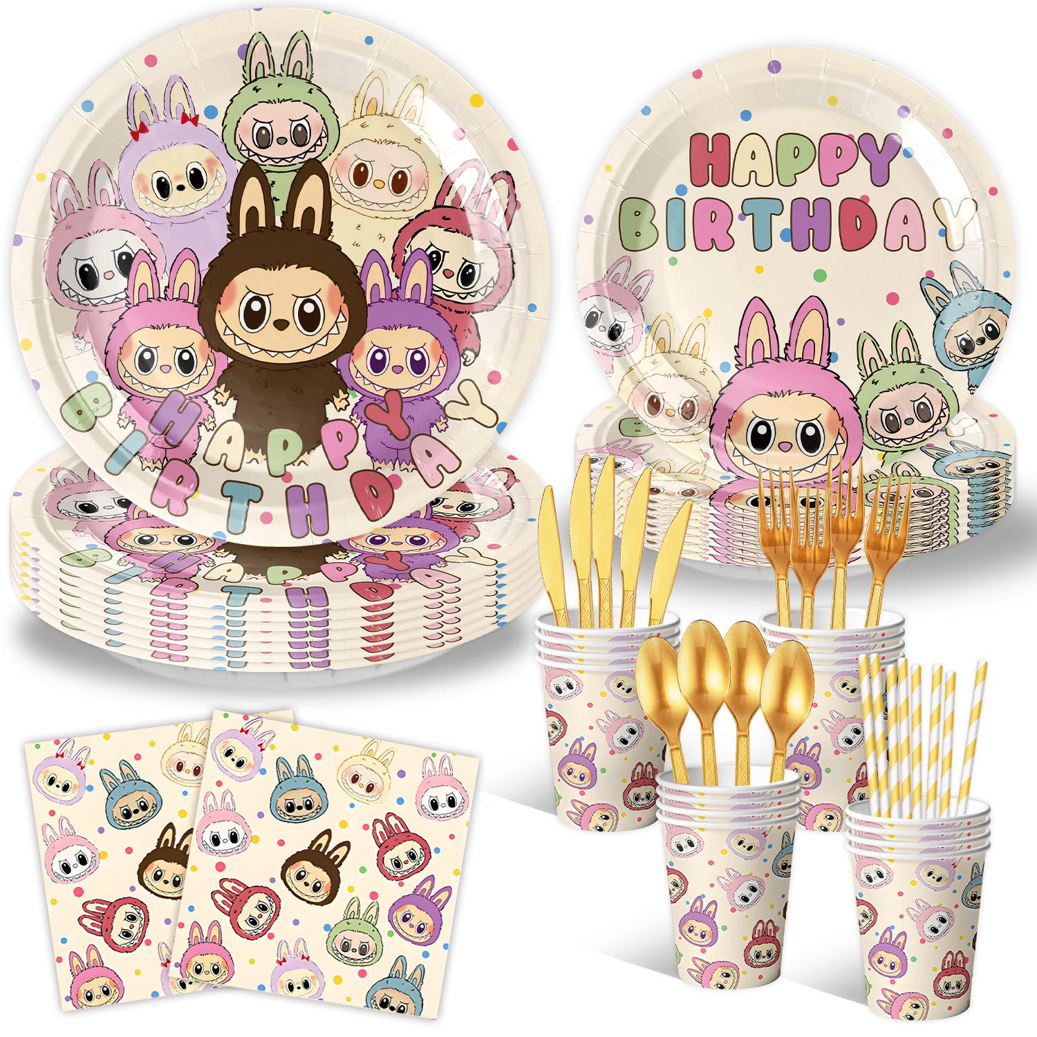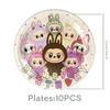 Nuevo Dibujo Animado Transfronterizo Labubu Vajilla de Fiesta Decoración de Cumpleaños para Niños Mantel Desechable Plato de Papel Suministros para Montaje
