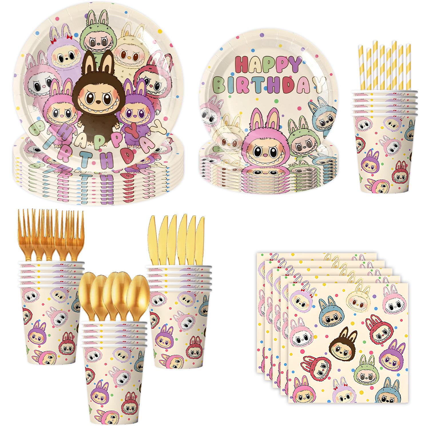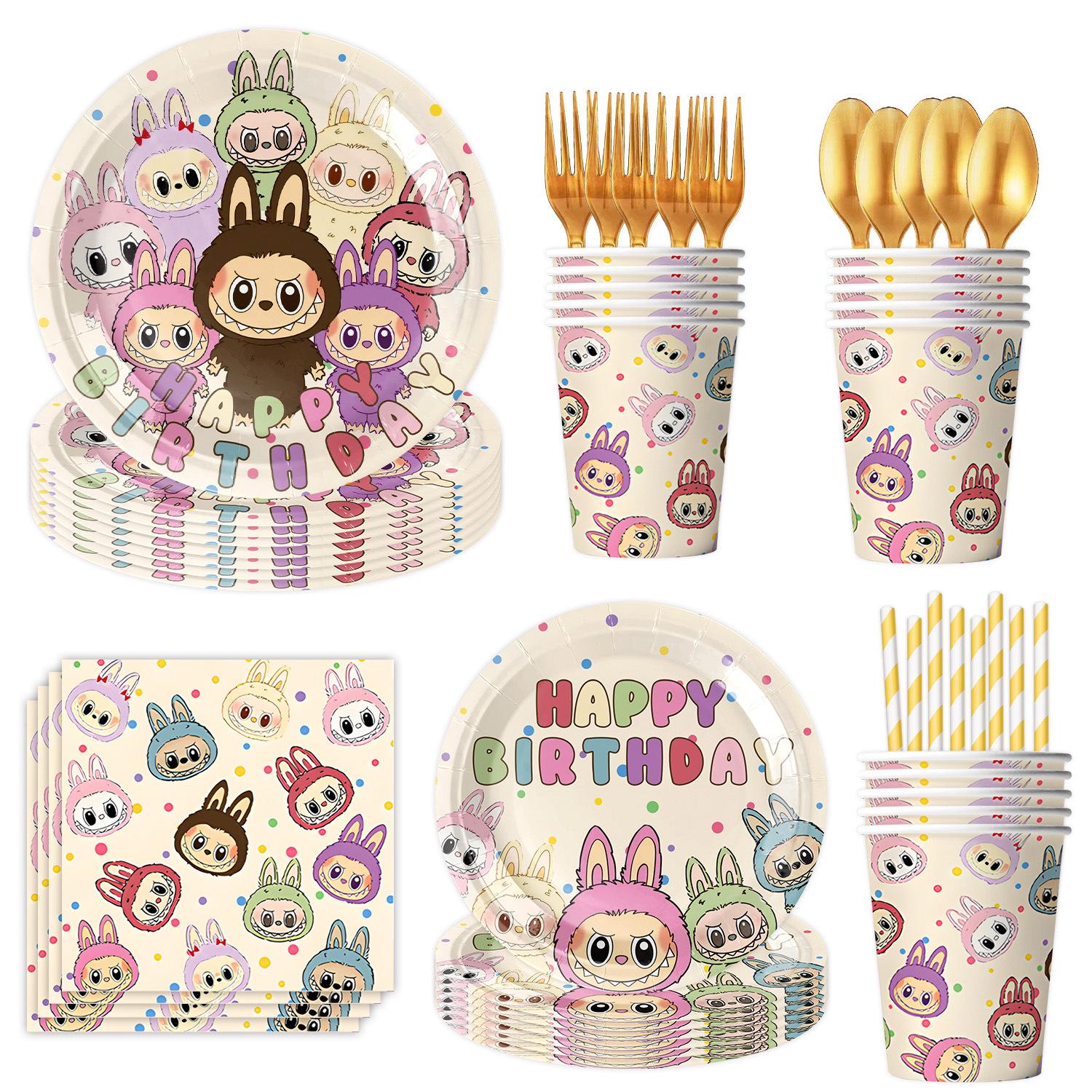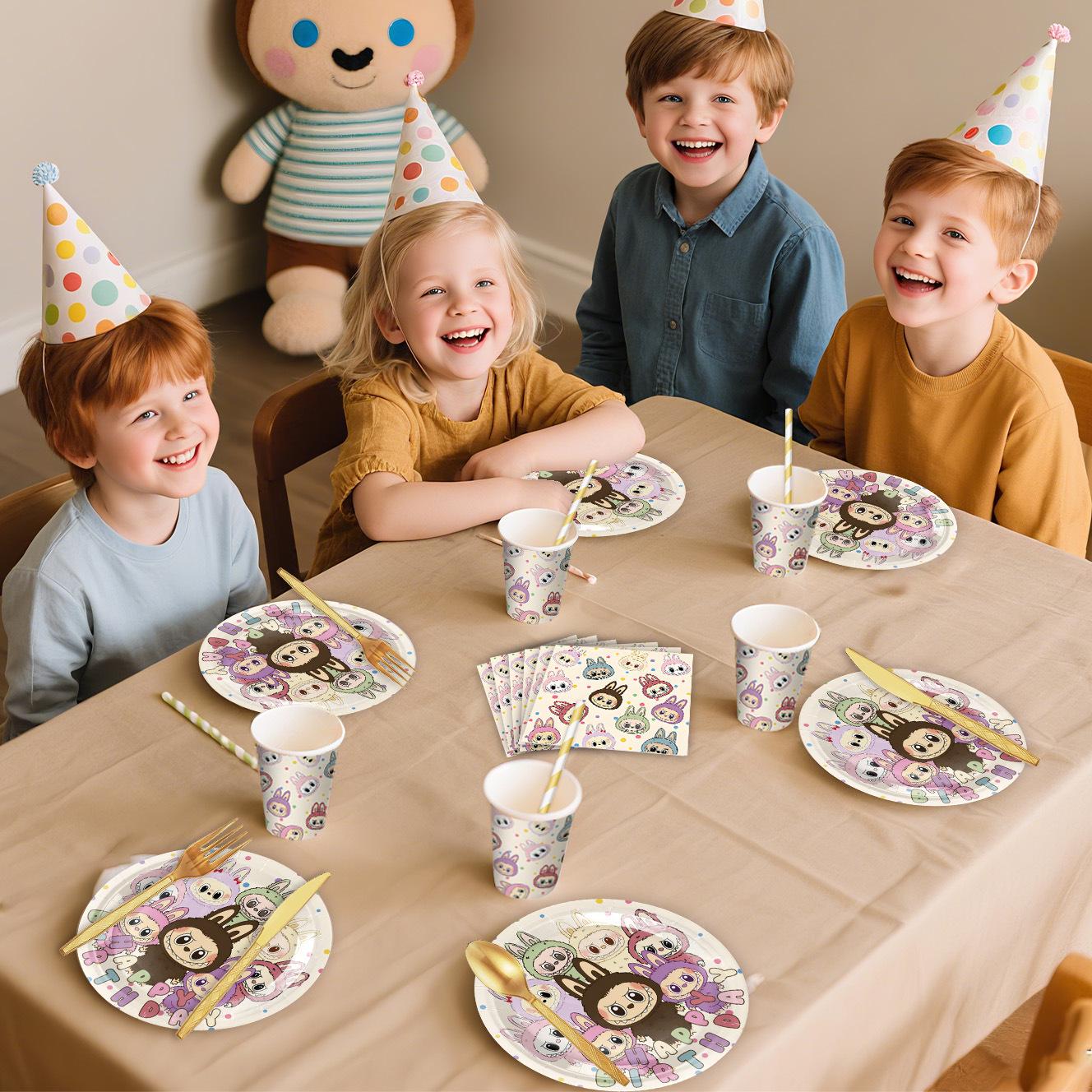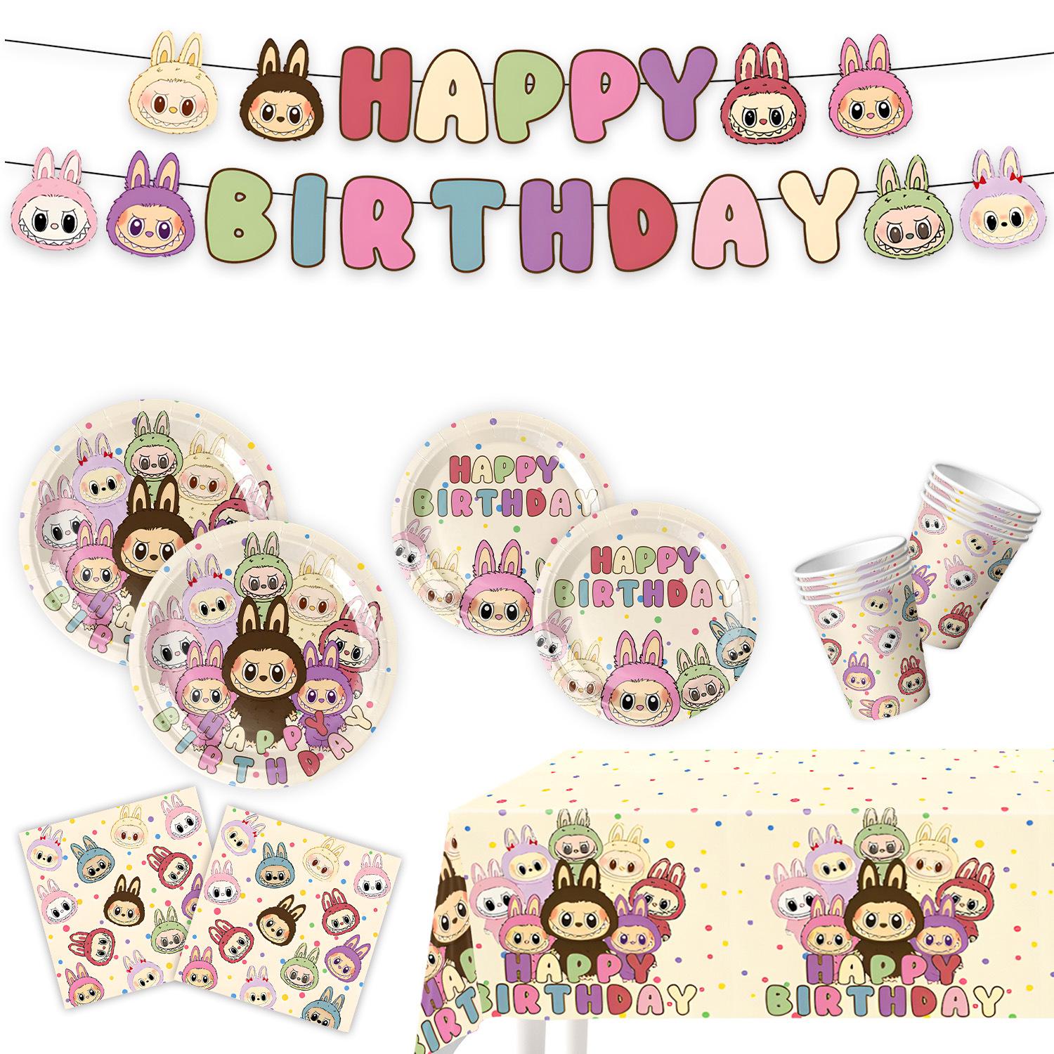 Nuevo Dibujo Animado Transfronterizo Labubu Vajilla de Fiesta Decoración de Cumpleaños para Niños Mantel Desechable Plato de Papel Suministros para Montaje