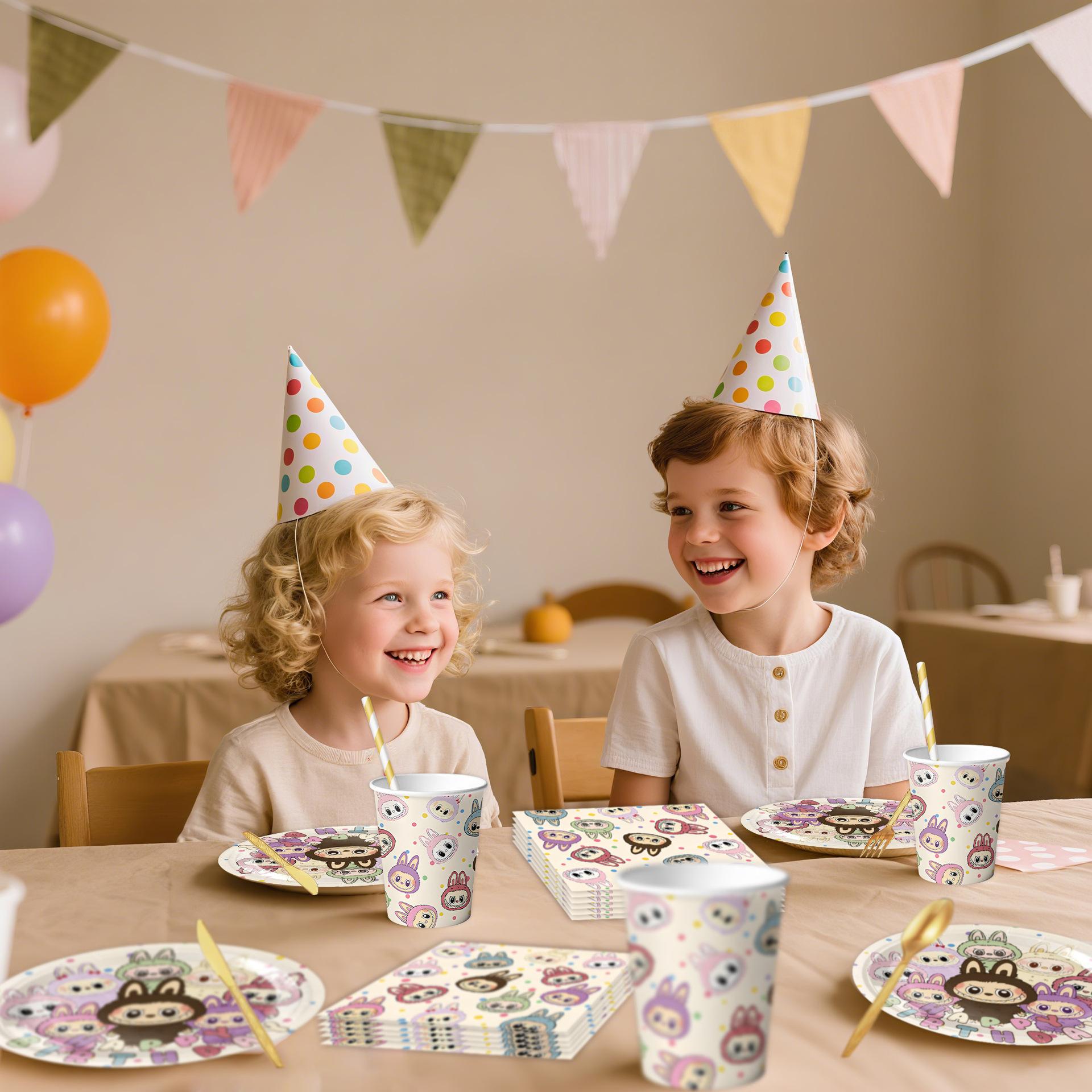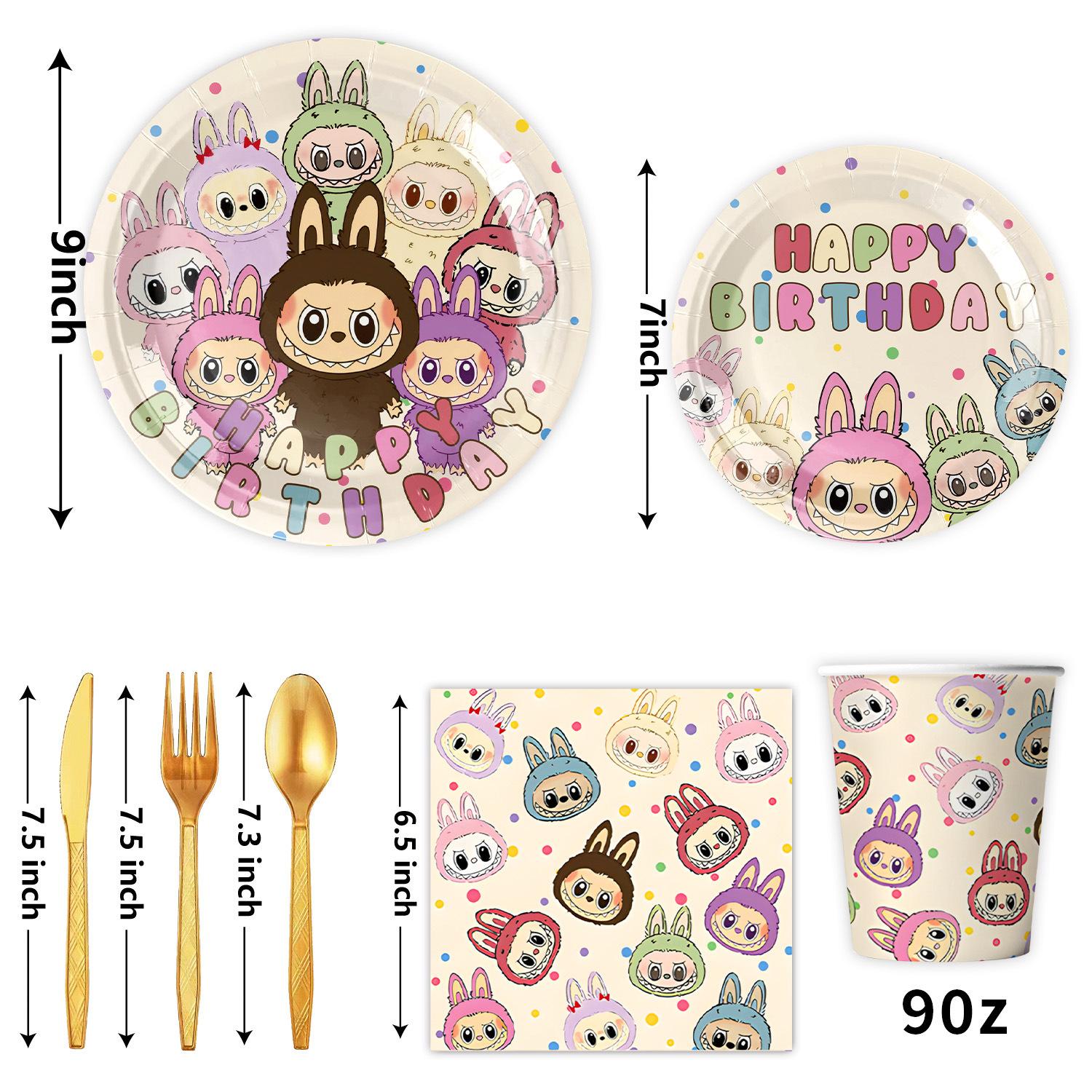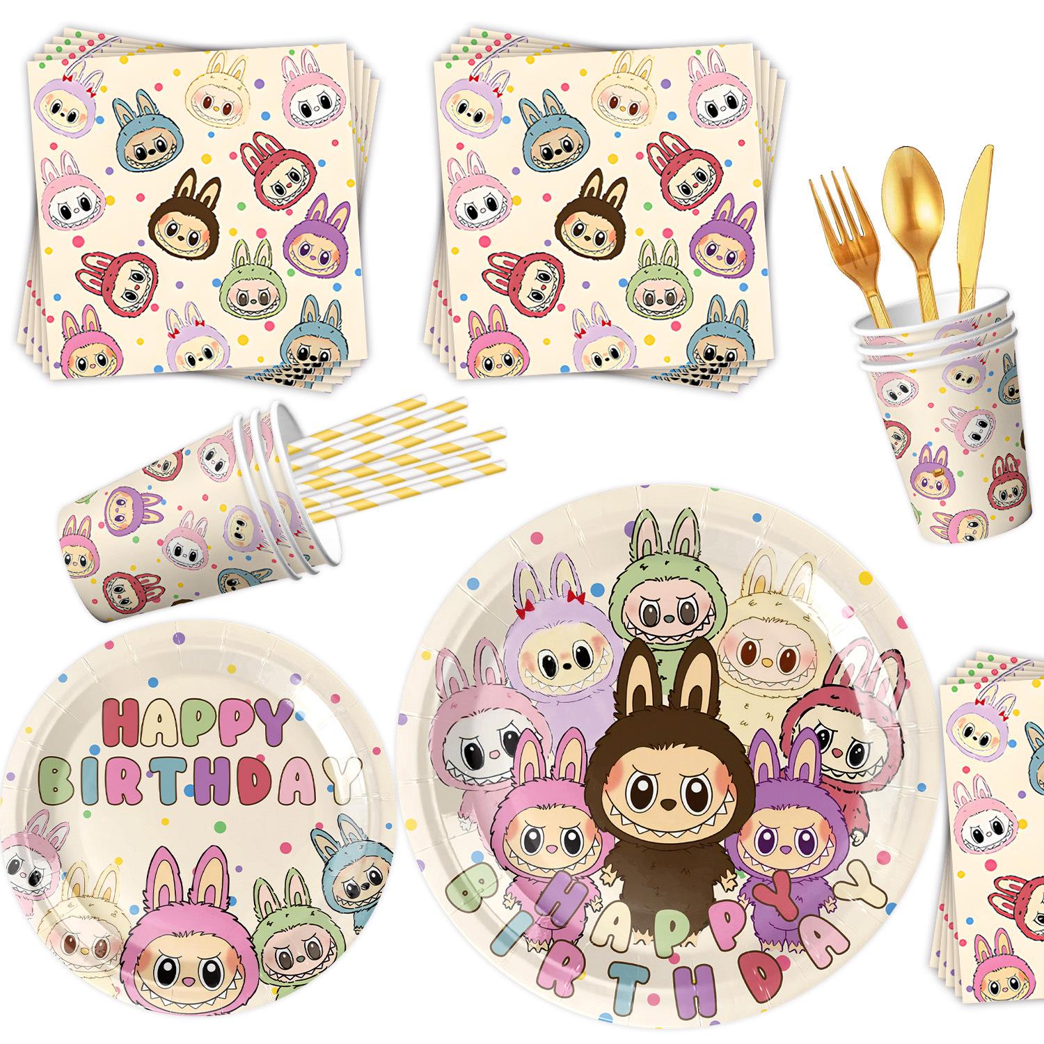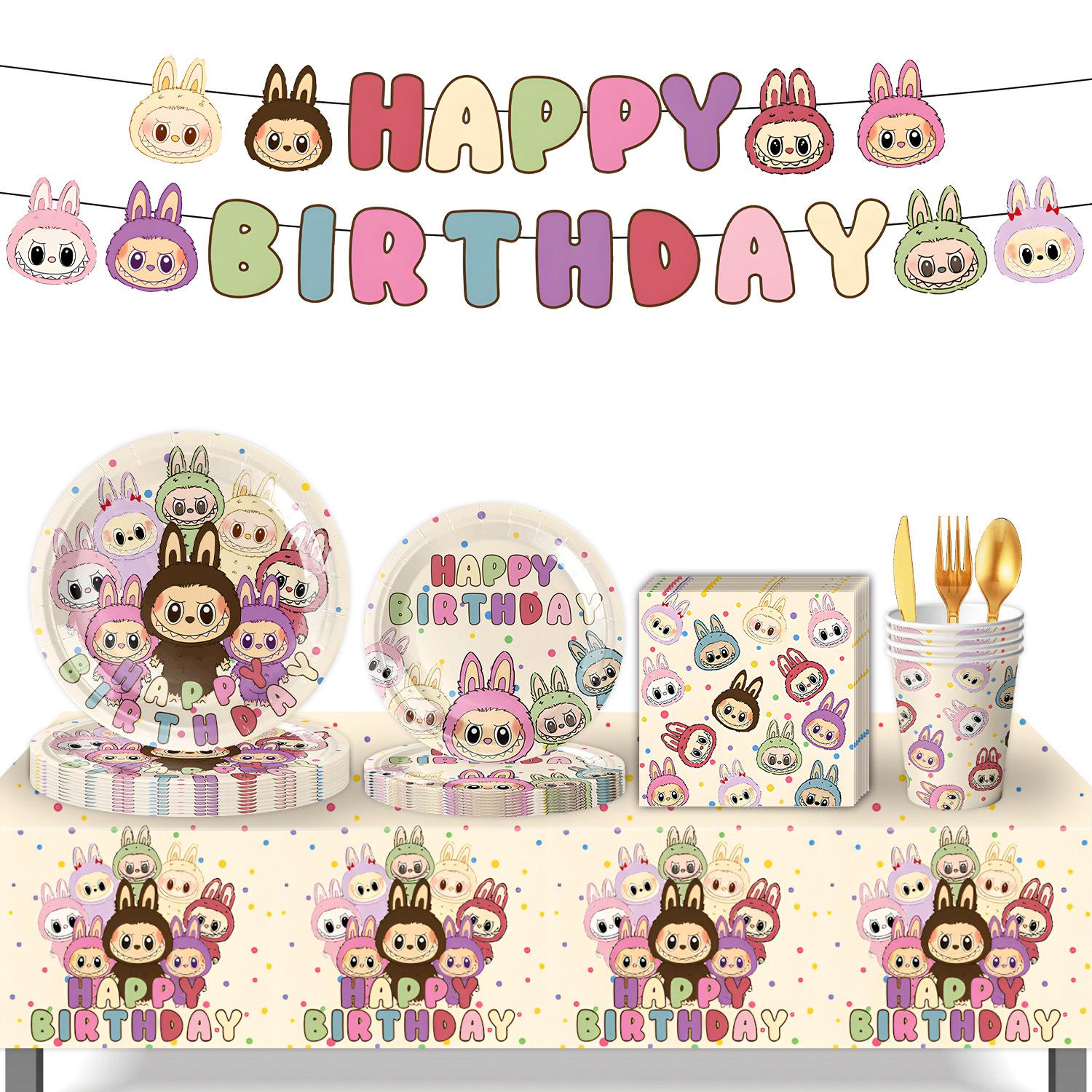 Nuevo Dibujo Animado Transfronterizo Labubu Vajilla de Fiesta Decoración de Cumpleaños para Niños Mantel Desechable Plato de Papel Suministros para Montaje