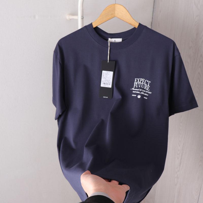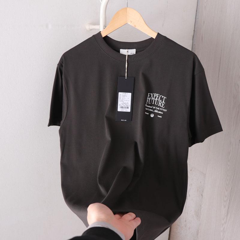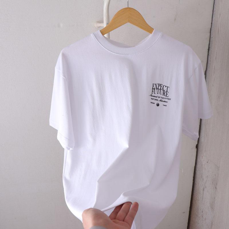 Nueva camiseta de estilo americano con estampado de letras lavadas, holgada, casual, de cuello redondo, manga corta para hombre, verano, blanca