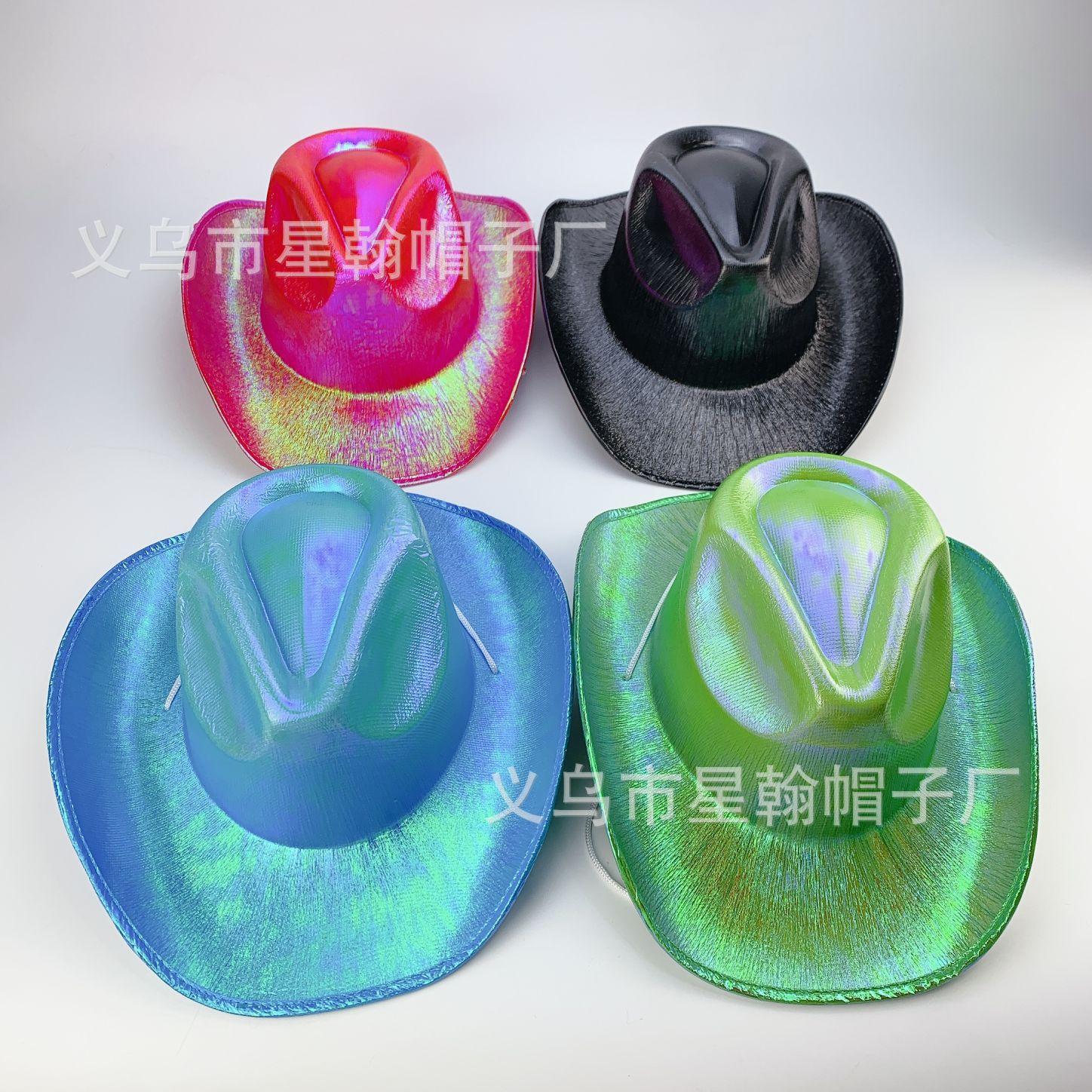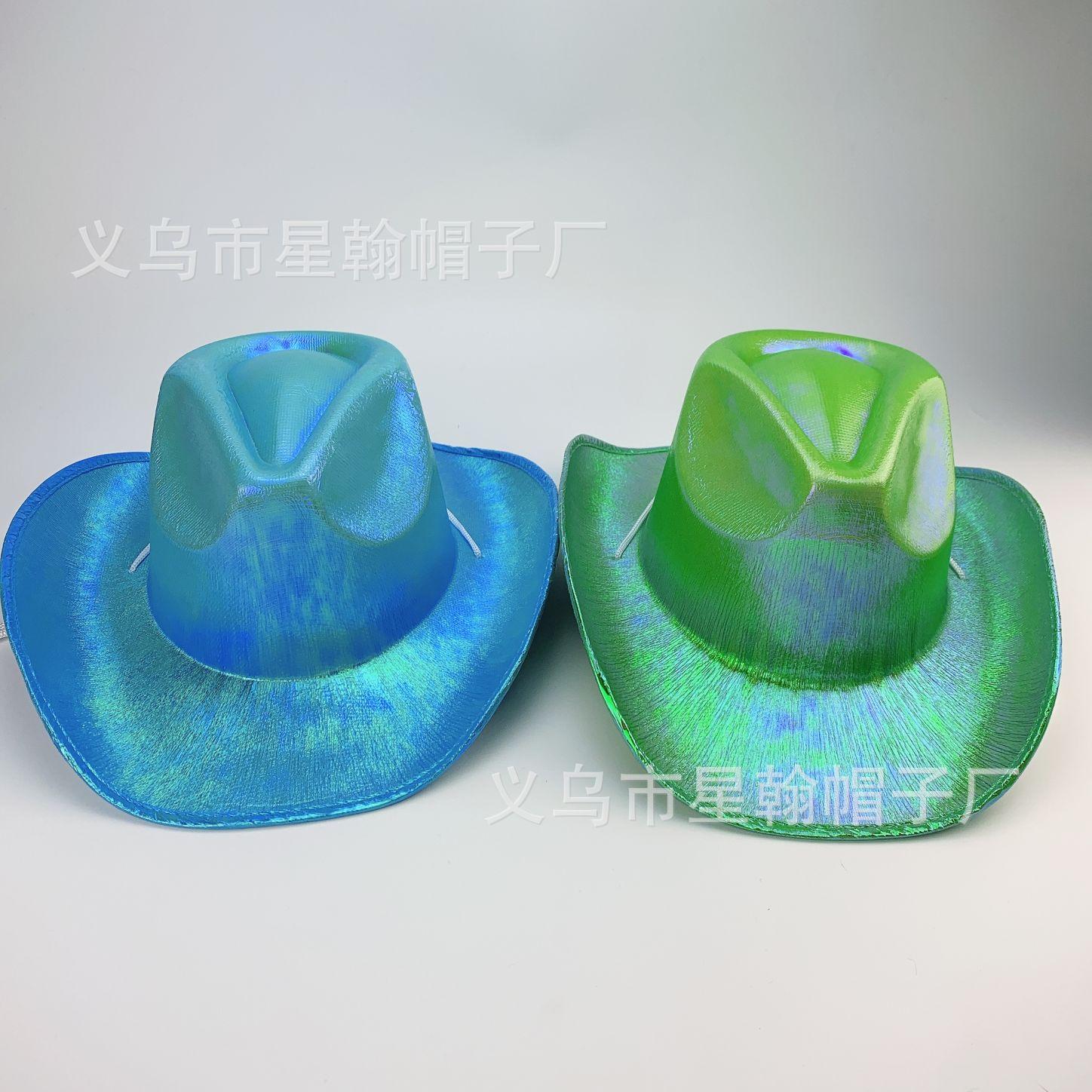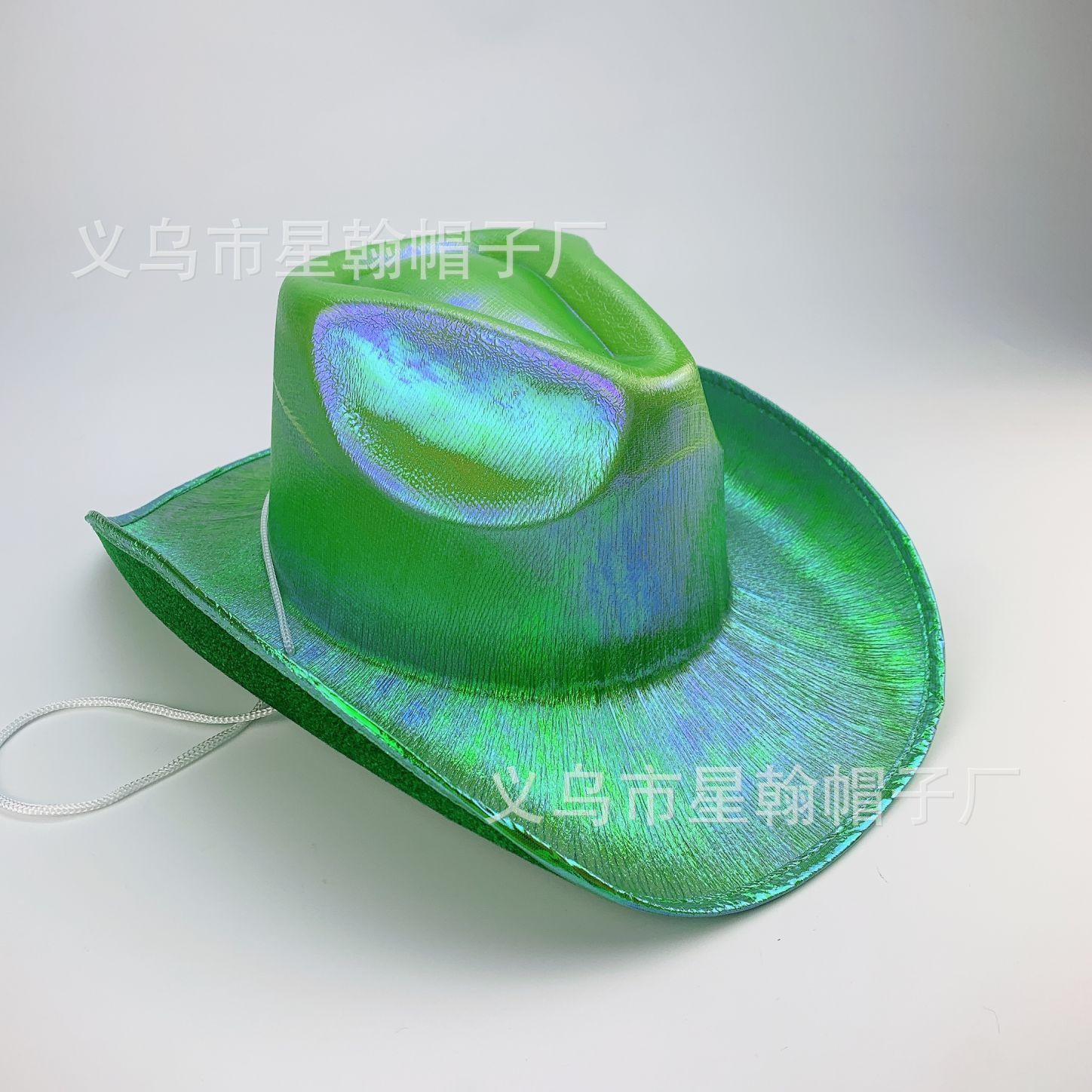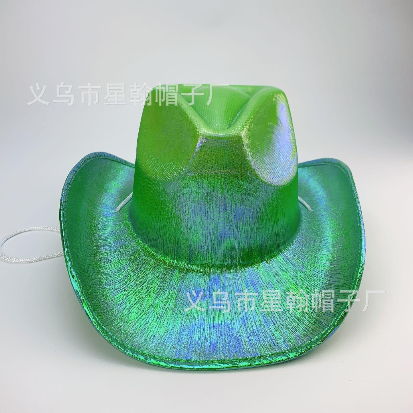 Sombrero de Vaquero Occidental Iridiscente Verde Compuesto EVA Halloween Carnaval Fiesta Perlescente Deslumbrante Sombrero Fabricante Venta al por Mayor