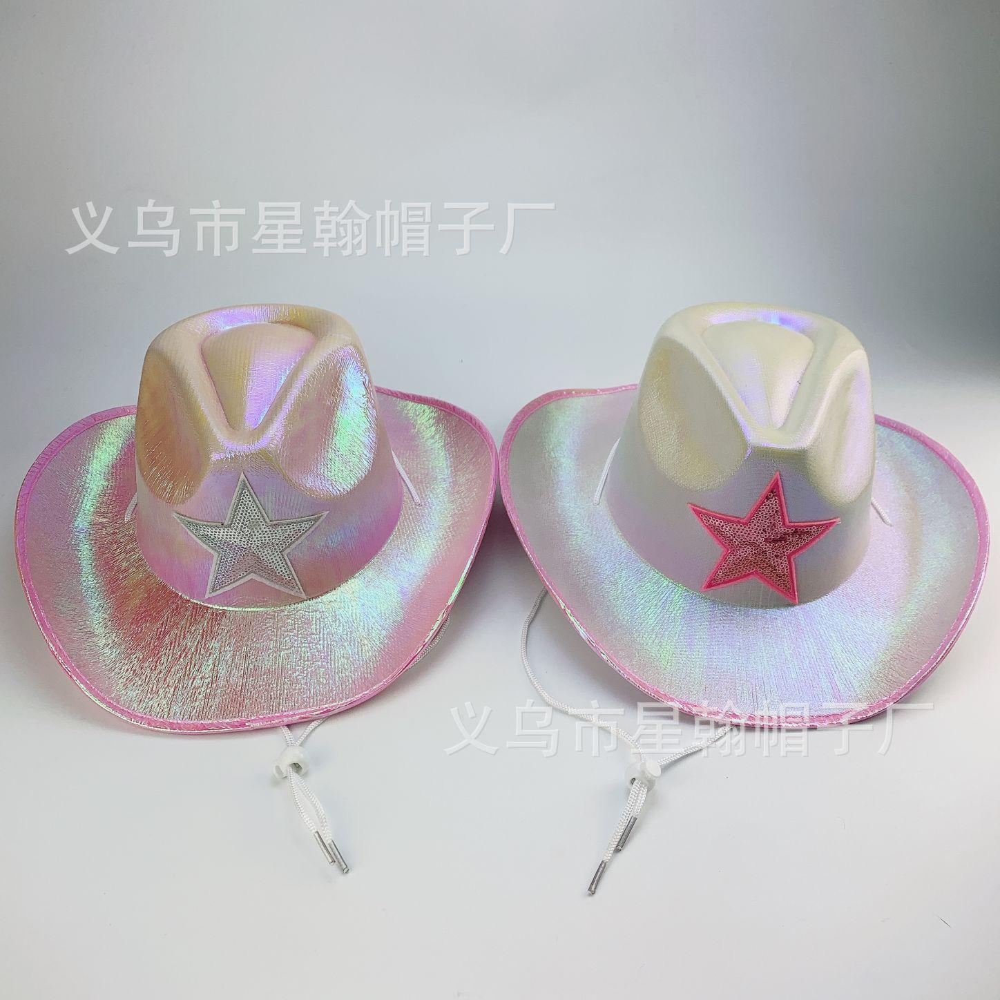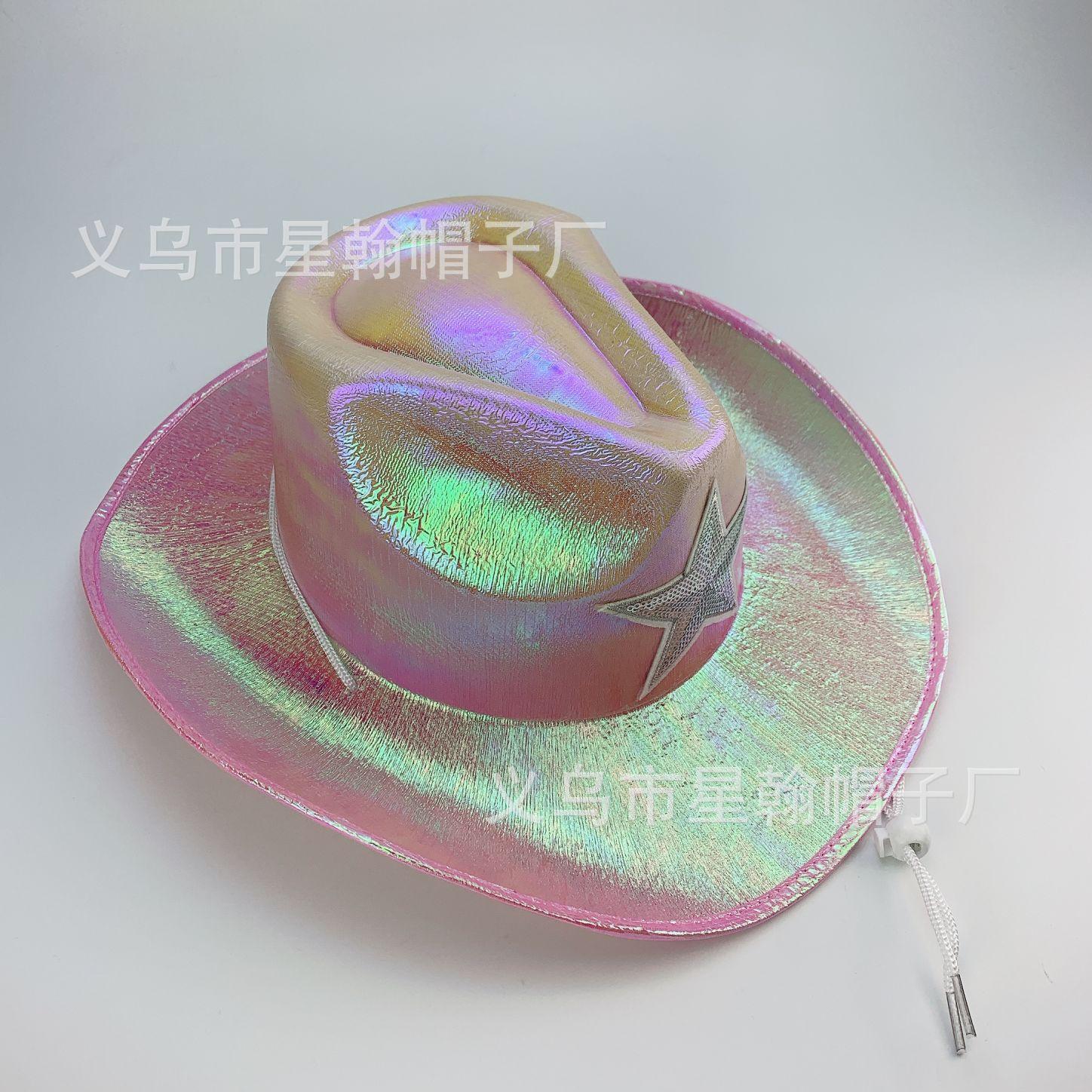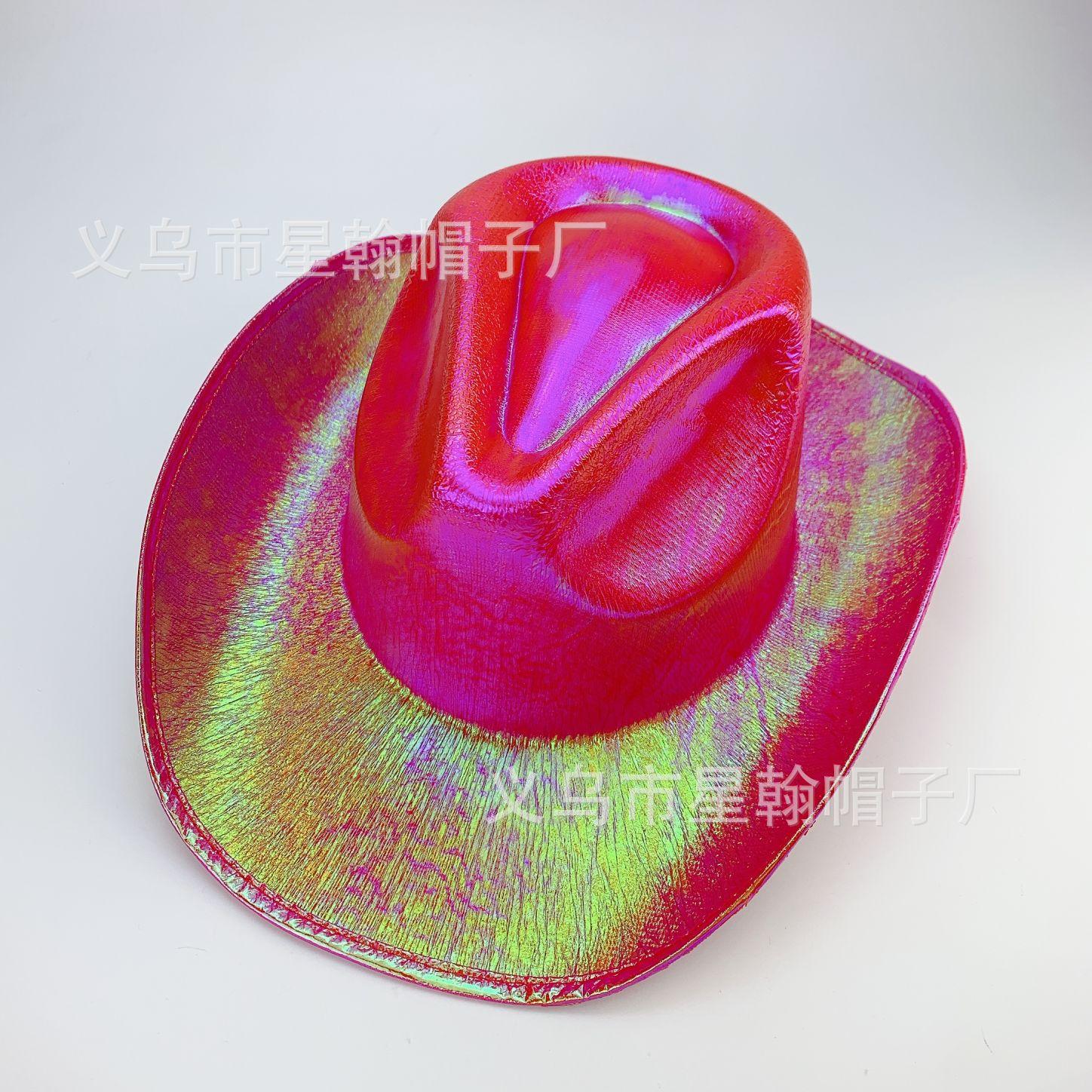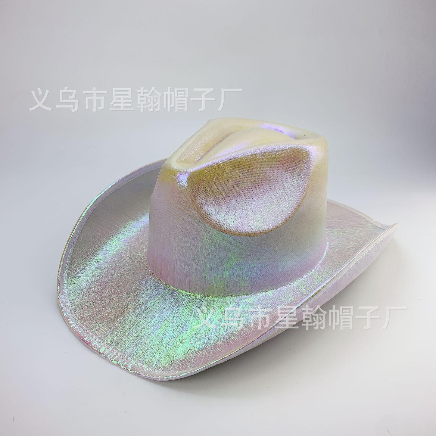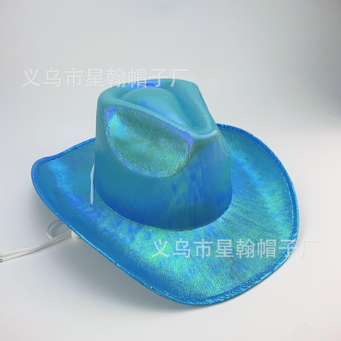 Sombrero de Vaquero Occidental Iridiscente Verde Compuesto EVA Halloween Carnaval Fiesta Perlescente Deslumbrante Sombrero Fabricante Venta al por Mayor