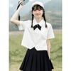 Short-sleeved milky white + goldfish skirt + bow tie