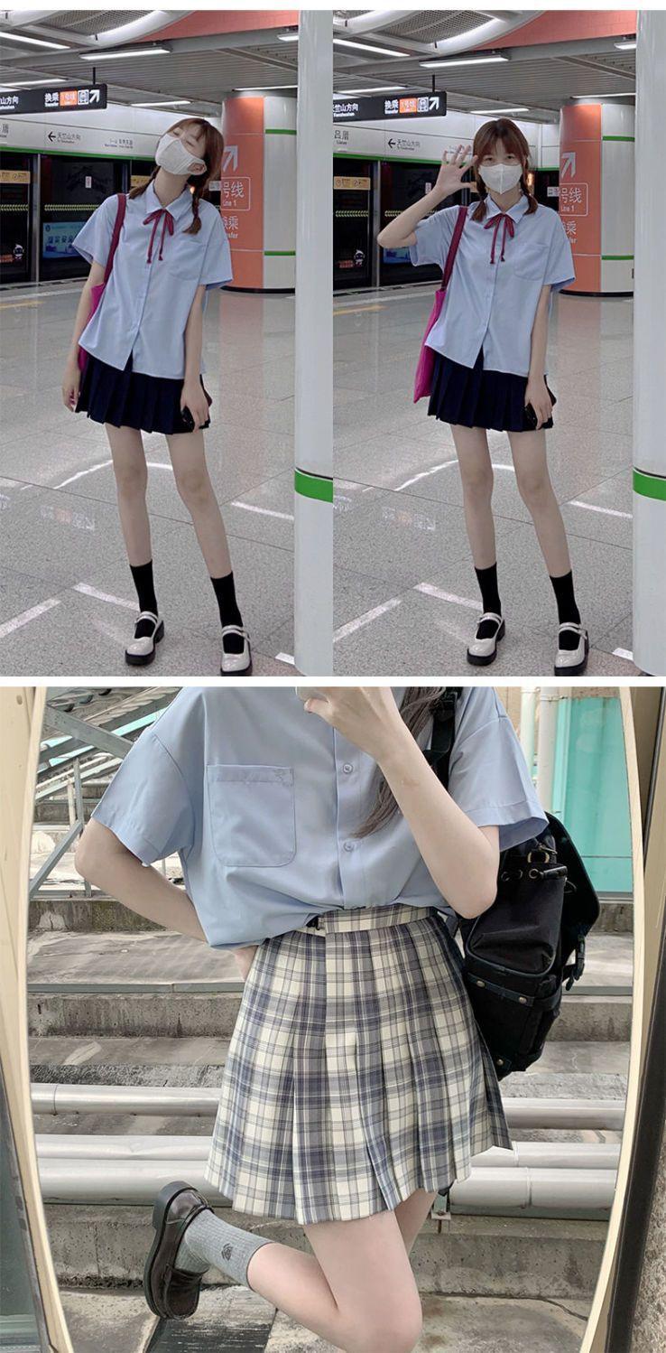 Short sleeve cream white, Blue short sleeves, Short-sleeved milky white + bear skirt + bow tie, Short-sleeved ...