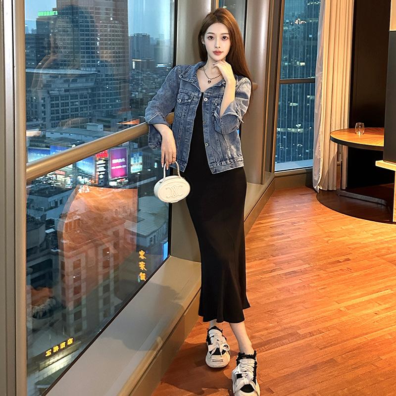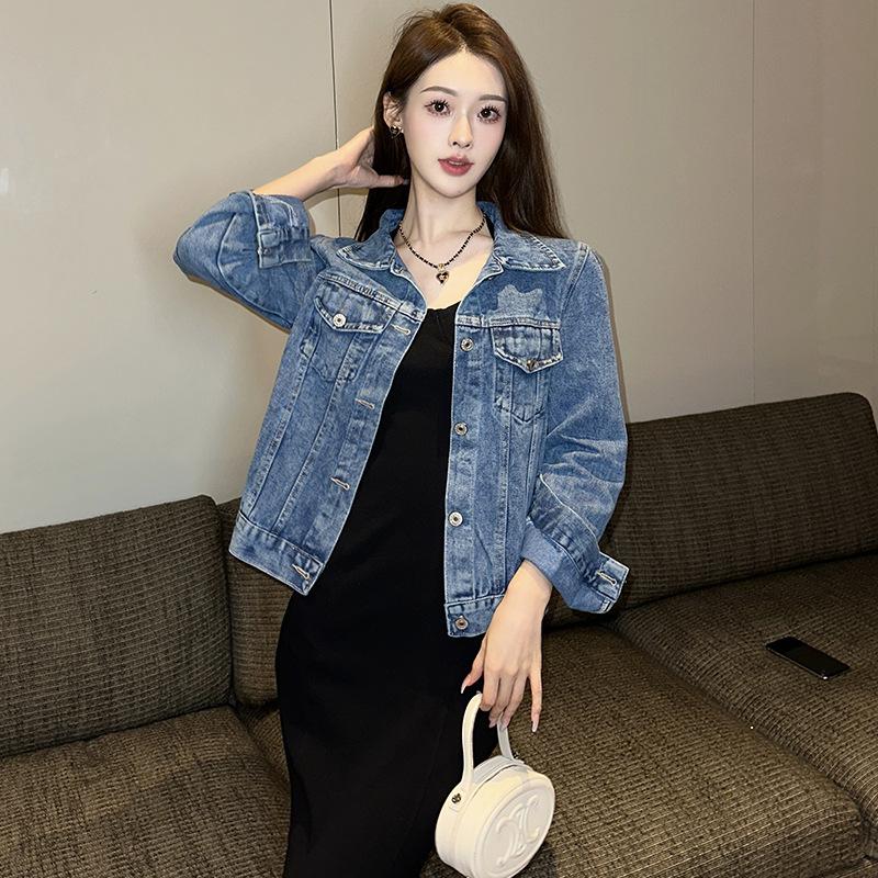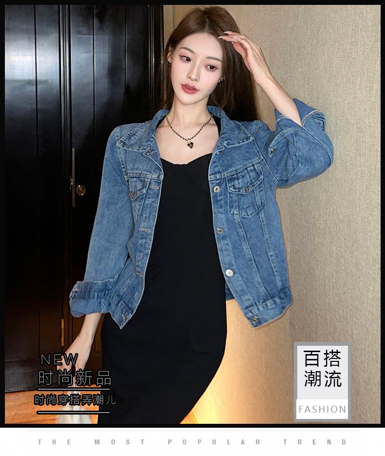 Chaqueta de mezclilla para mujer estilo coreano manga larga abotonadura sencilla primavera y otoño