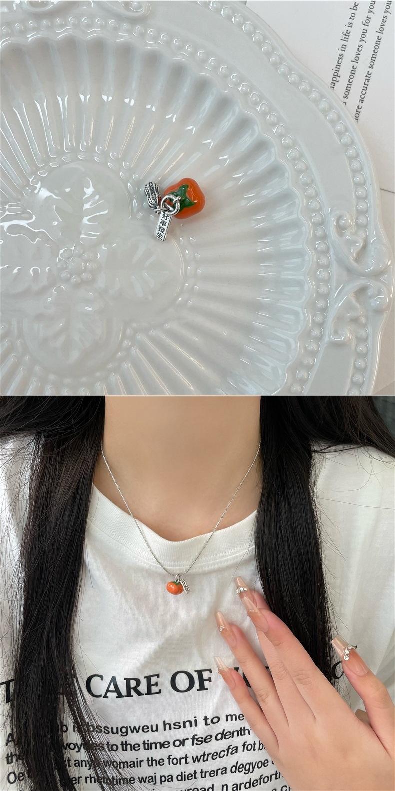Caqui Caqui Colgante Ruyi Collar Mujer Nuevo Estilo Chino Cosas Buenas Suceden Significado Cacahuete Cadena Clavícula Chapada en Plata S925 Gargantilla Estilo Ins