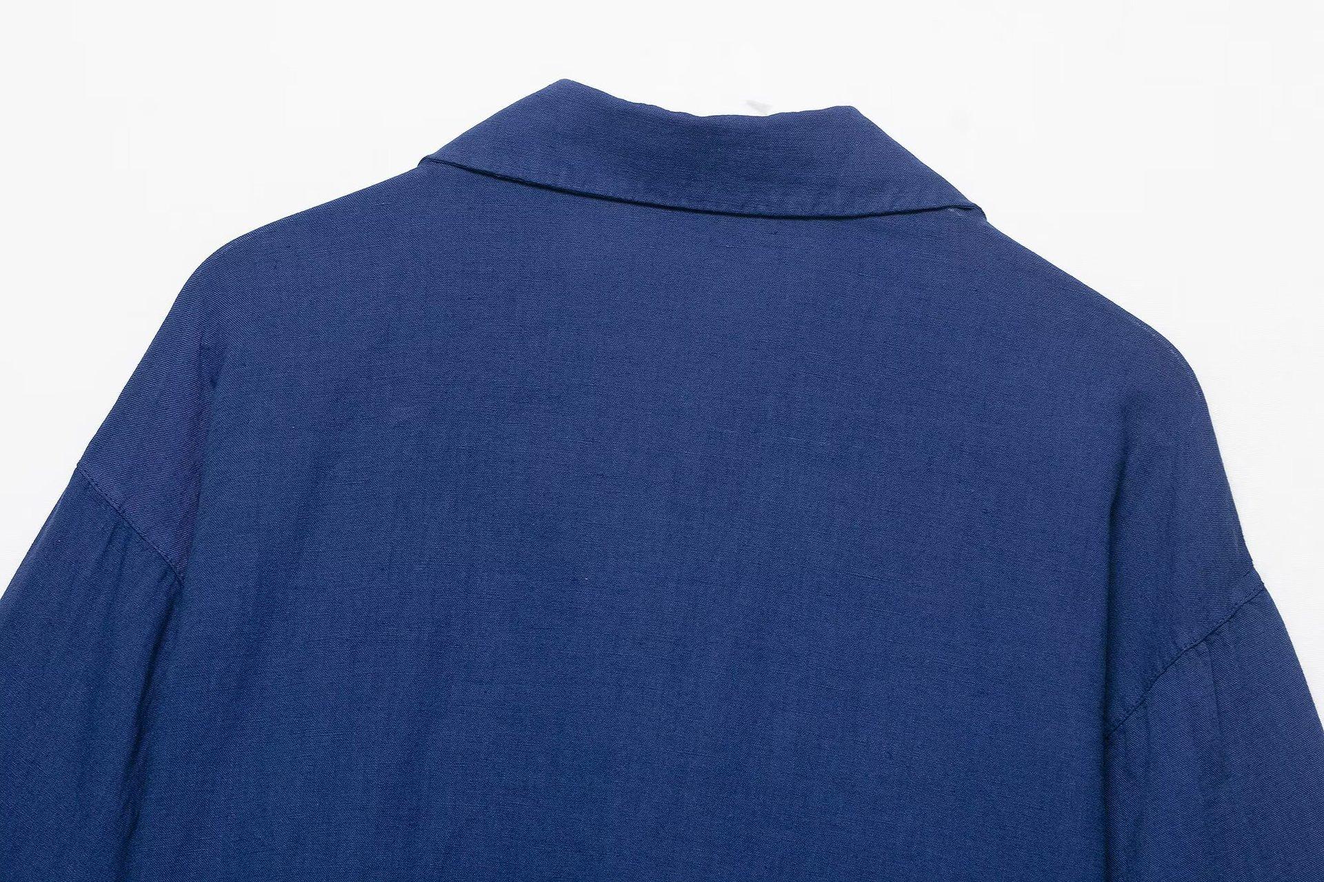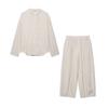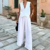 Conjunto de camisa + pantalón casual de lino mezclado para mujer, nuevo otoño 2025 europeo y americano transfronterizo w03 6644