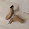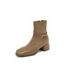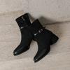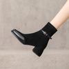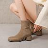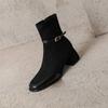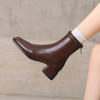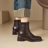 Botas Martin de Tacón Medio con Cremallera Lateral Estilo Coreano para Mujer Suela de Goma Punta Cuadrada Botas de Cuero Tacón Cuadrado Color Sólido Otoño/Invierno Talla Grande Botas de Media Caña