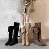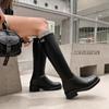 Otoño e invierno tacón medio talla grande botas de caballero mujer suela gruesa antideslizante botas de caña alta punta redonda tacón cuadrado nuevo cierre trasero botas de mujer