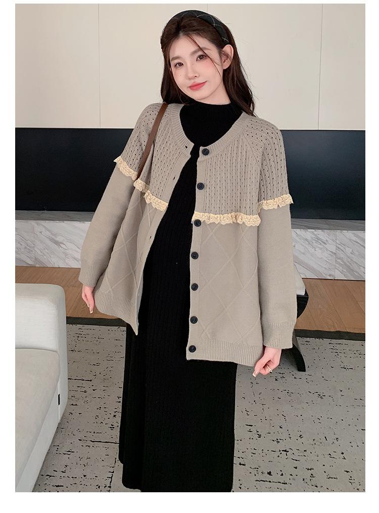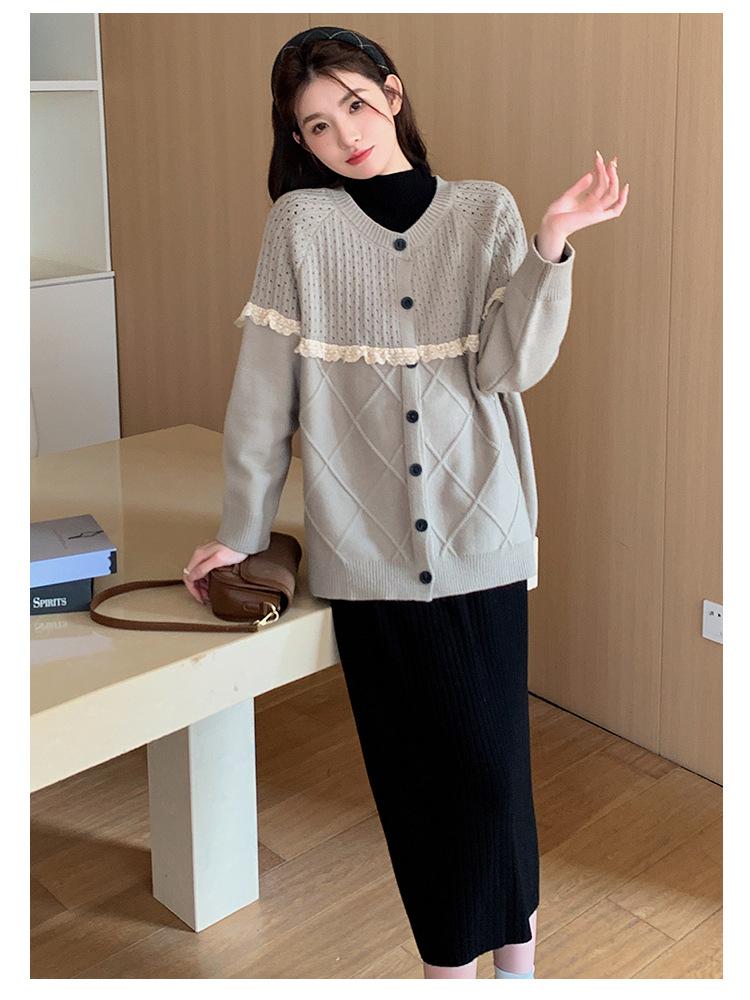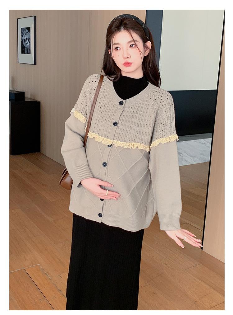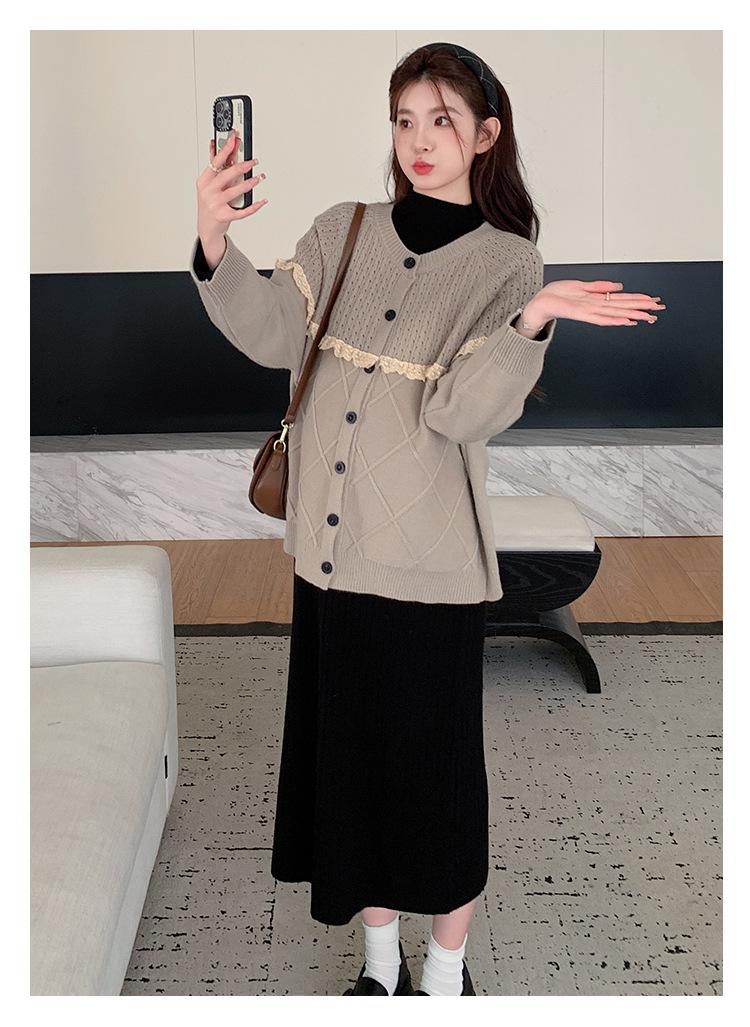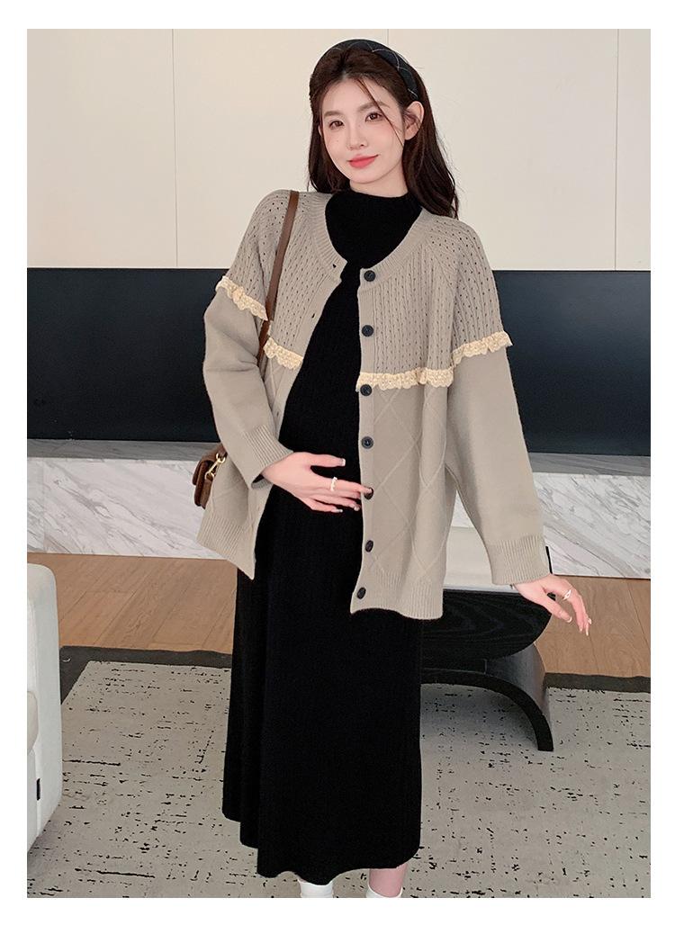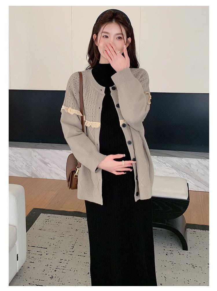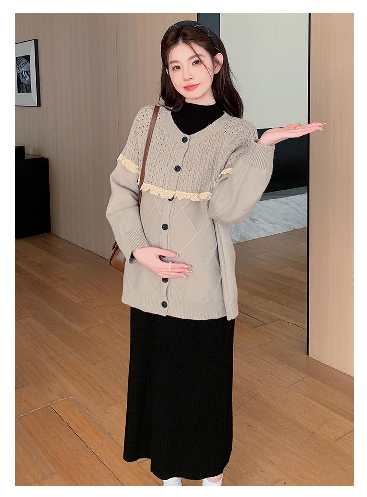 Ropa de Maternidad Otoño e Invierno 2024 Nuevo Estilo Coreano Suelto Cárdigan Grande Largo Versátil Suéter Falda de Maternidad