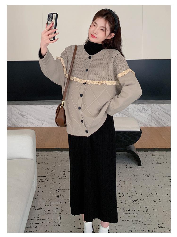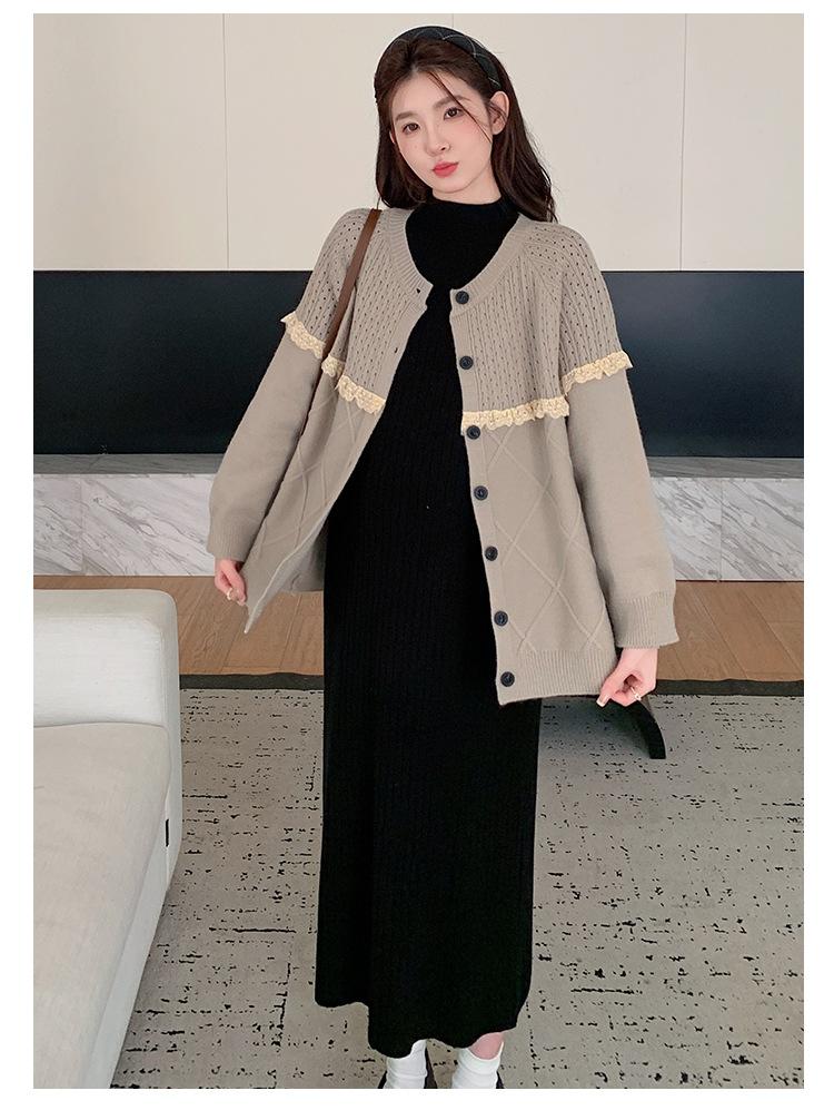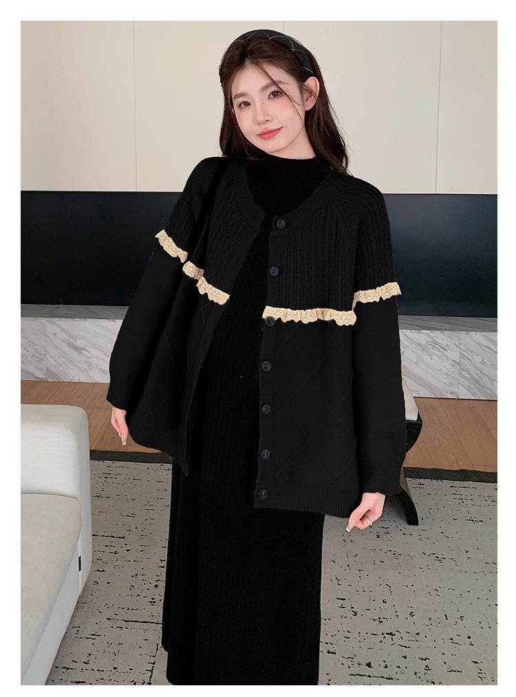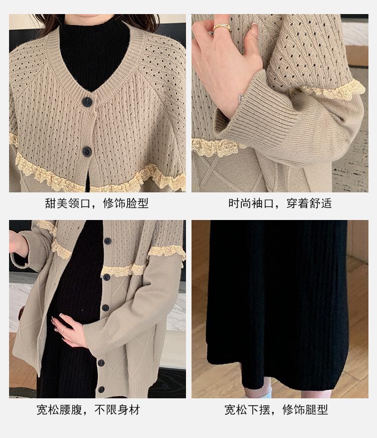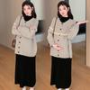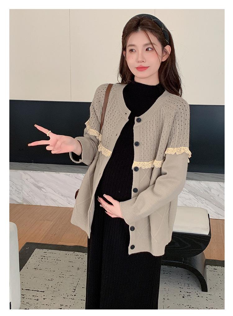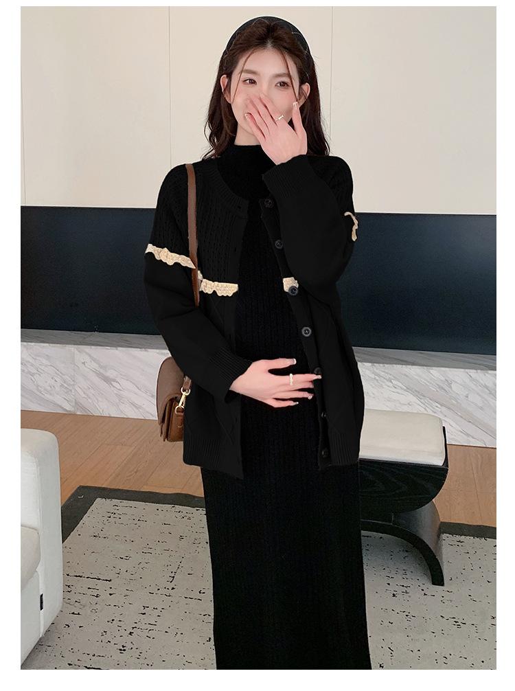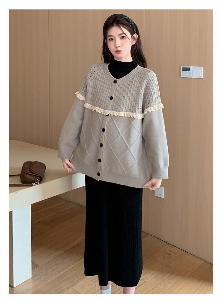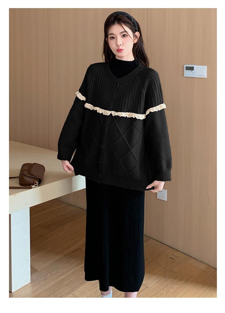 Ropa de Maternidad Otoño e Invierno 2024 Nuevo Estilo Coreano Suelto Cárdigan Grande Largo Versátil Suéter Falda de Maternidad