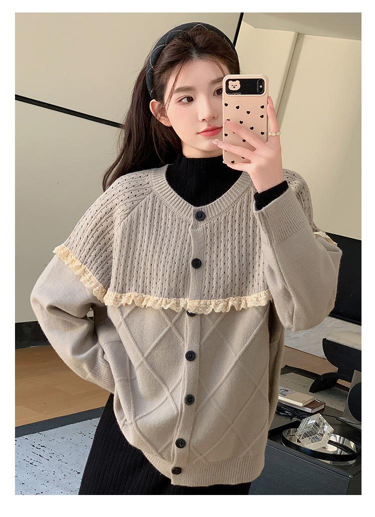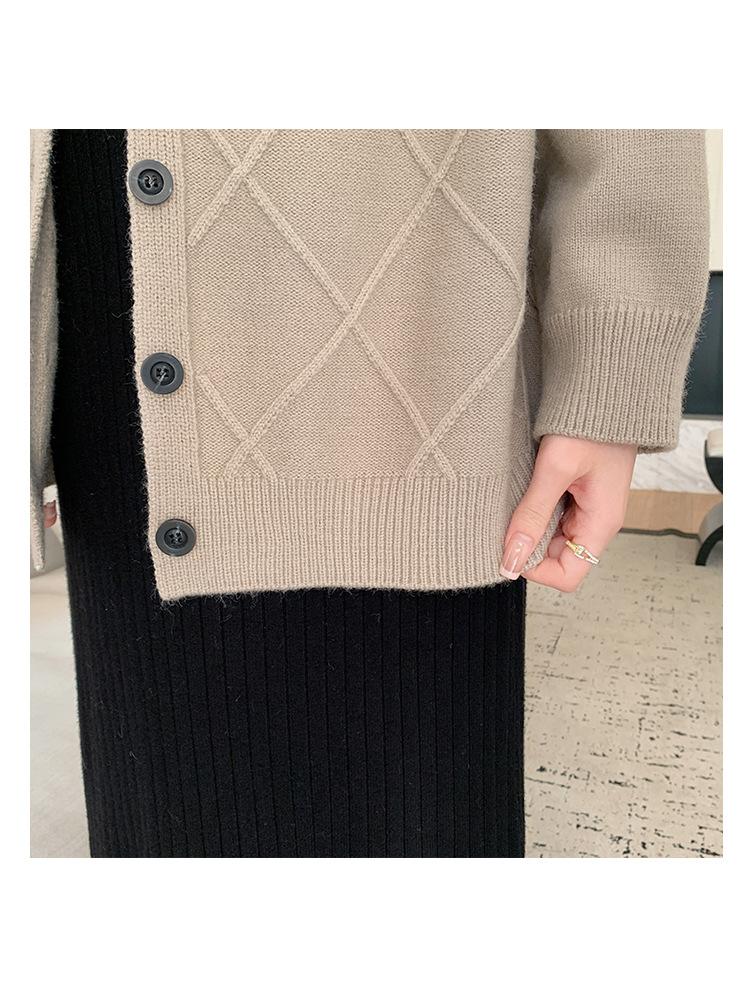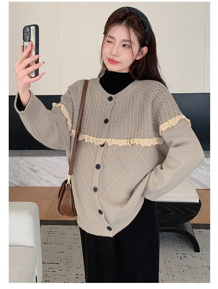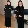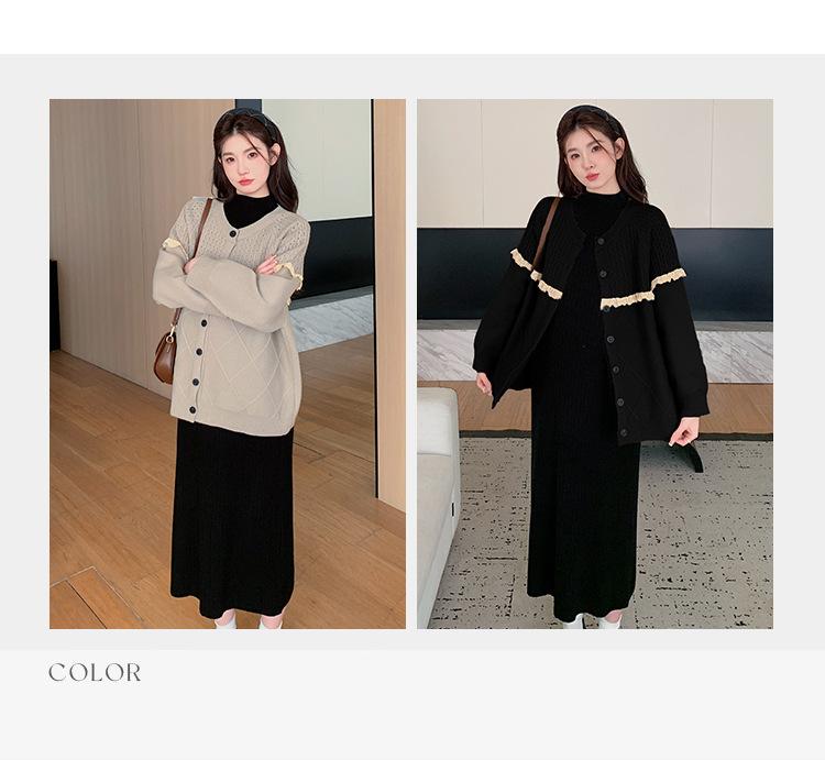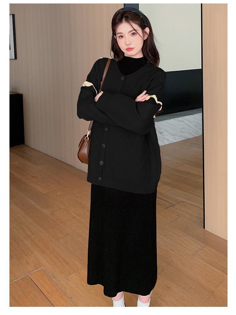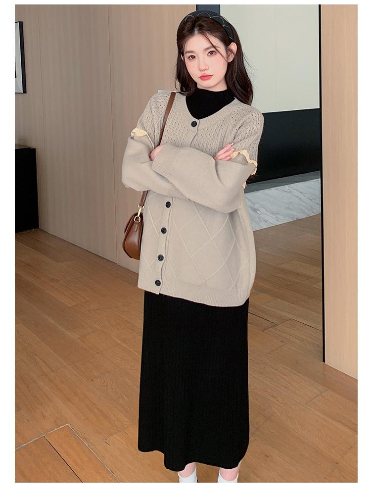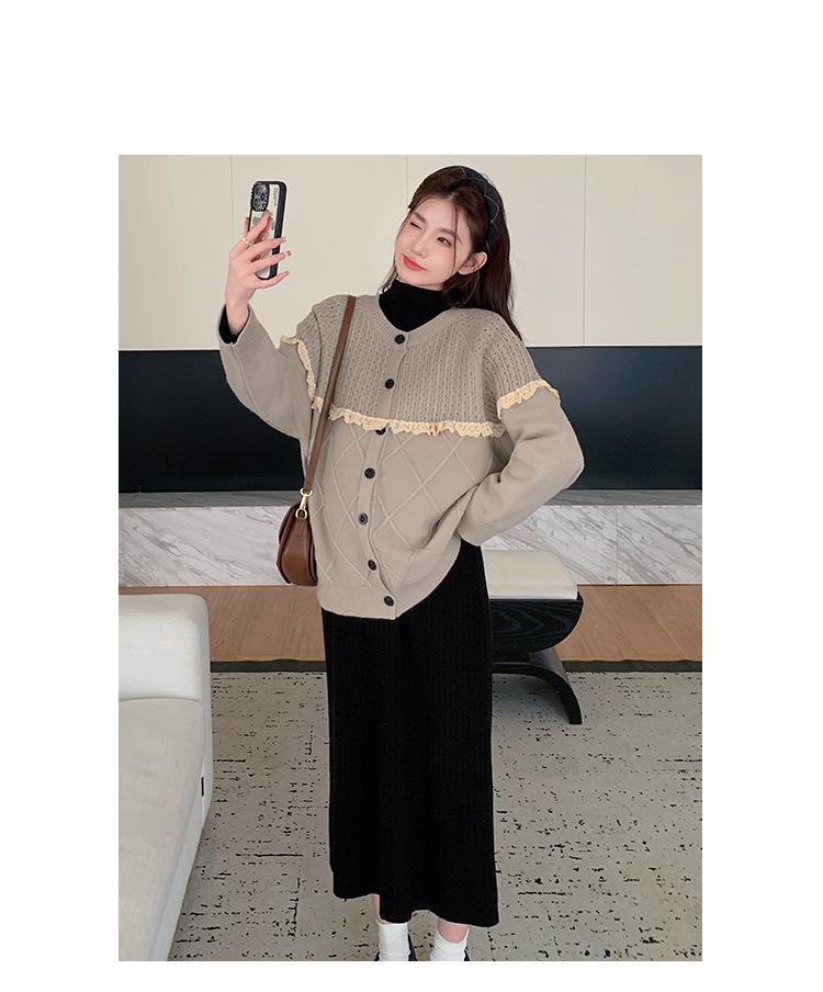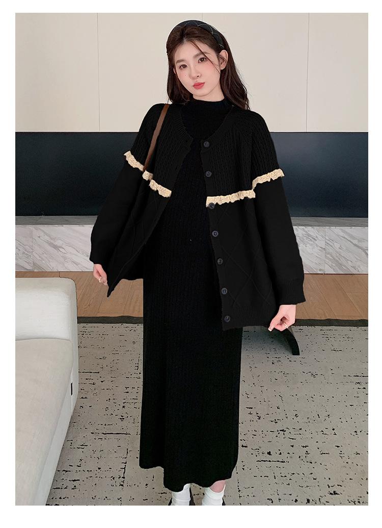Ropa de Maternidad Otoño e Invierno 2024 Nuevo Estilo Coreano Suelto Cárdigan Grande Largo Versátil Suéter Falda de Maternidad