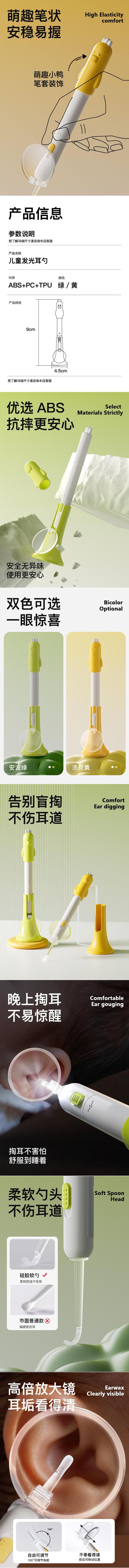 Little Duckling Luminous Ear Spoon (with Magnifying Glass Storage Base) 1 Set Boxed—White Green