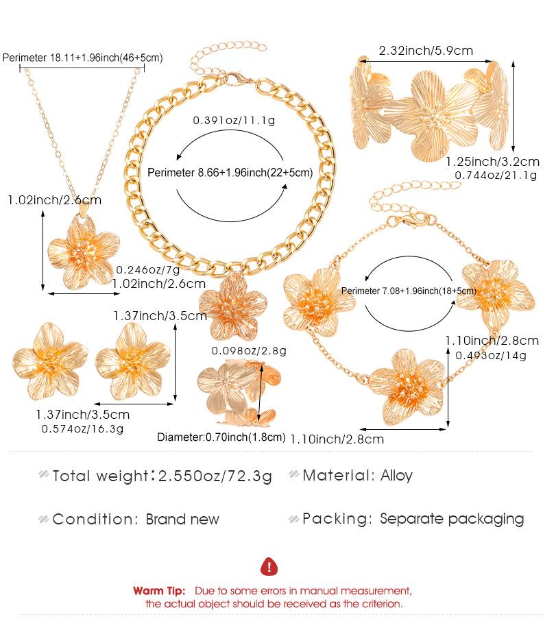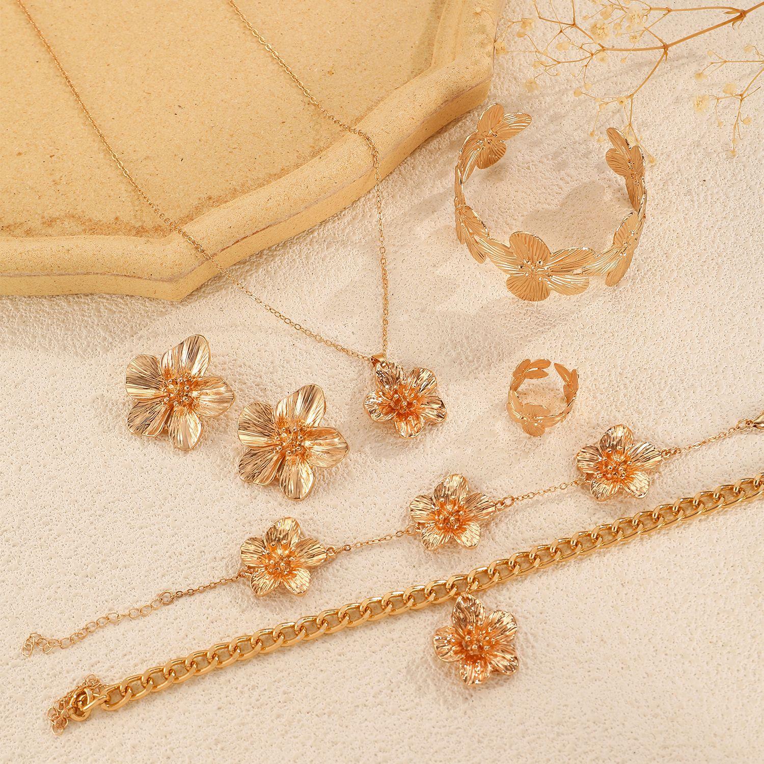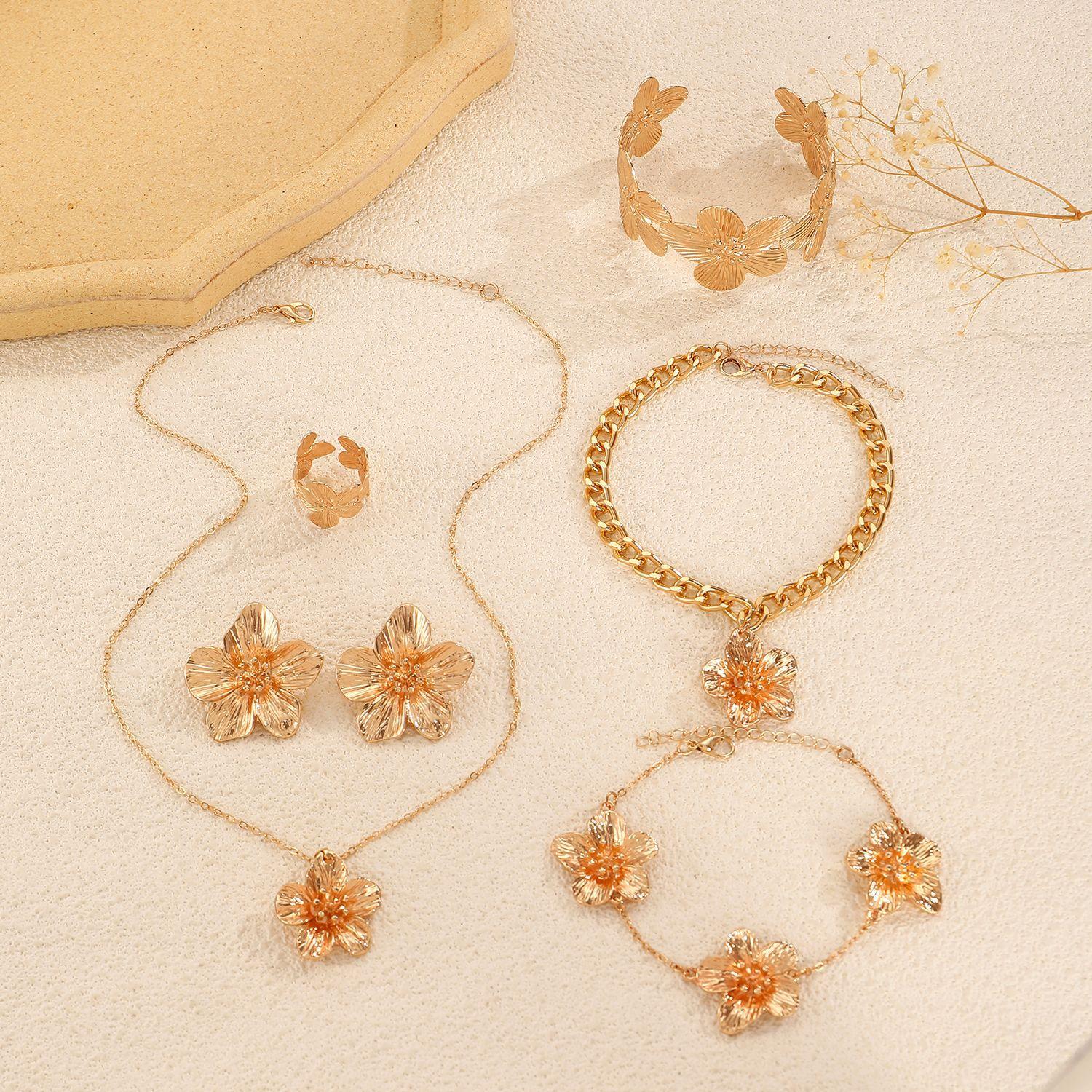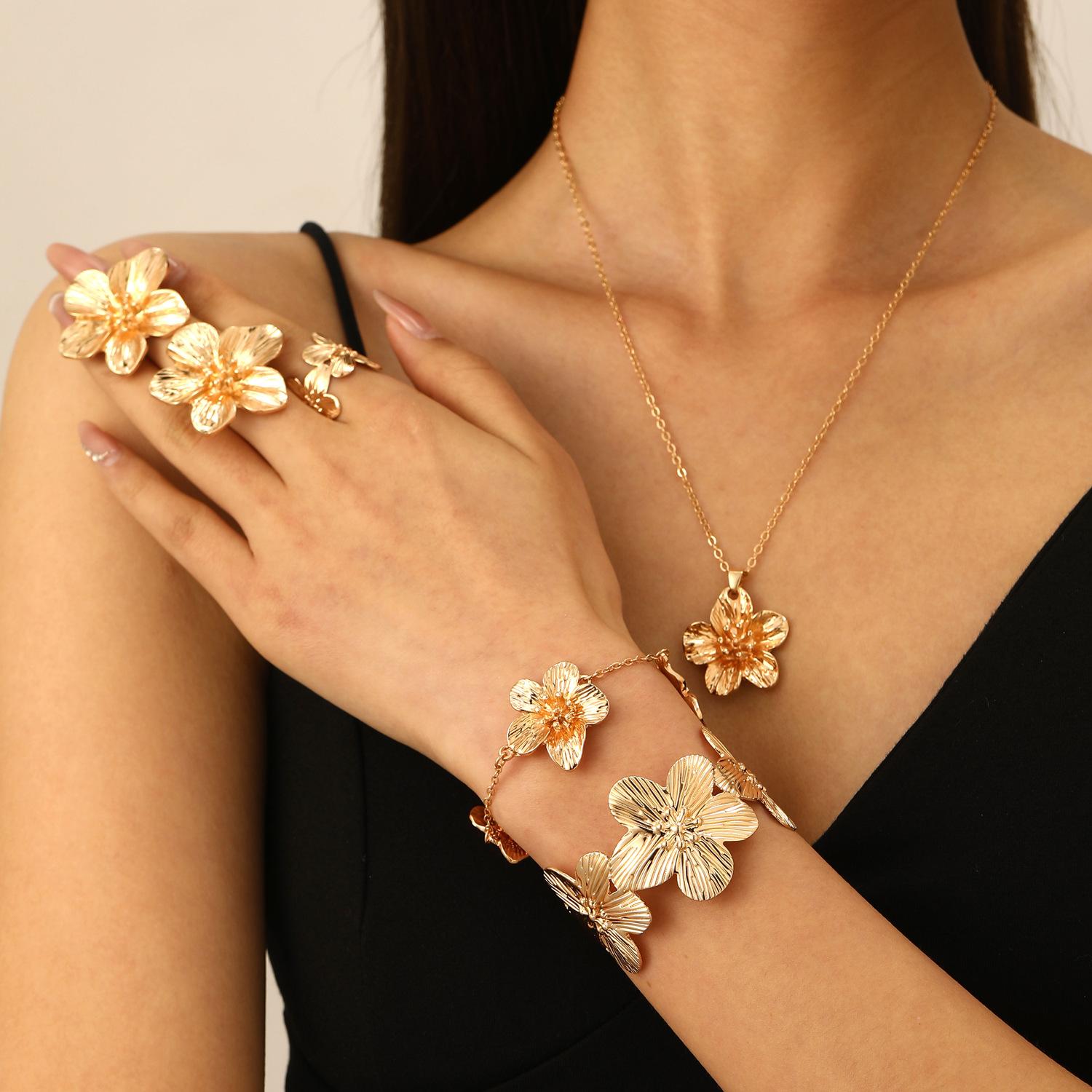 Joyería transfronteriza europea y americana diseño de textura plisada aretes de flor collar pulsera tobillera anillo traje de pulsera mujeres