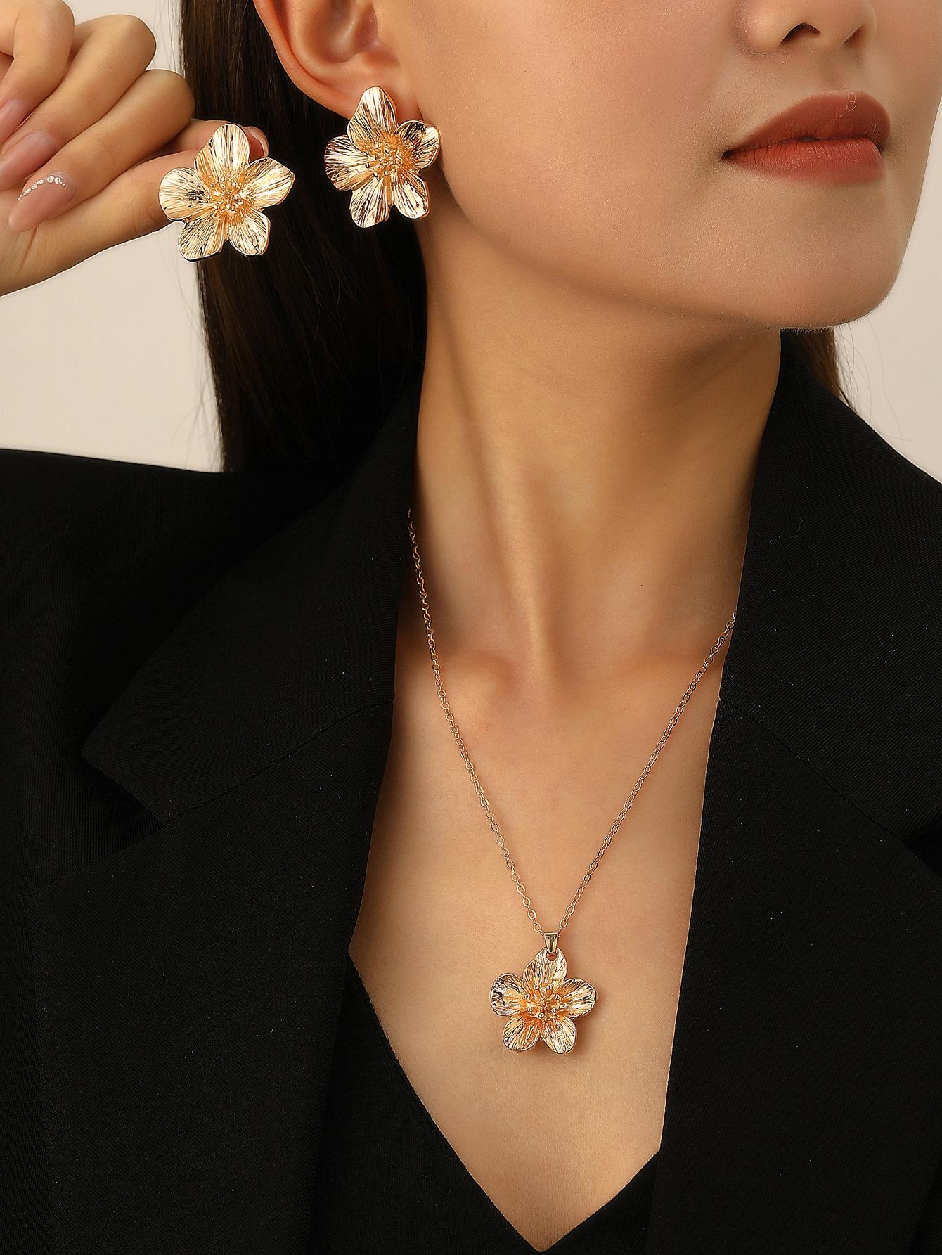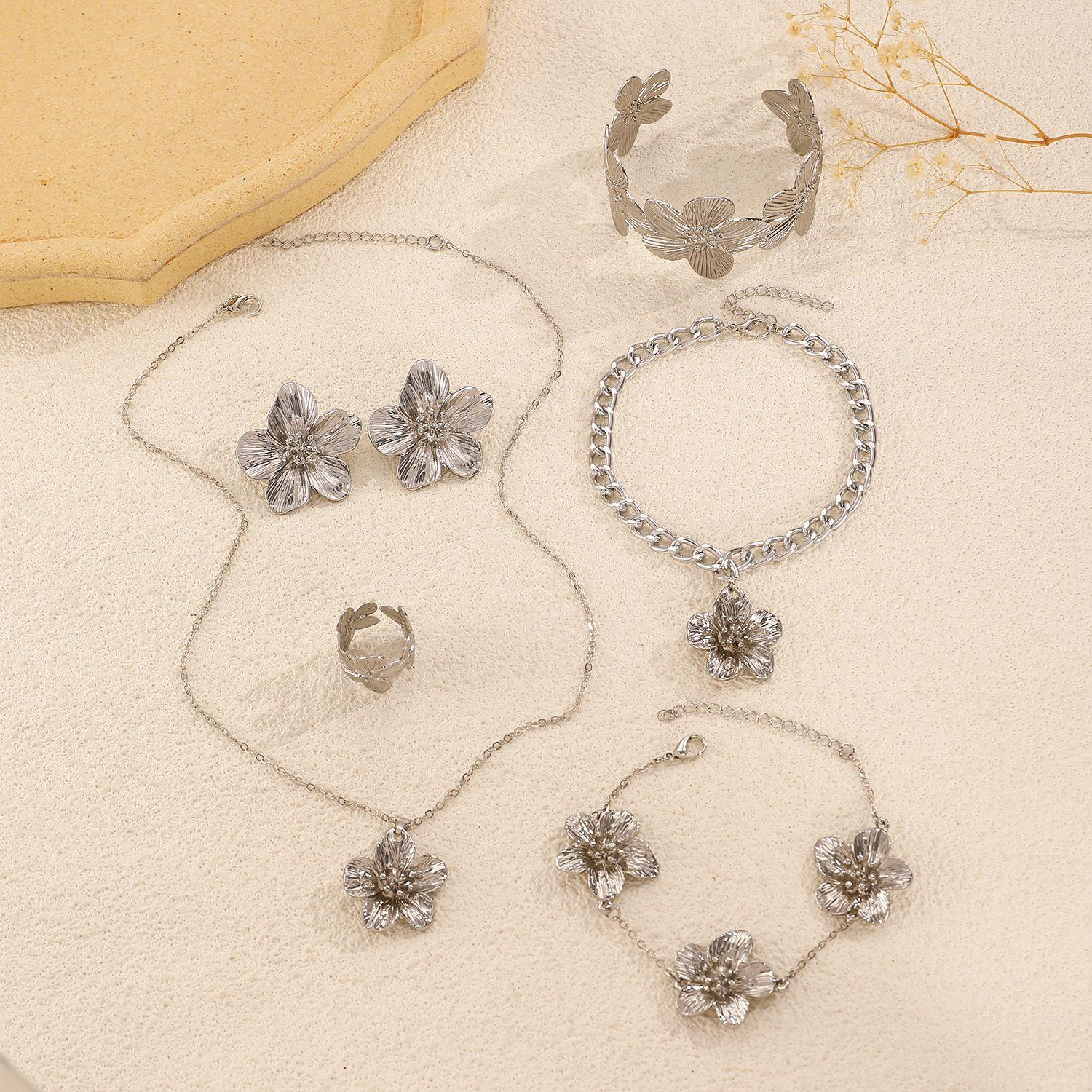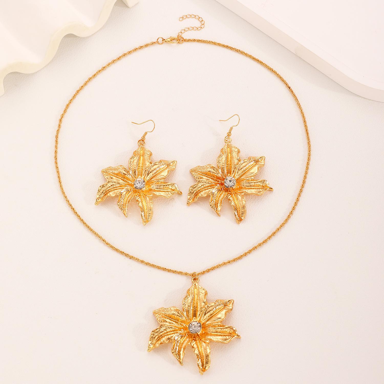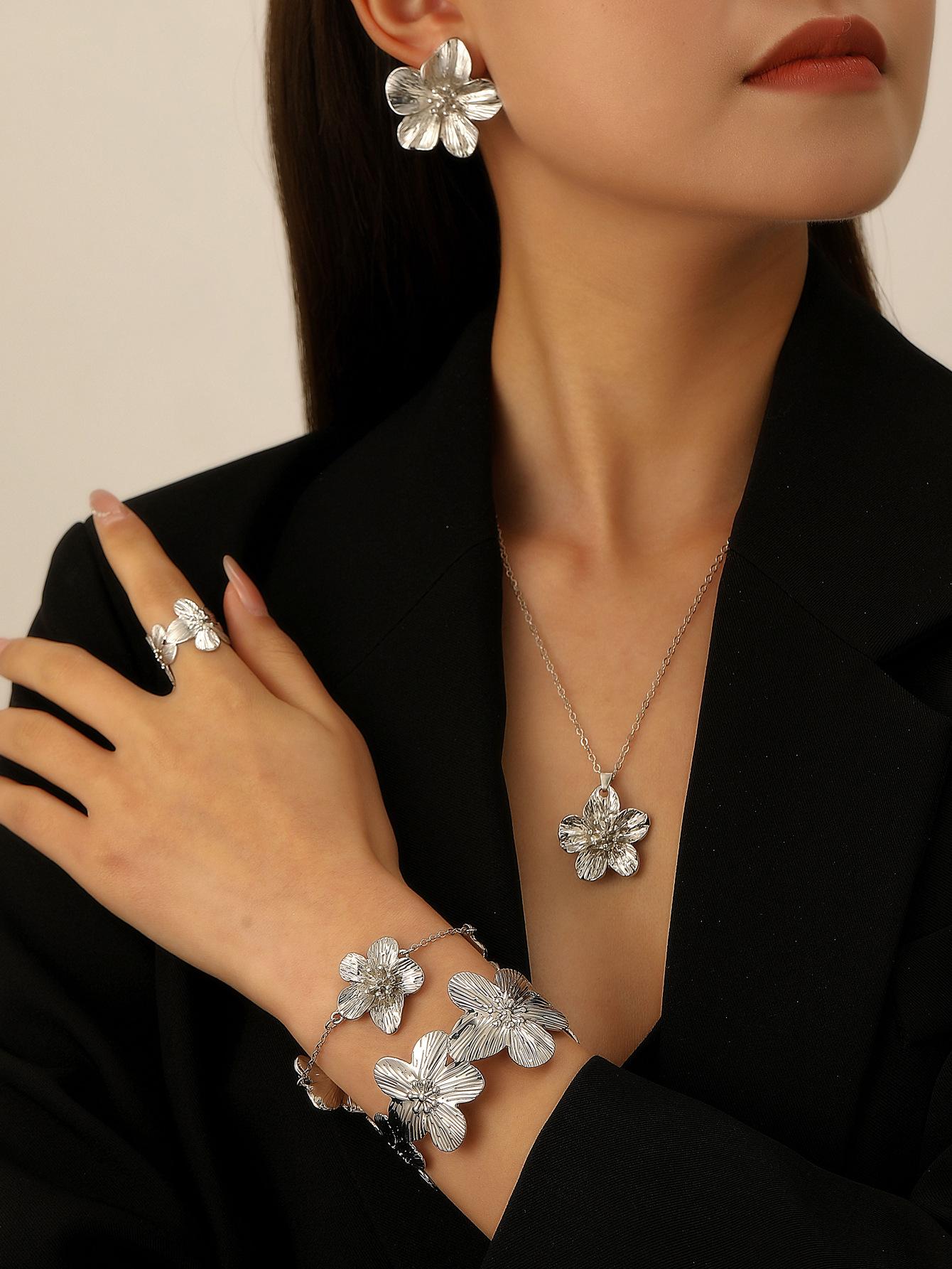 Joyería transfronteriza europea y americana diseño de textura plisada aretes de flor collar pulsera tobillera anillo traje de pulsera mujeres