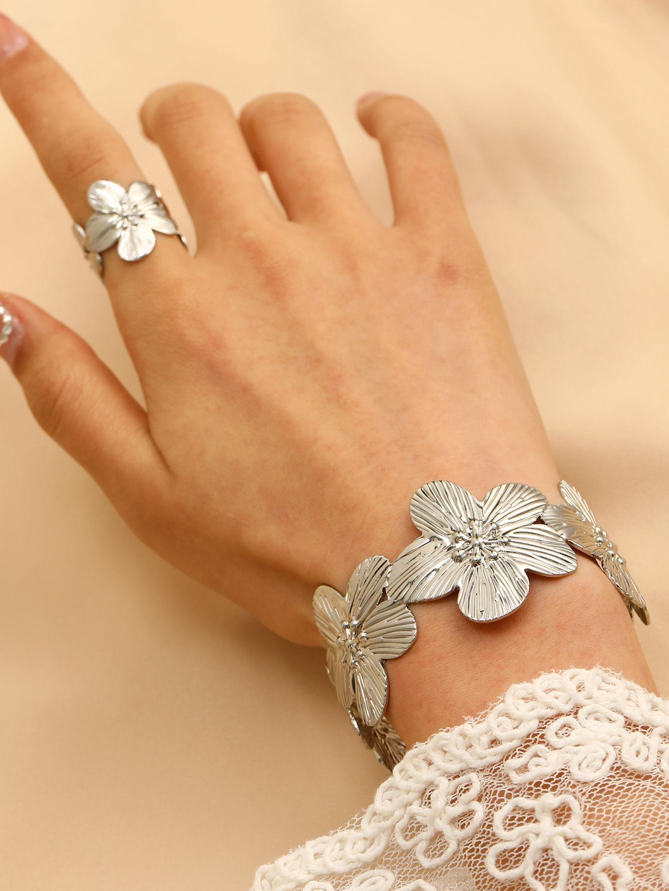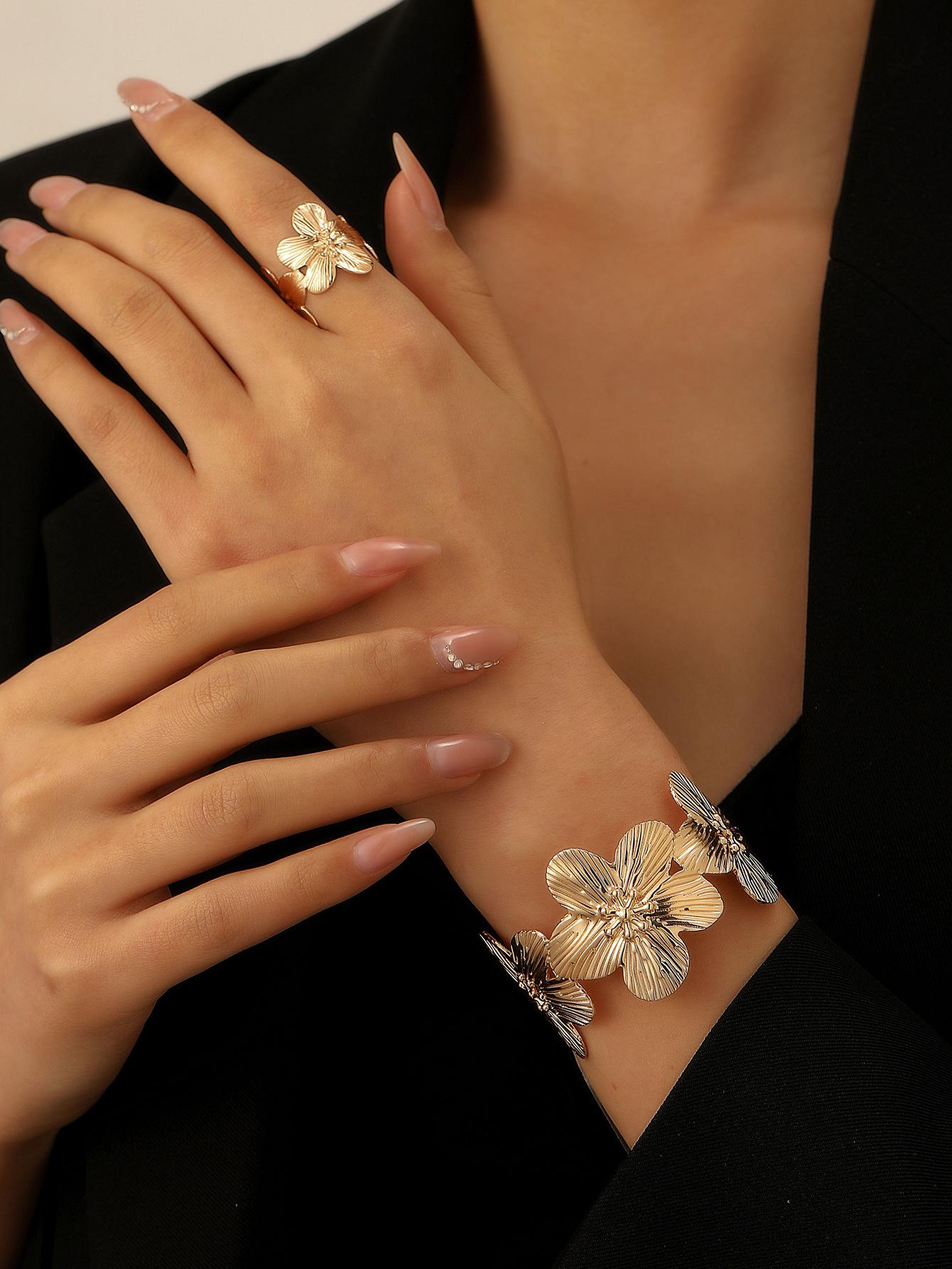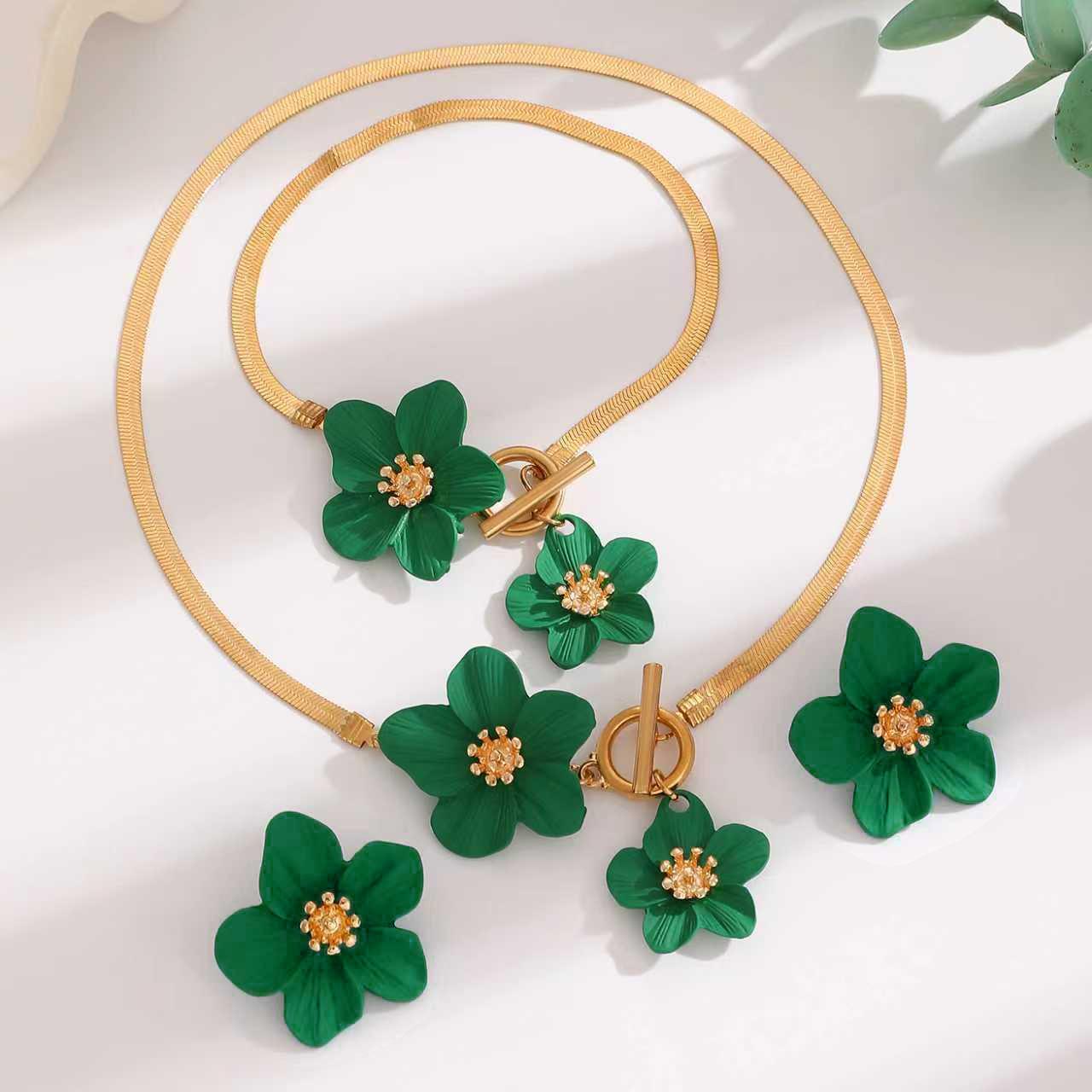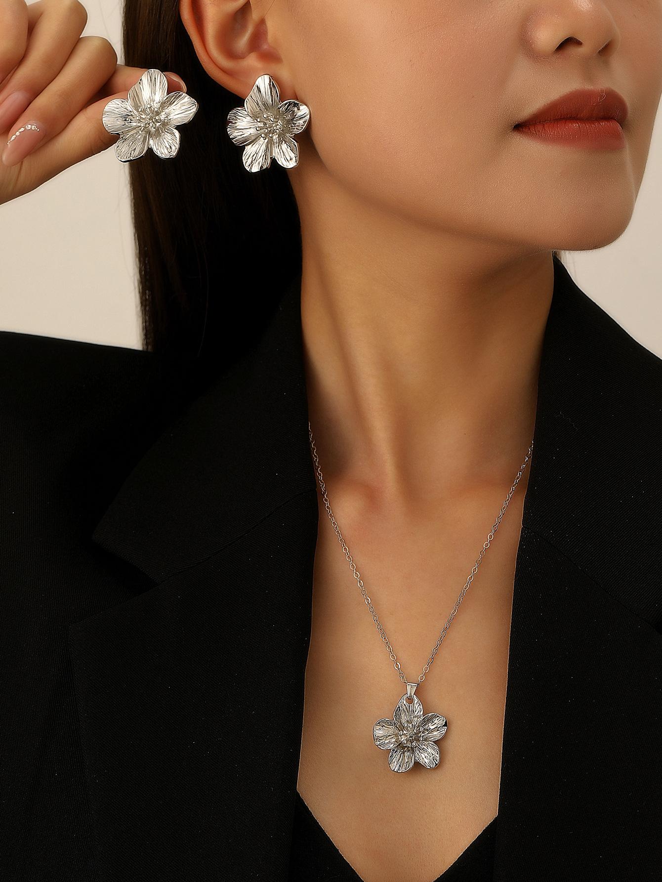 Joyería transfronteriza europea y americana diseño de textura plisada aretes de flor collar pulsera tobillera anillo traje de pulsera mujeres