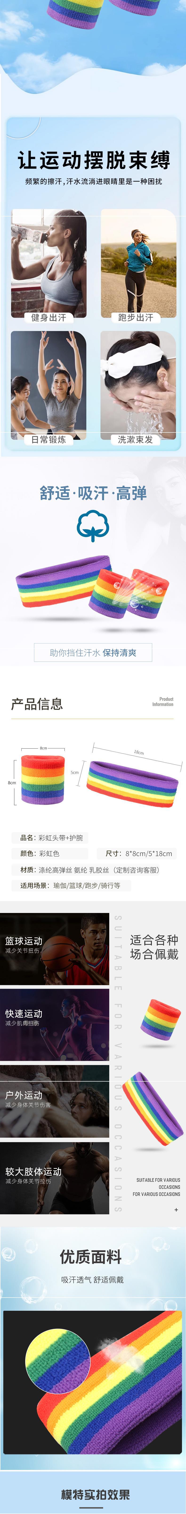 High Elastic Rainbow Wristband Headband Set, High Elastic Rainbow Wristband, High Elastic Rainbow Headband