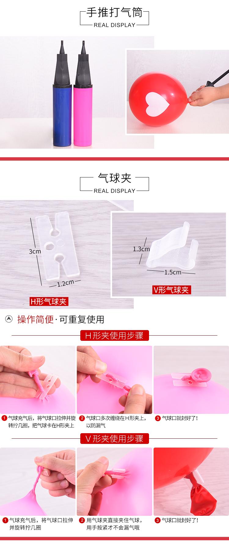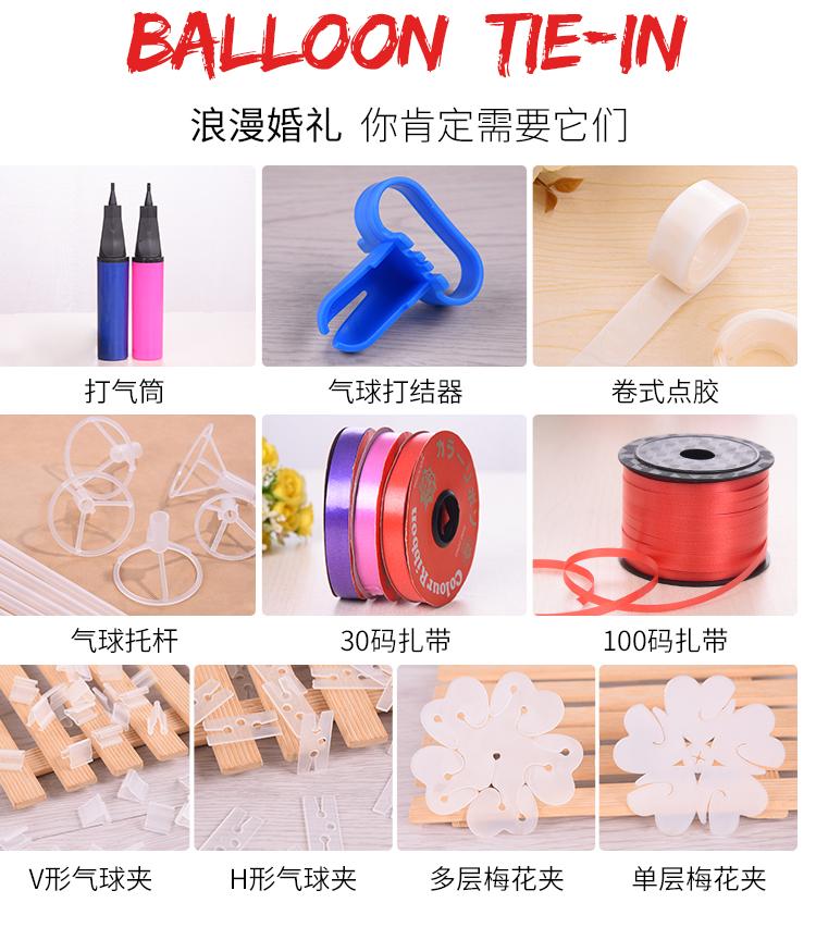 Hand pump (random color), Foot pump, V-shaped balloon clip (50), 25 m disc balloon tie (red), 25 m disc balloo...